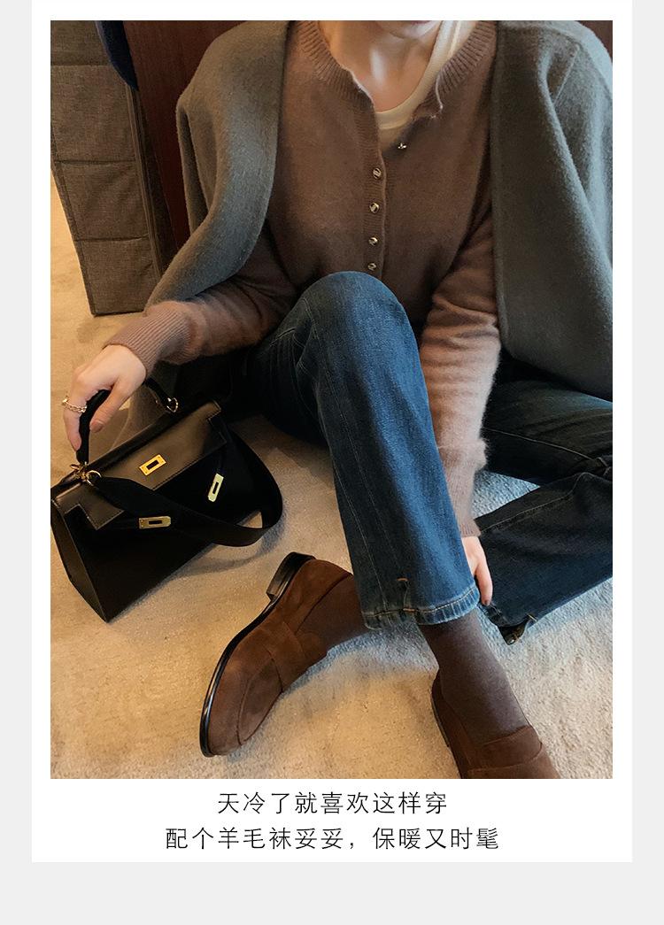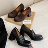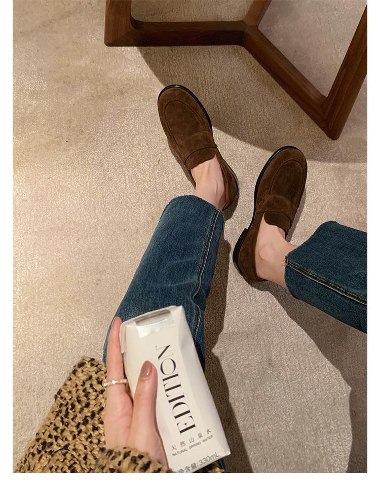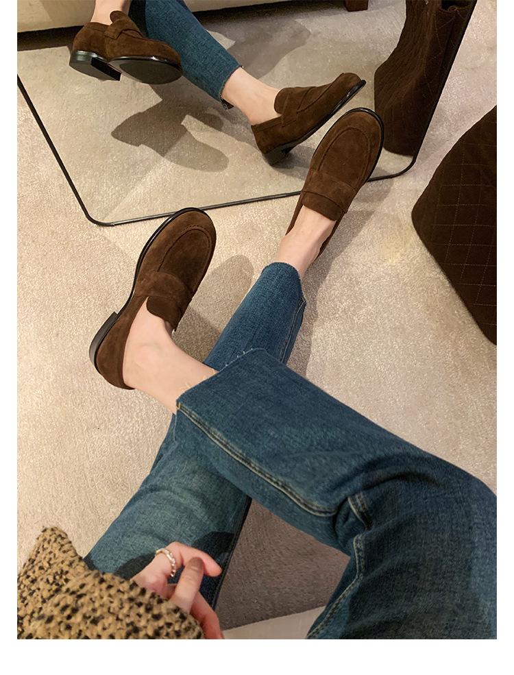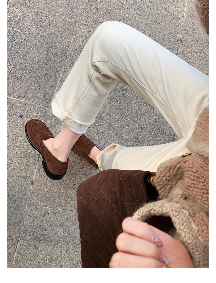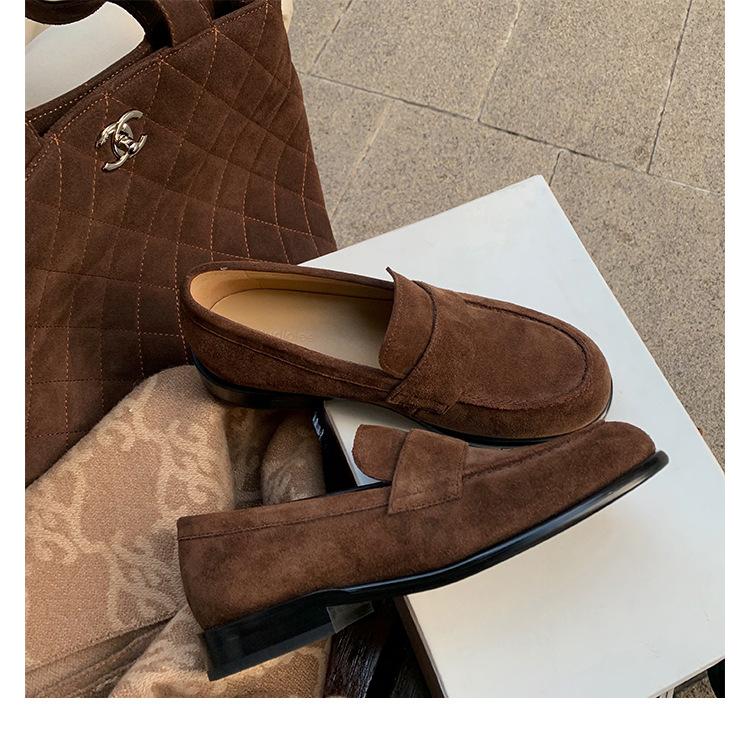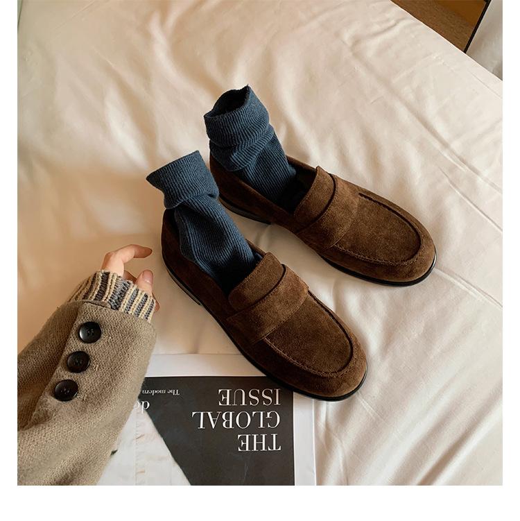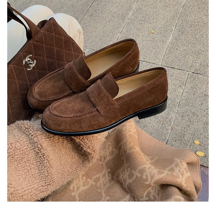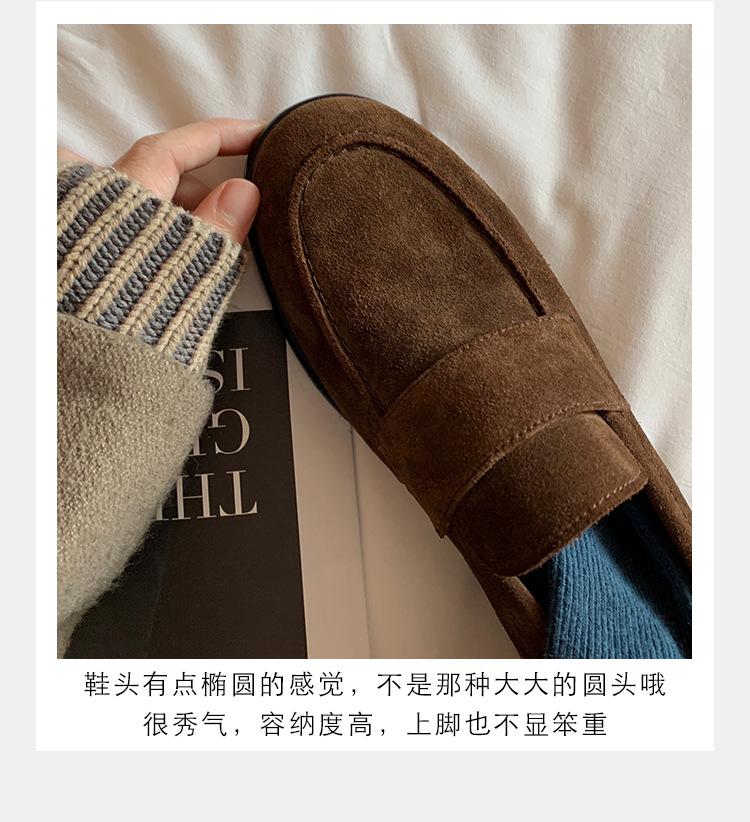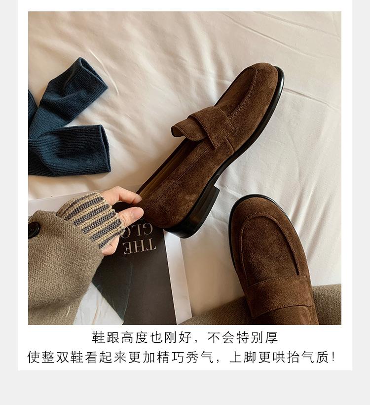 Piel de oveja Estilo Mamá Uva Vintage Estilo Británico Tacón Grueso Zapatos Pequeños de Cuero Mujer Slip-on Perezosos Cuero Genuino Suela Gruesa Mocasines