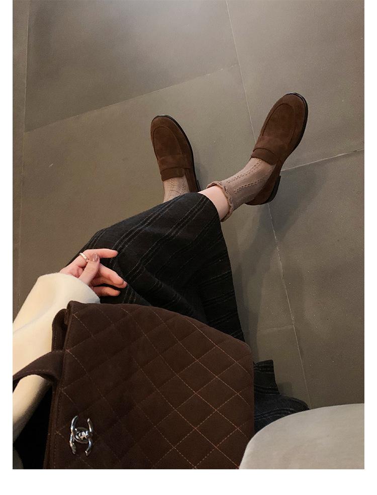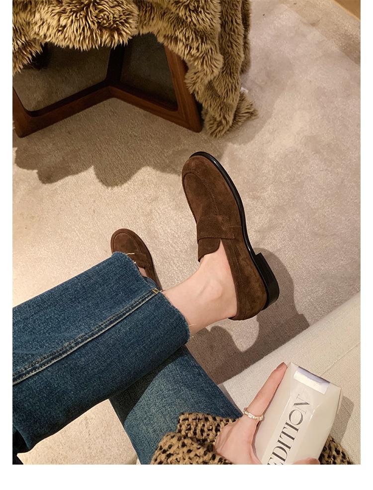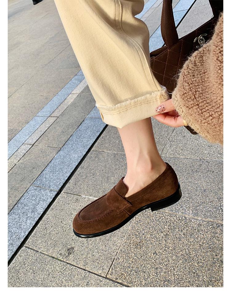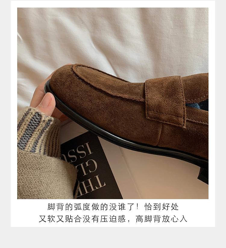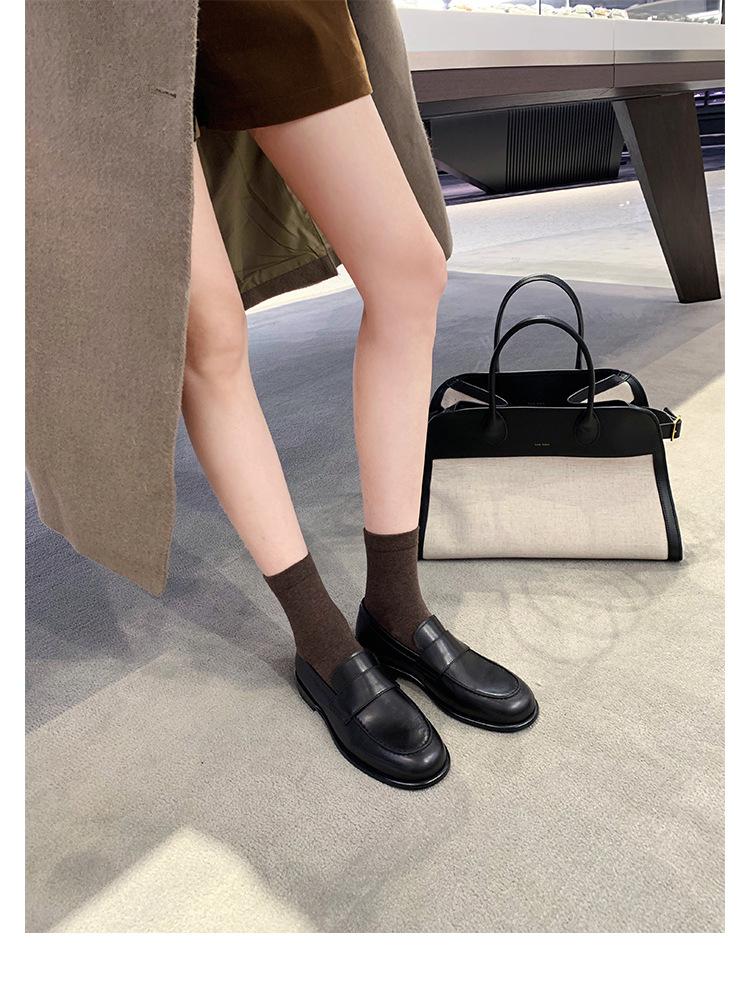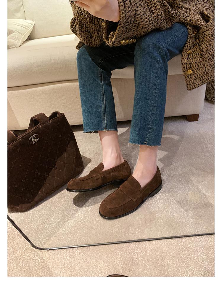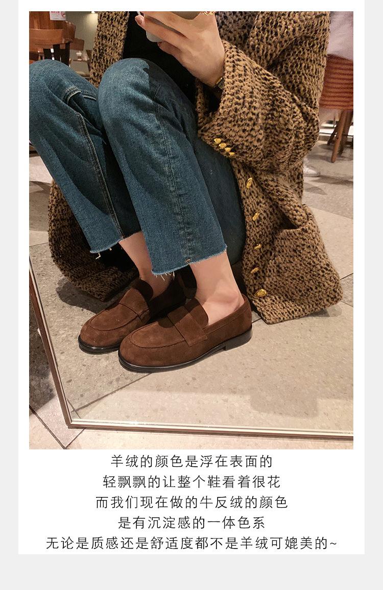 Piel de oveja Estilo Mamá Uva Vintage Estilo Británico Tacón Grueso Zapatos Pequeños de Cuero Mujer Slip-on Perezosos Cuero Genuino Suela Gruesa Mocasines