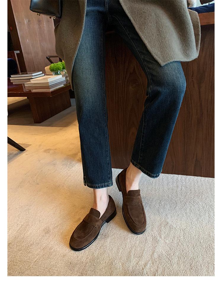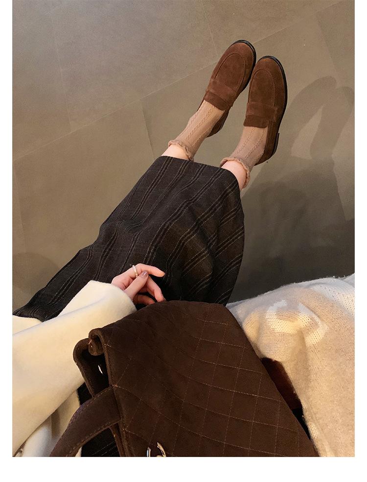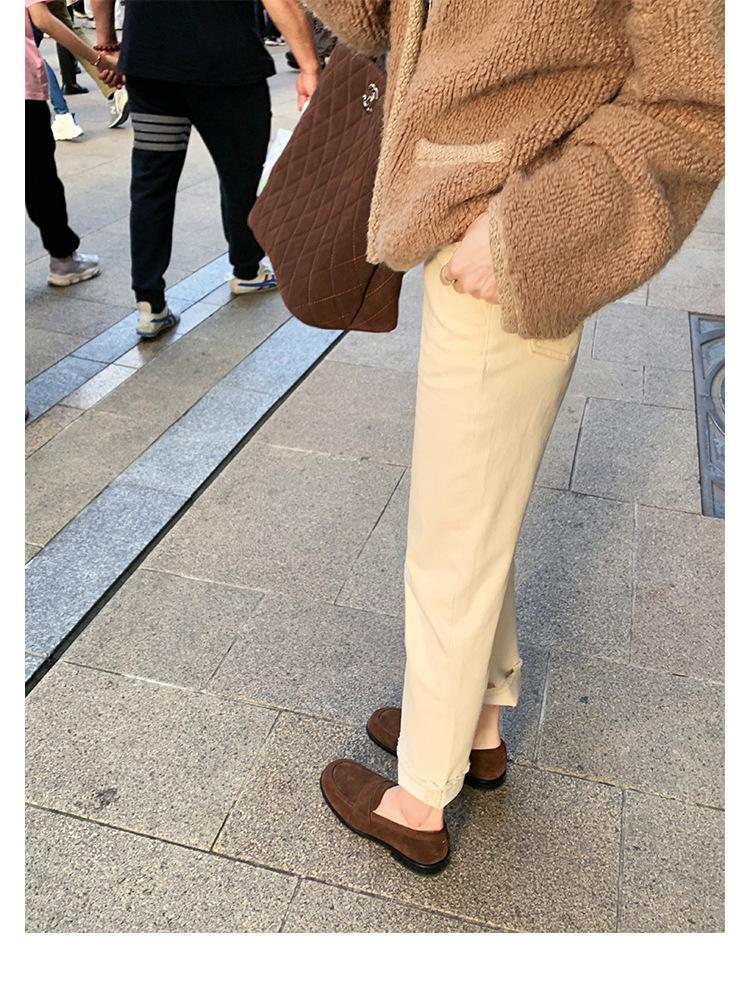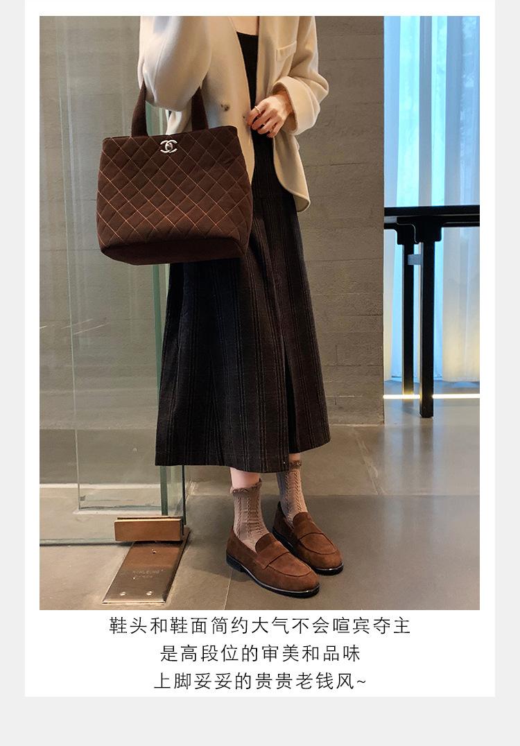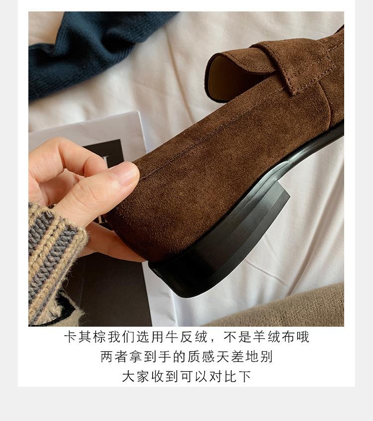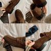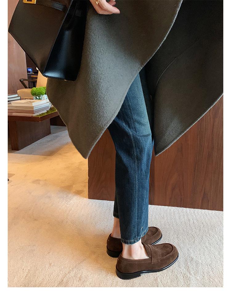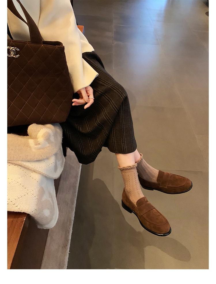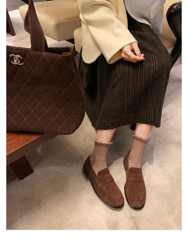 Piel de oveja Estilo Mamá Uva Vintage Estilo Británico Tacón Grueso Zapatos Pequeños de Cuero Mujer Slip-on Perezosos Cuero Genuino Suela Gruesa Mocasines