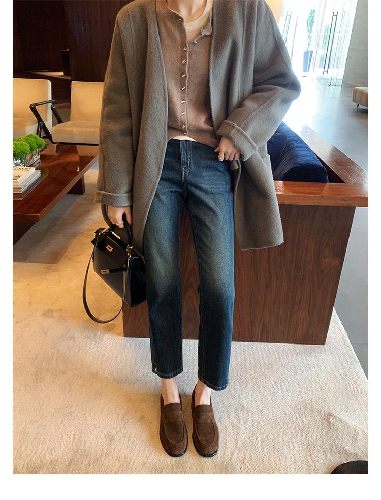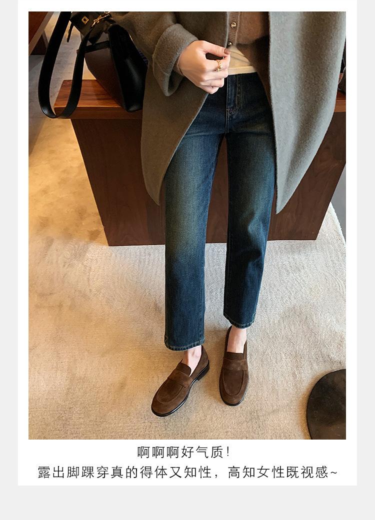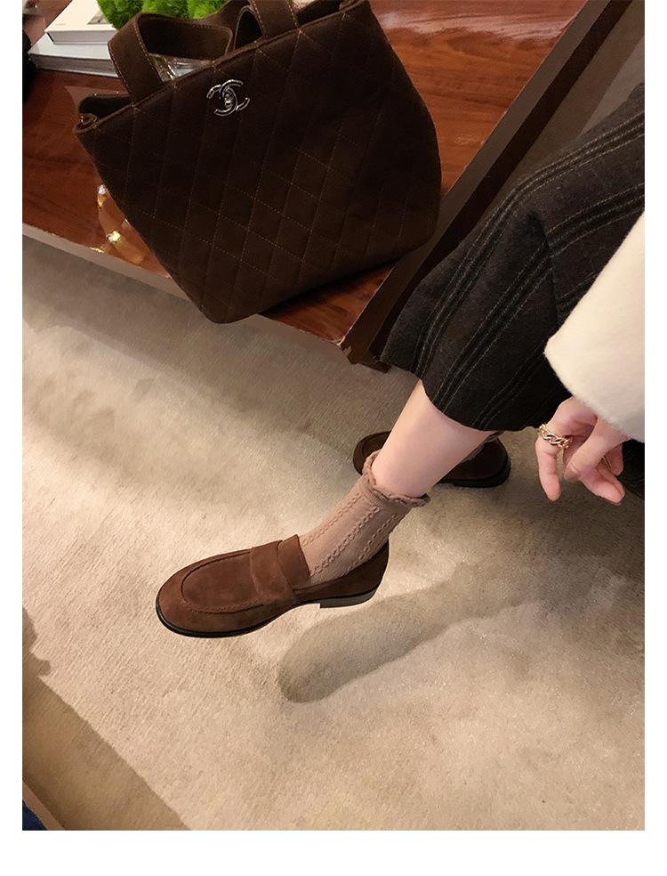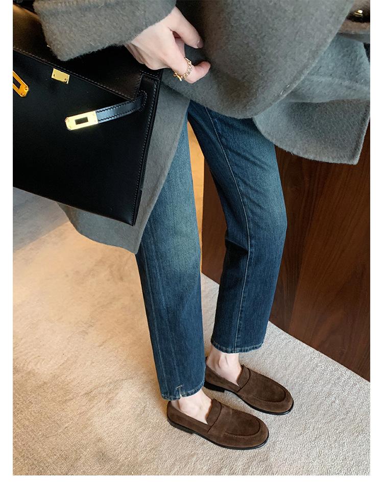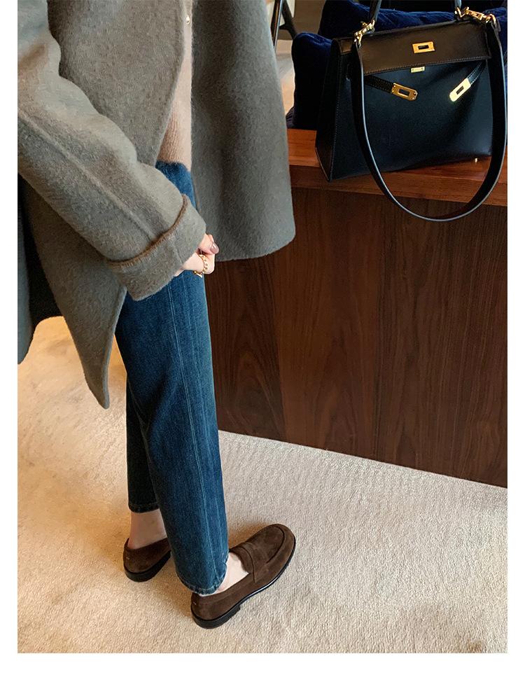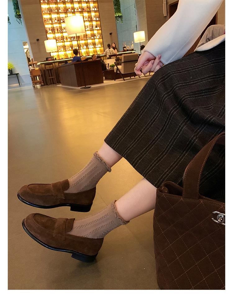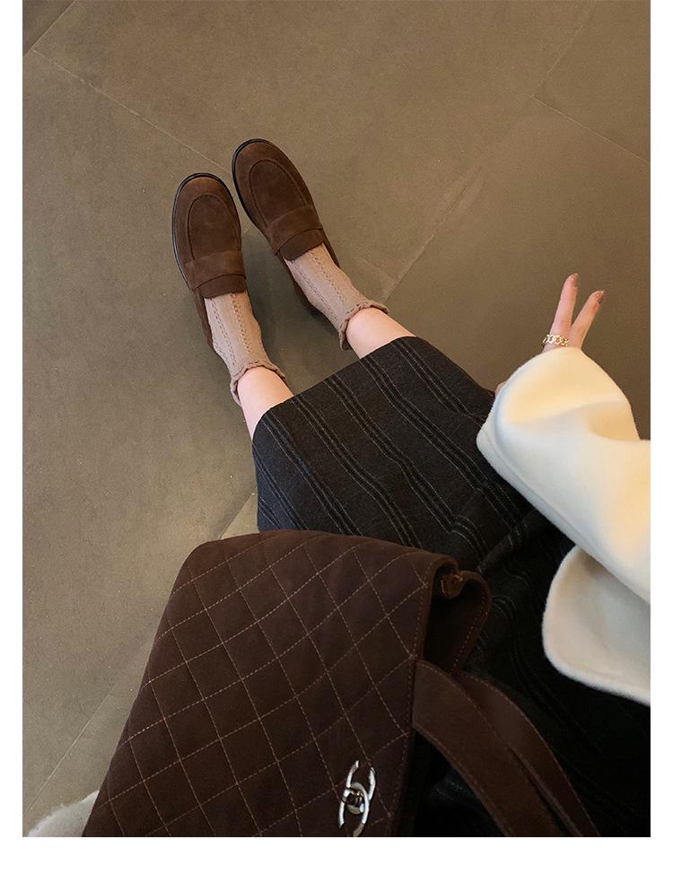 Piel de oveja Estilo Mamá Uva Vintage Estilo Británico Tacón Grueso Zapatos Pequeños de Cuero Mujer Slip-on Perezosos Cuero Genuino Suela Gruesa Mocasines