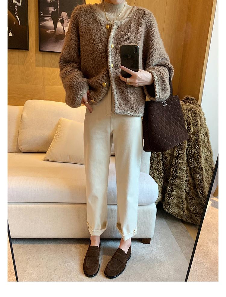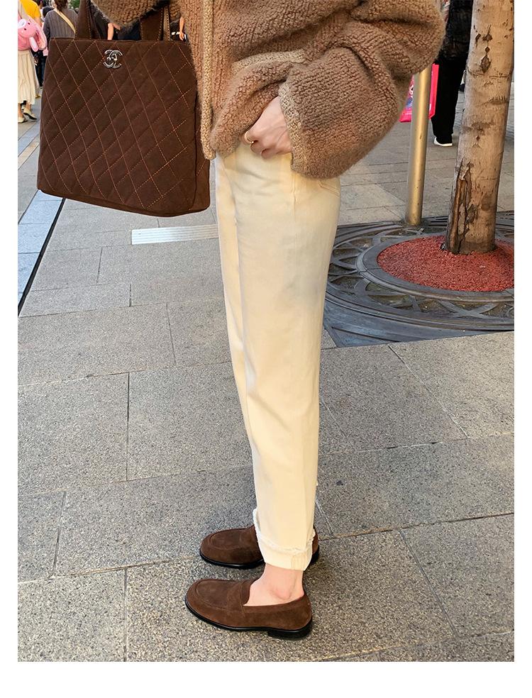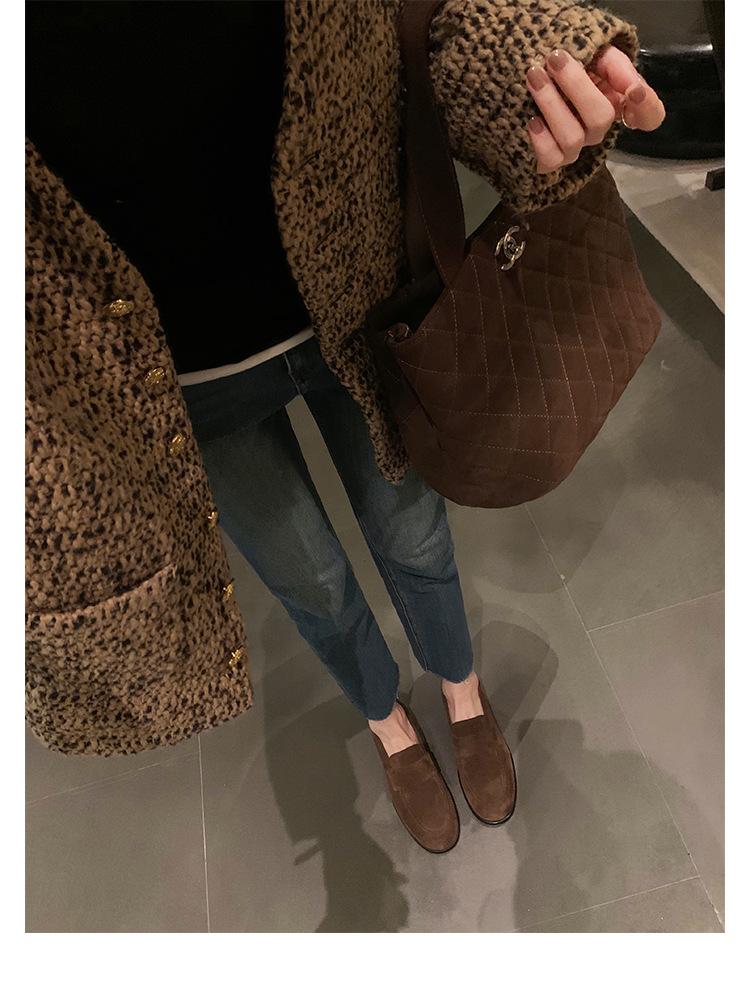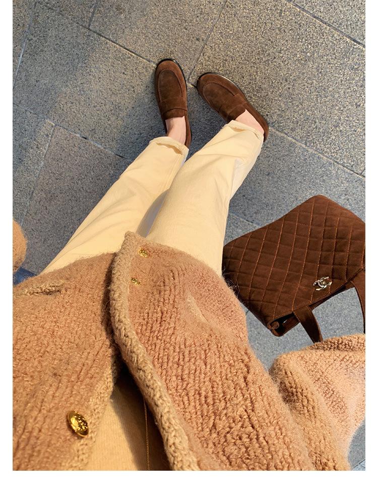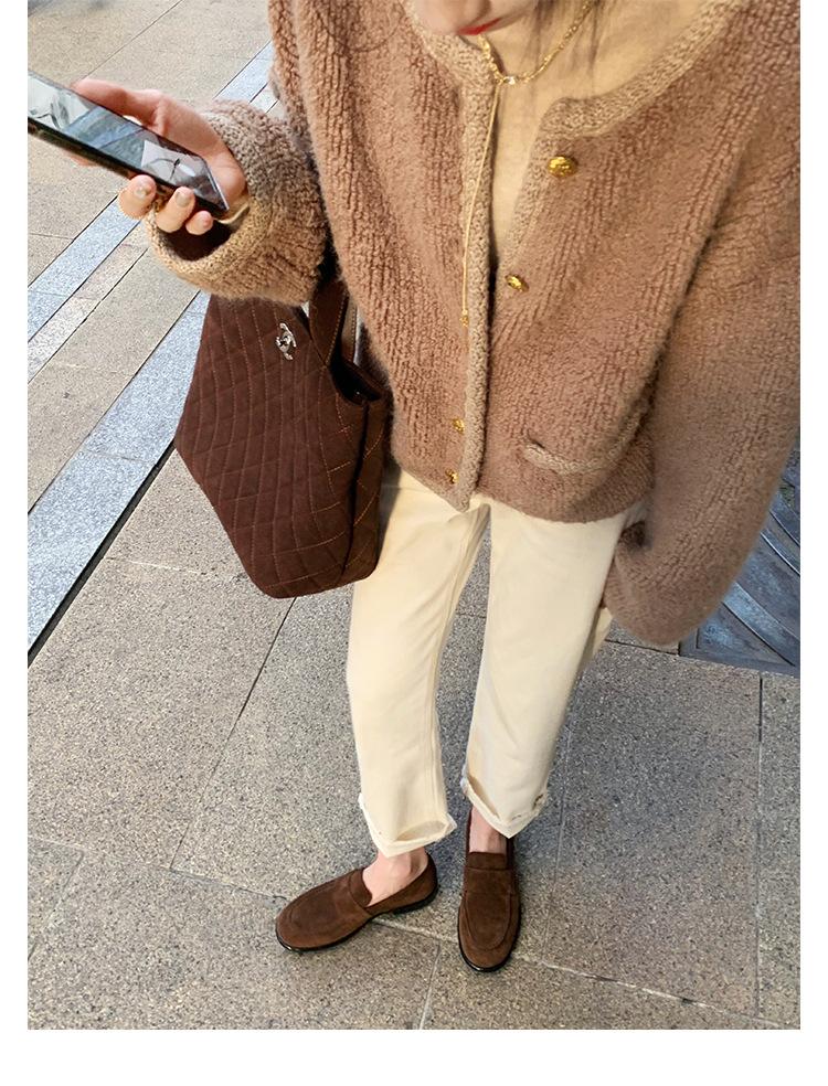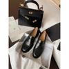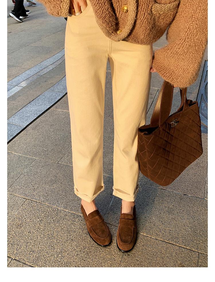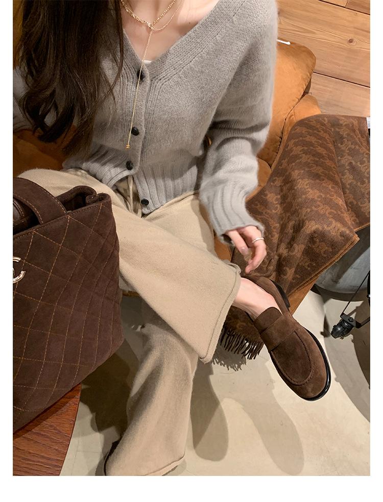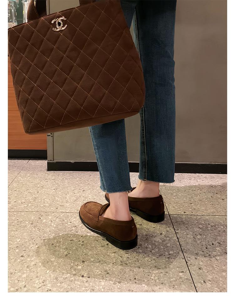 Piel de oveja Estilo Mamá Uva Vintage Estilo Británico Tacón Grueso Zapatos Pequeños de Cuero Mujer Slip-on Perezosos Cuero Genuino Suela Gruesa Mocasines