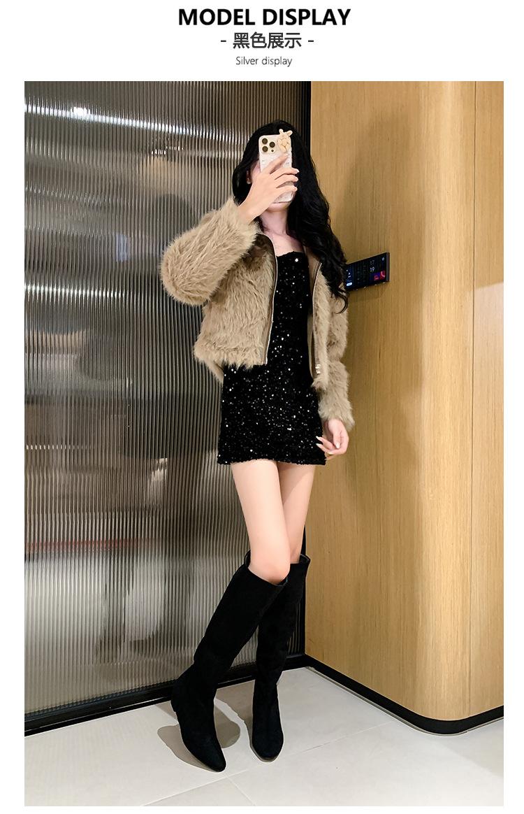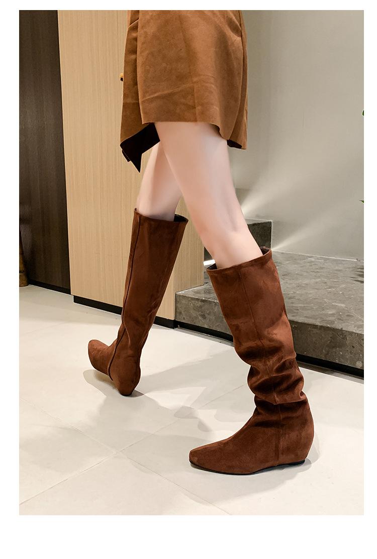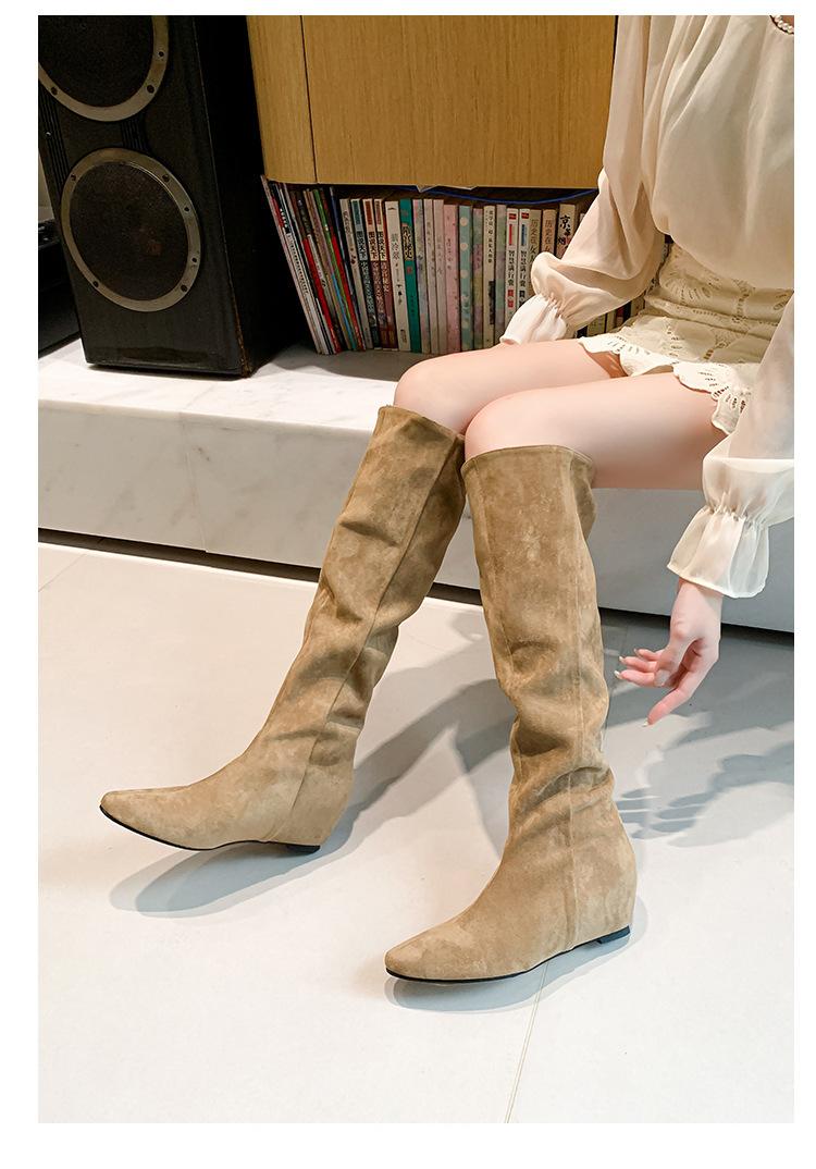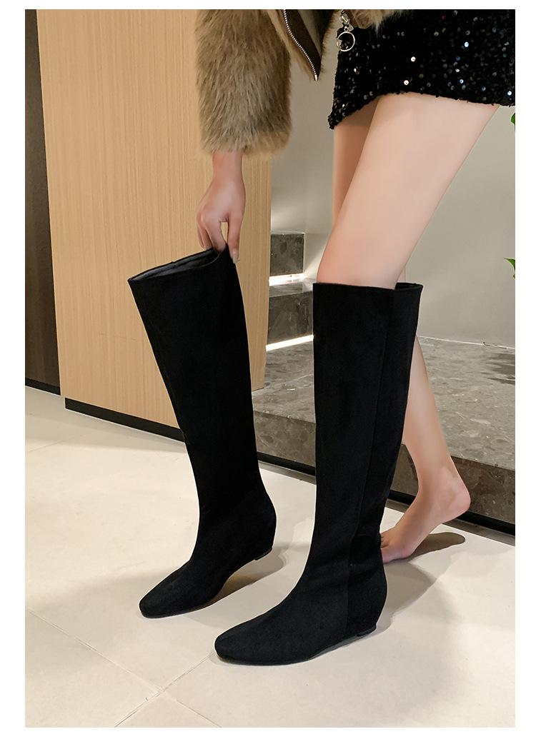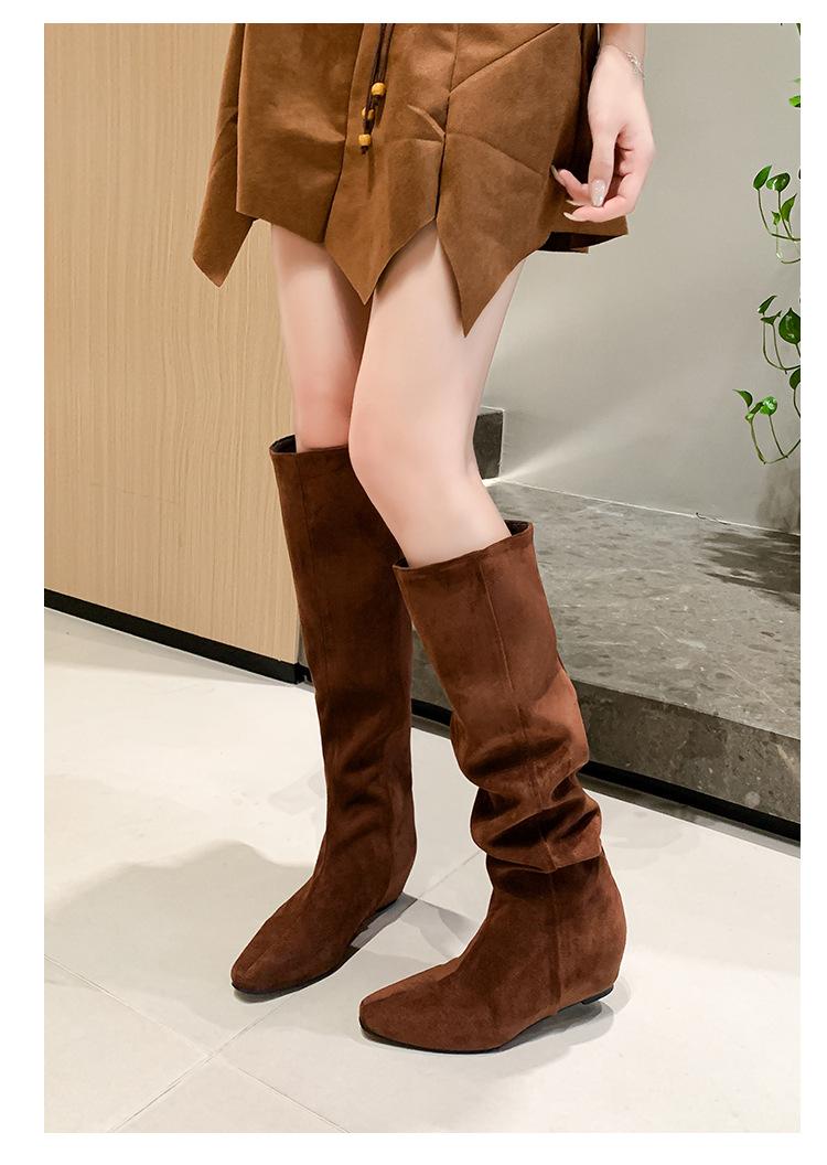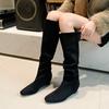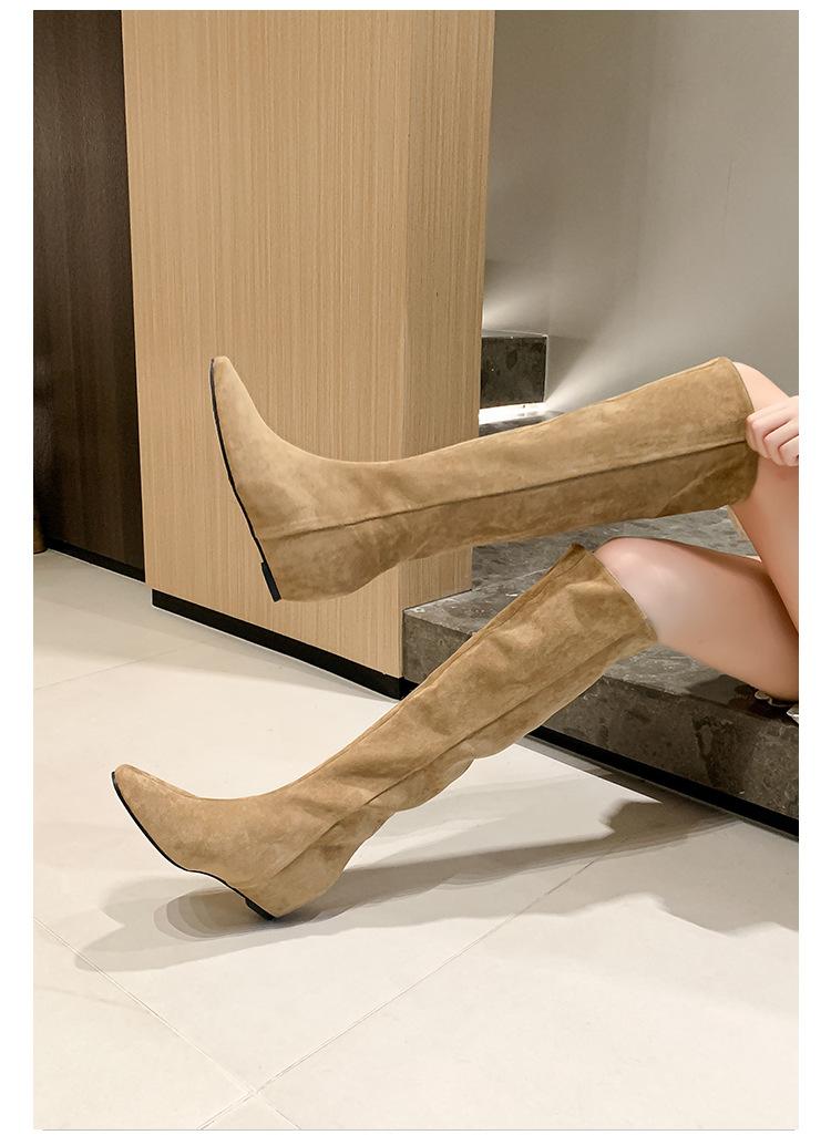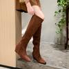 Botas Skinny de Gamuza Botas de Moda 2025 Otoño/Invierno Nuevas Botas Largas Altura Interior Botas Apiladas Botas Vaqueras Europeas y Americanas para Mujer