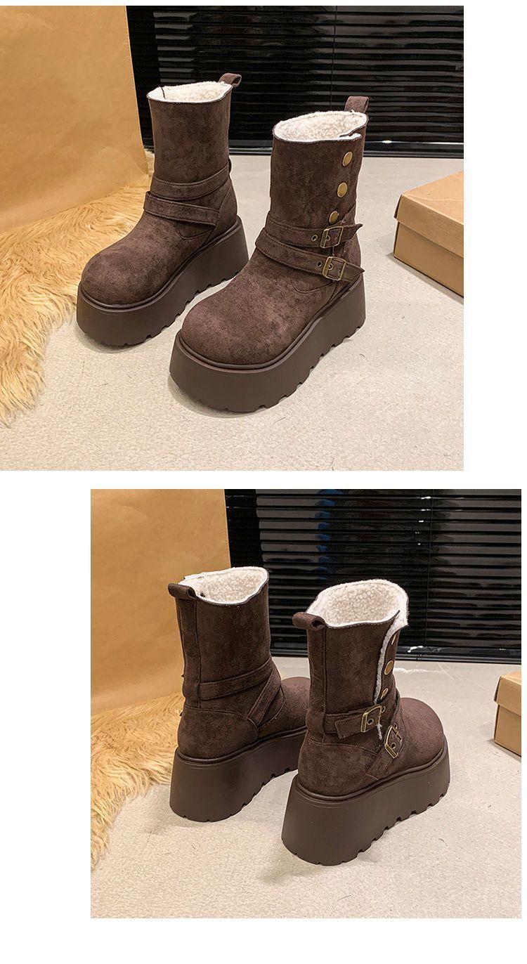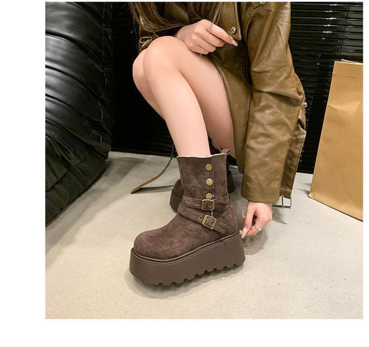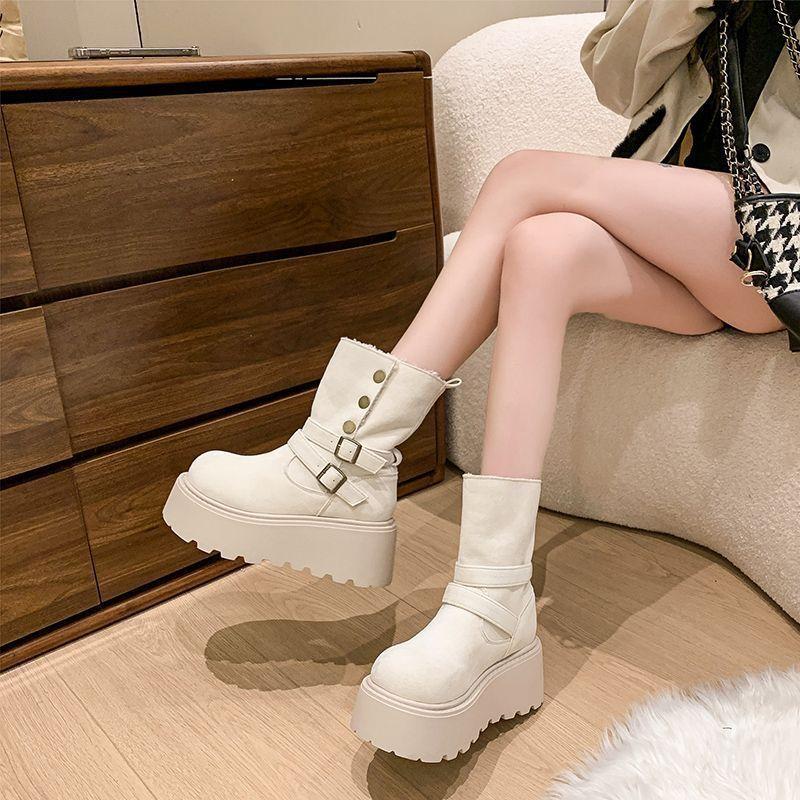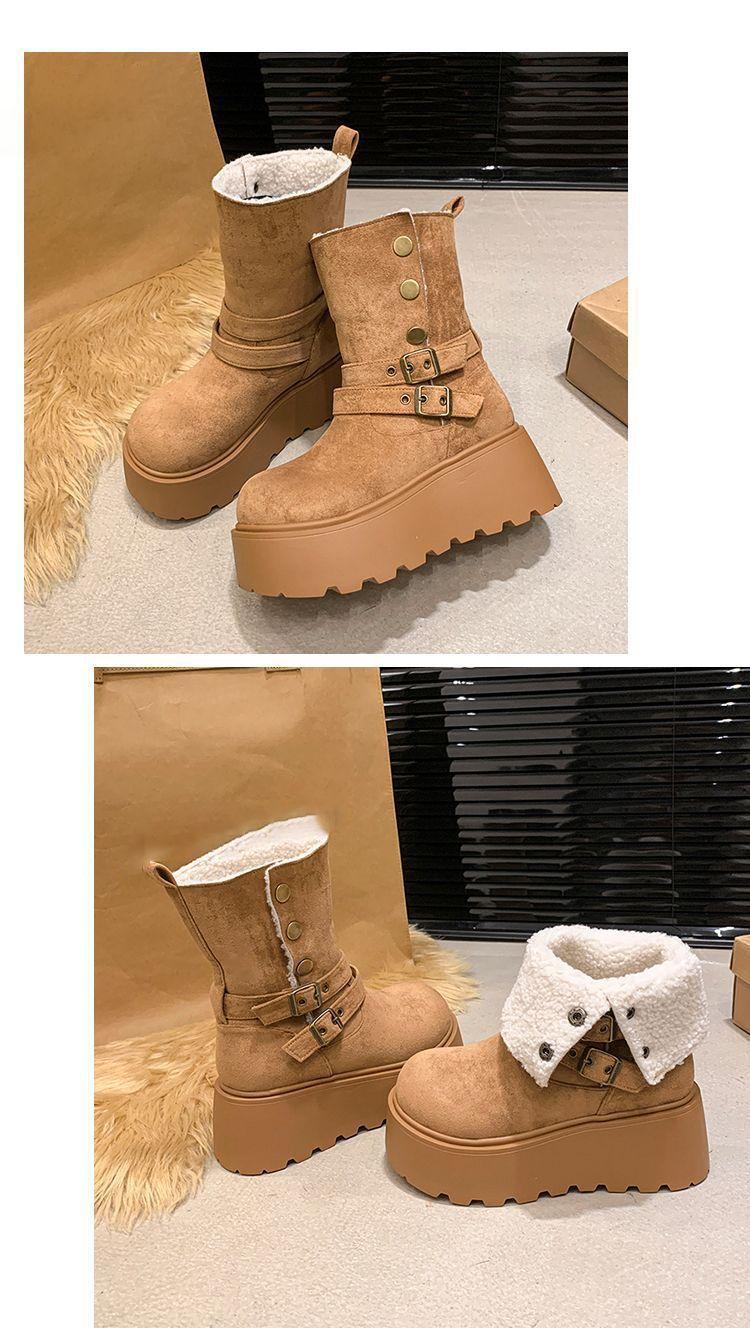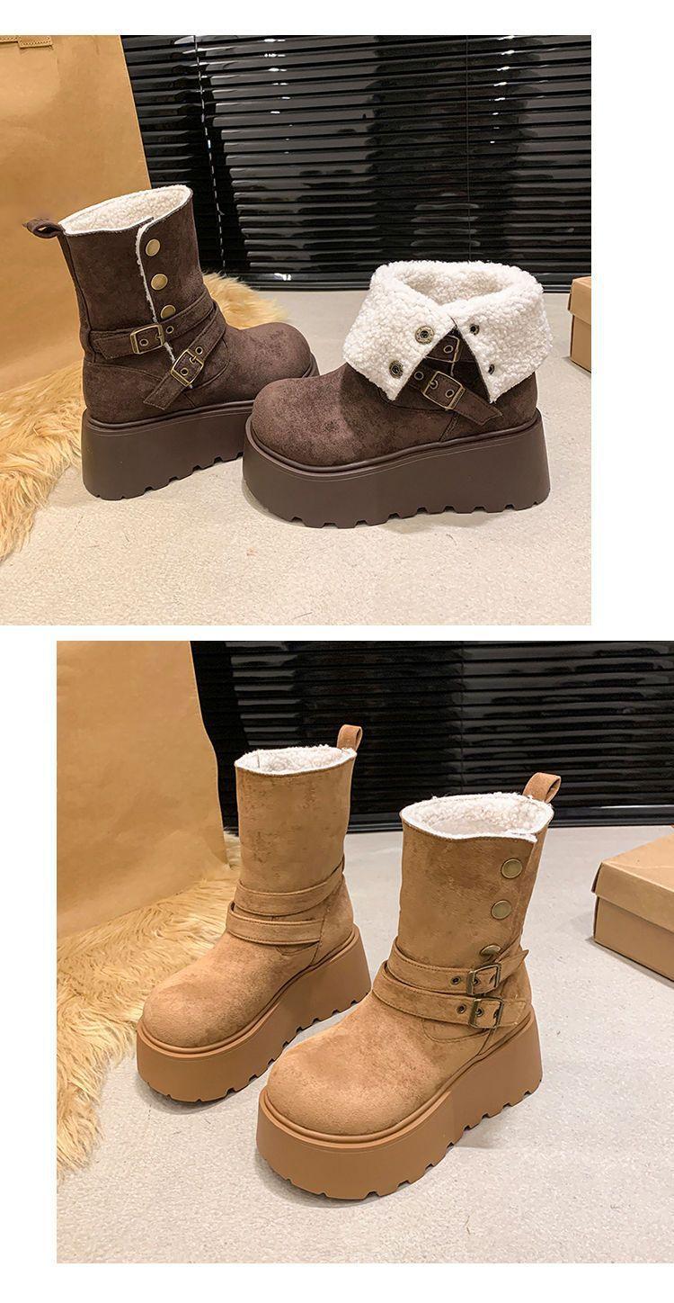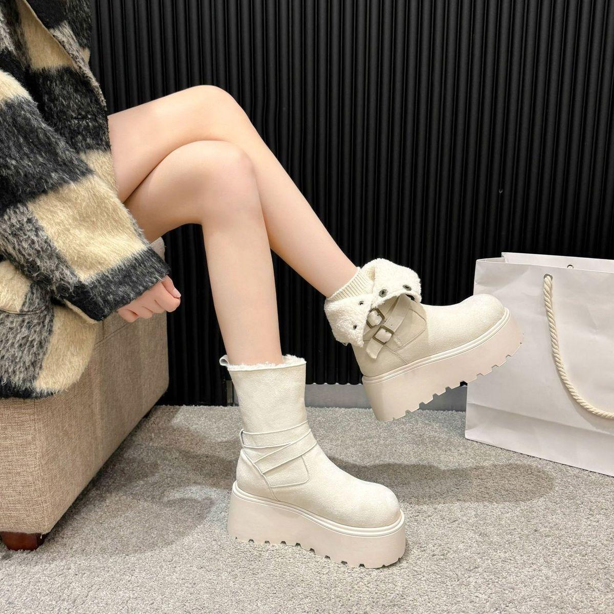Botas de Nieve Casuales de Plataforma Gruesa Bidireccionales para Mujer 2025 Otoño/Invierno Nueva Moda Versátiles Plus Terciopelo Cómodas Botas de Media Caña para Mujer