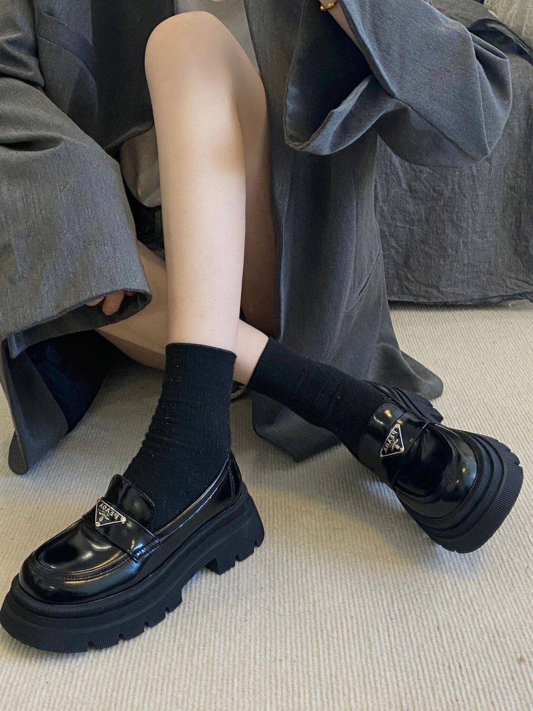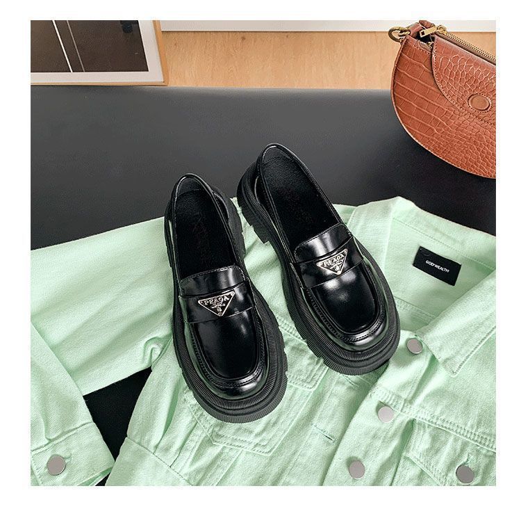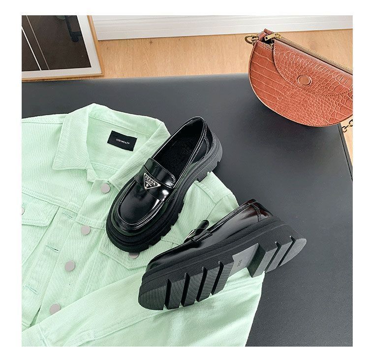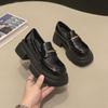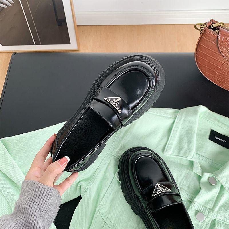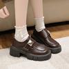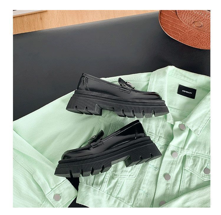 Mocasines muffin de suela gruesa para mujer 2023 nuevos zapatos pequeños de cuero de talle alto estilo británico moda de alta gama retro zapatos de una sola capa