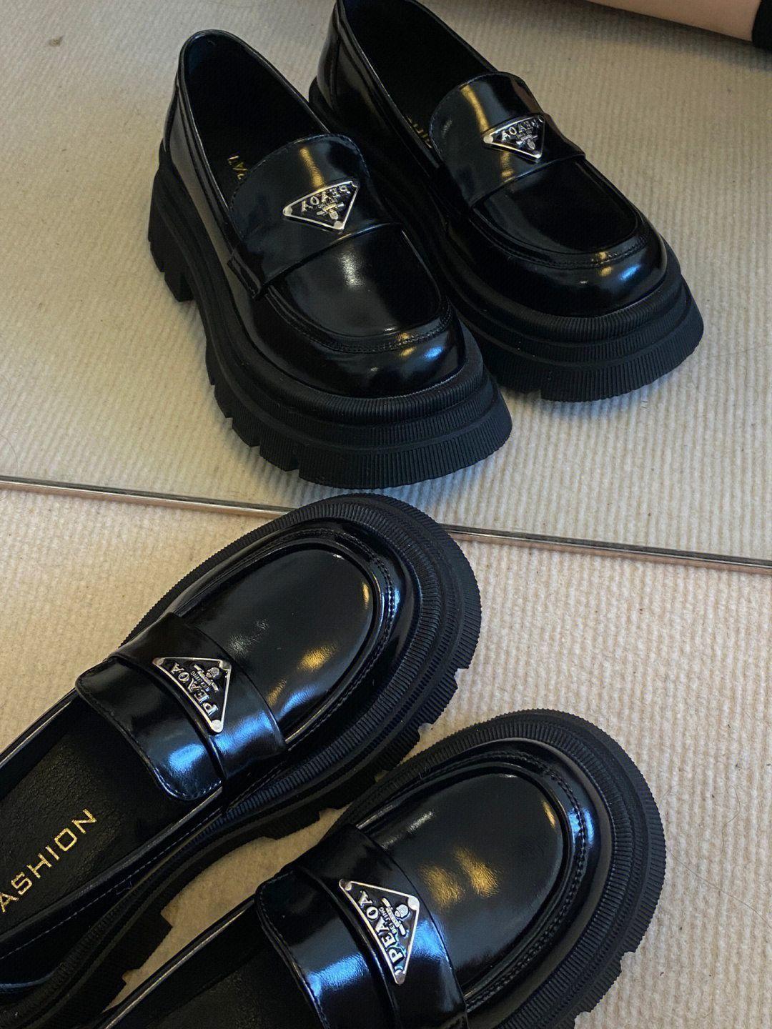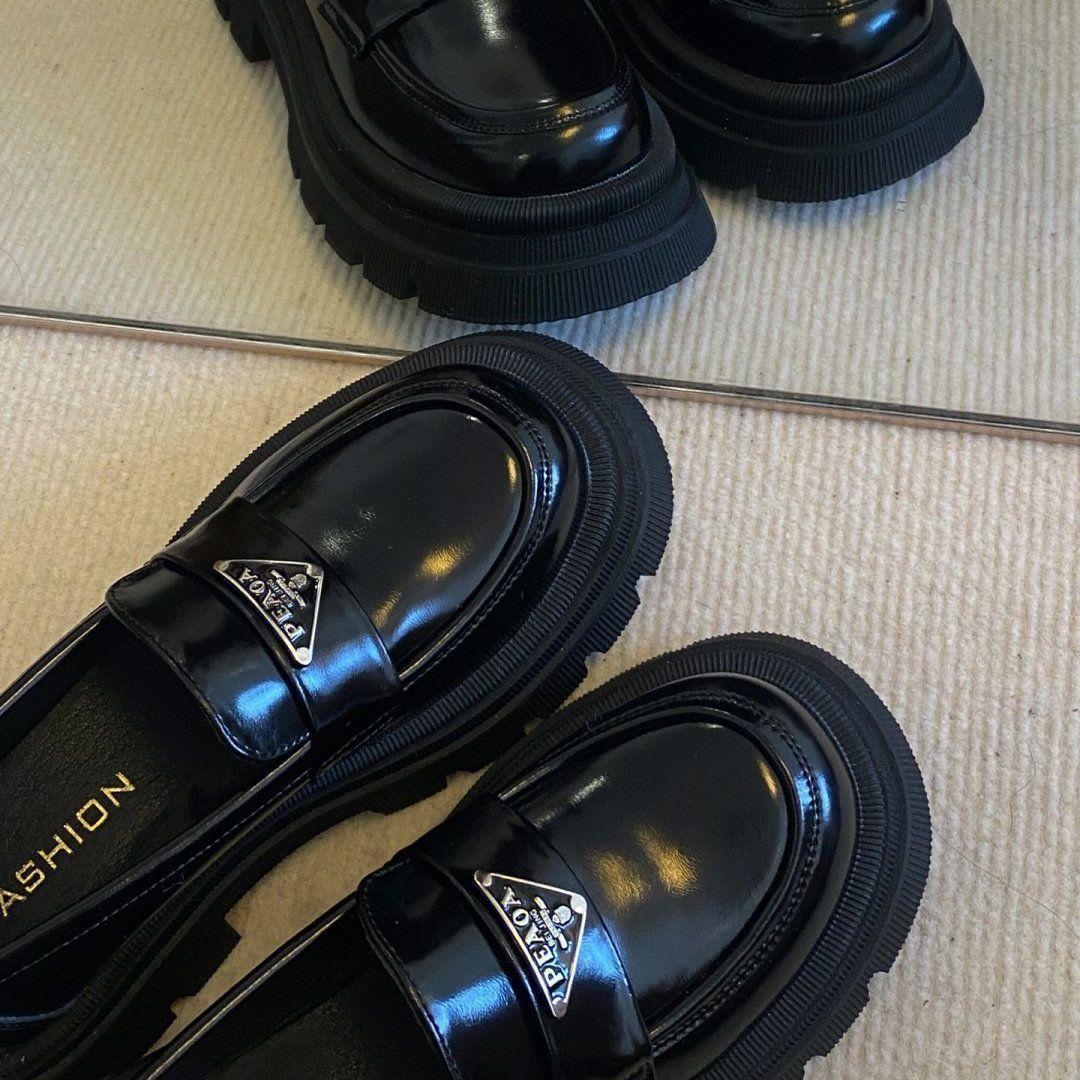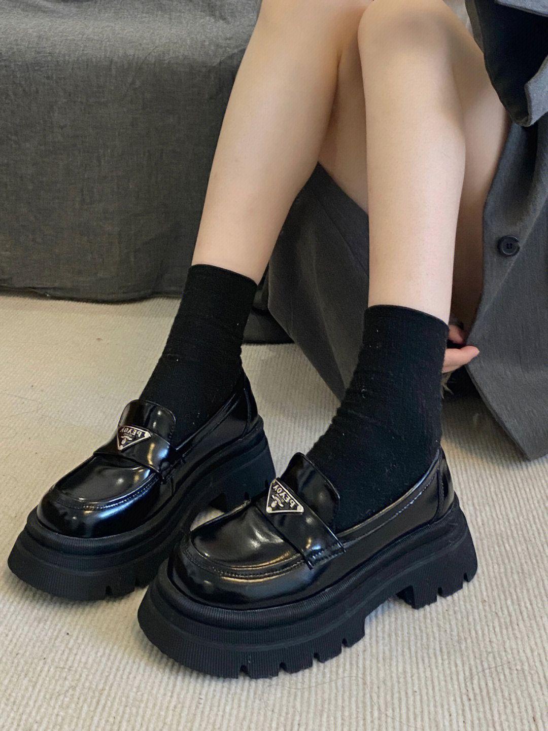 Mocasines muffin de suela gruesa para mujer 2023 nuevos zapatos pequeños de cuero de talle alto estilo británico moda de alta gama retro zapatos de una sola capa