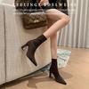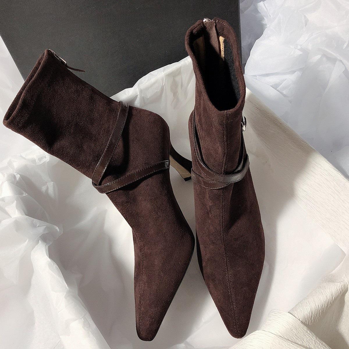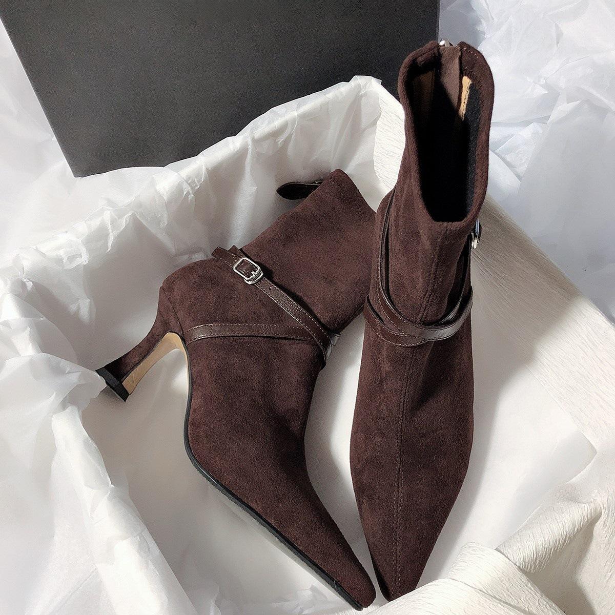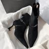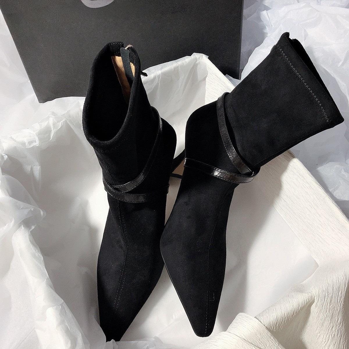 Hebilla cruzada nuevas botas elásticas cremallera trasera tacón alto punta puntiaguda temperamento commuter botines al tobillo
