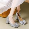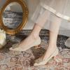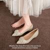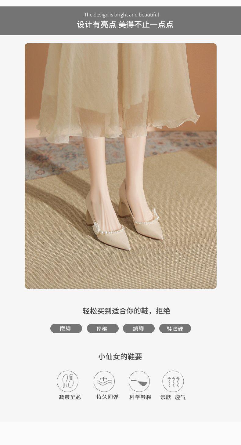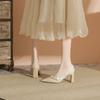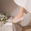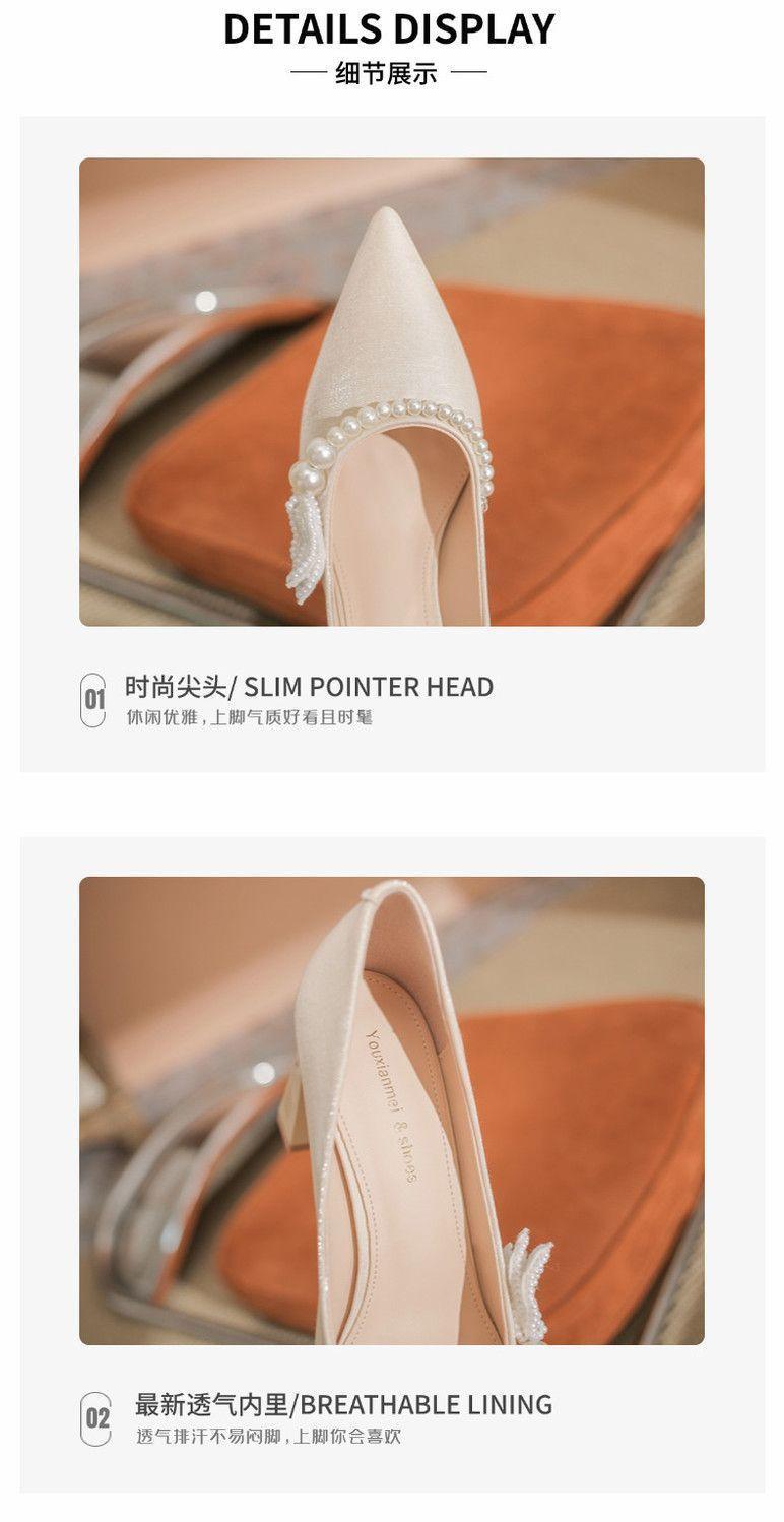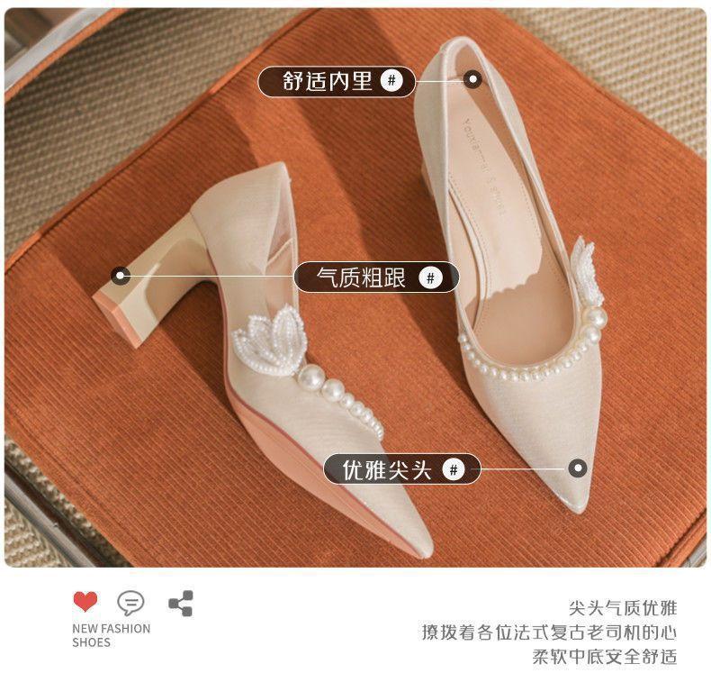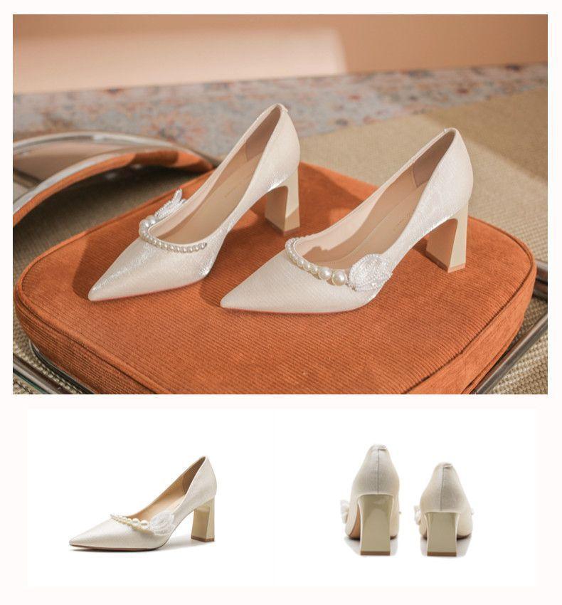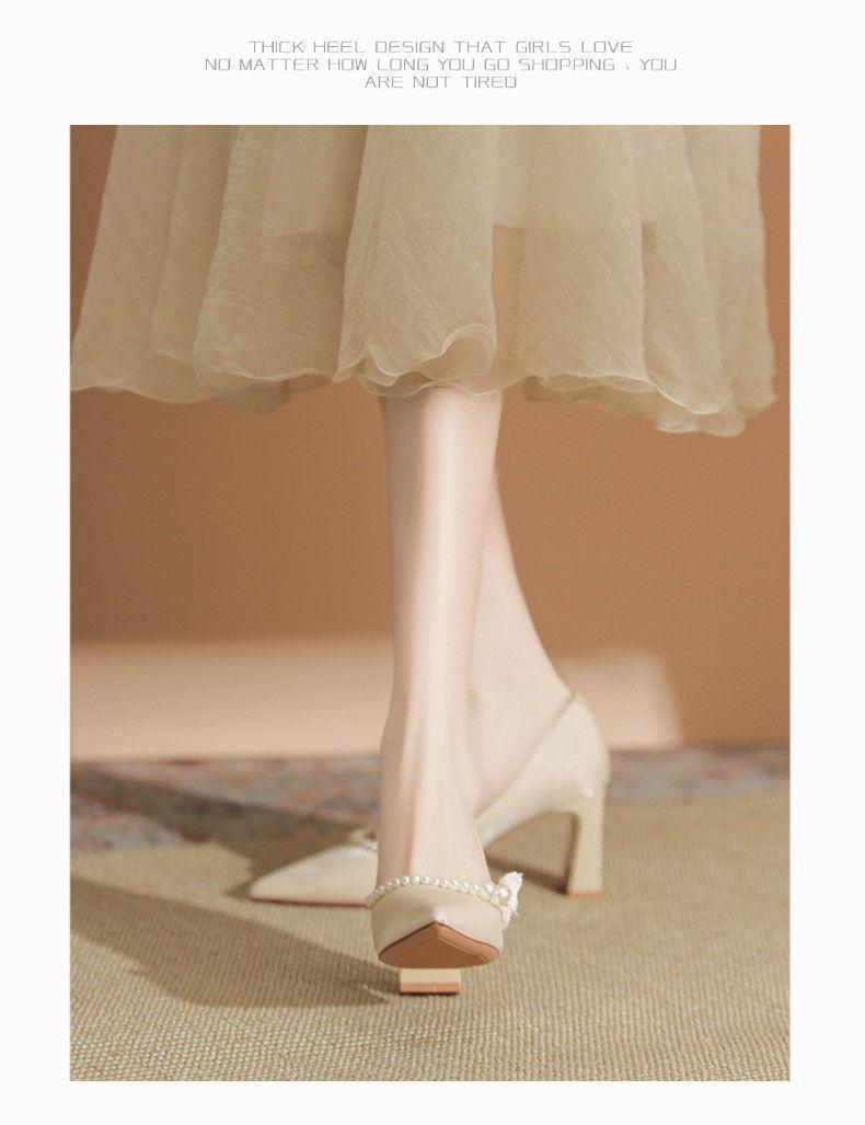 Zapatos de Boda Perlas Pies No Cansados Moda Tacones Altos Mujeres Tacón Ancho 2025 Verano Nuevo Color Champán Punta Afilada Zapatos Individuales Zapatos de Dama de Honor