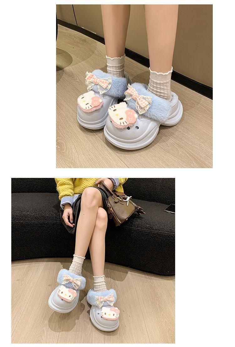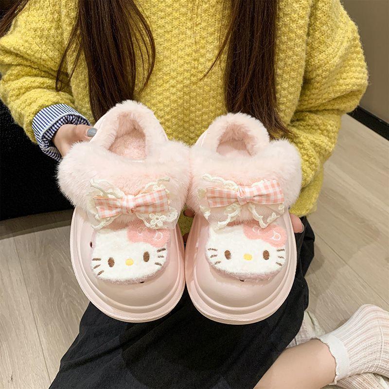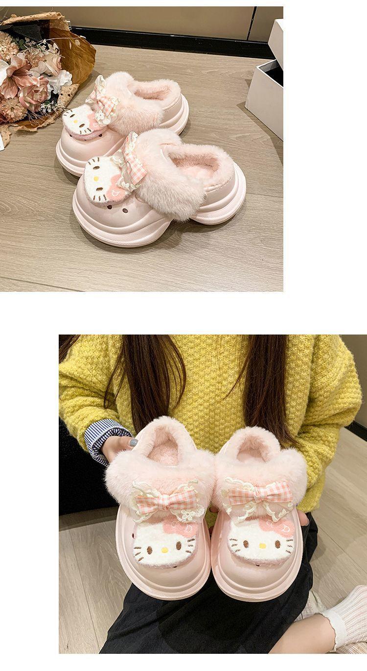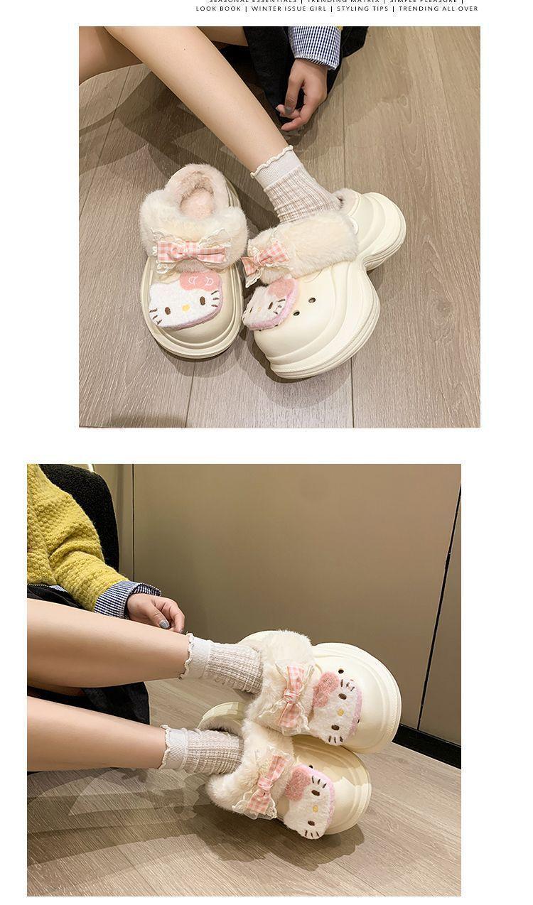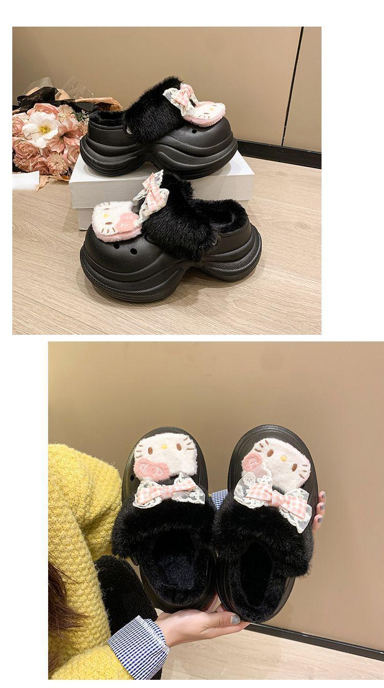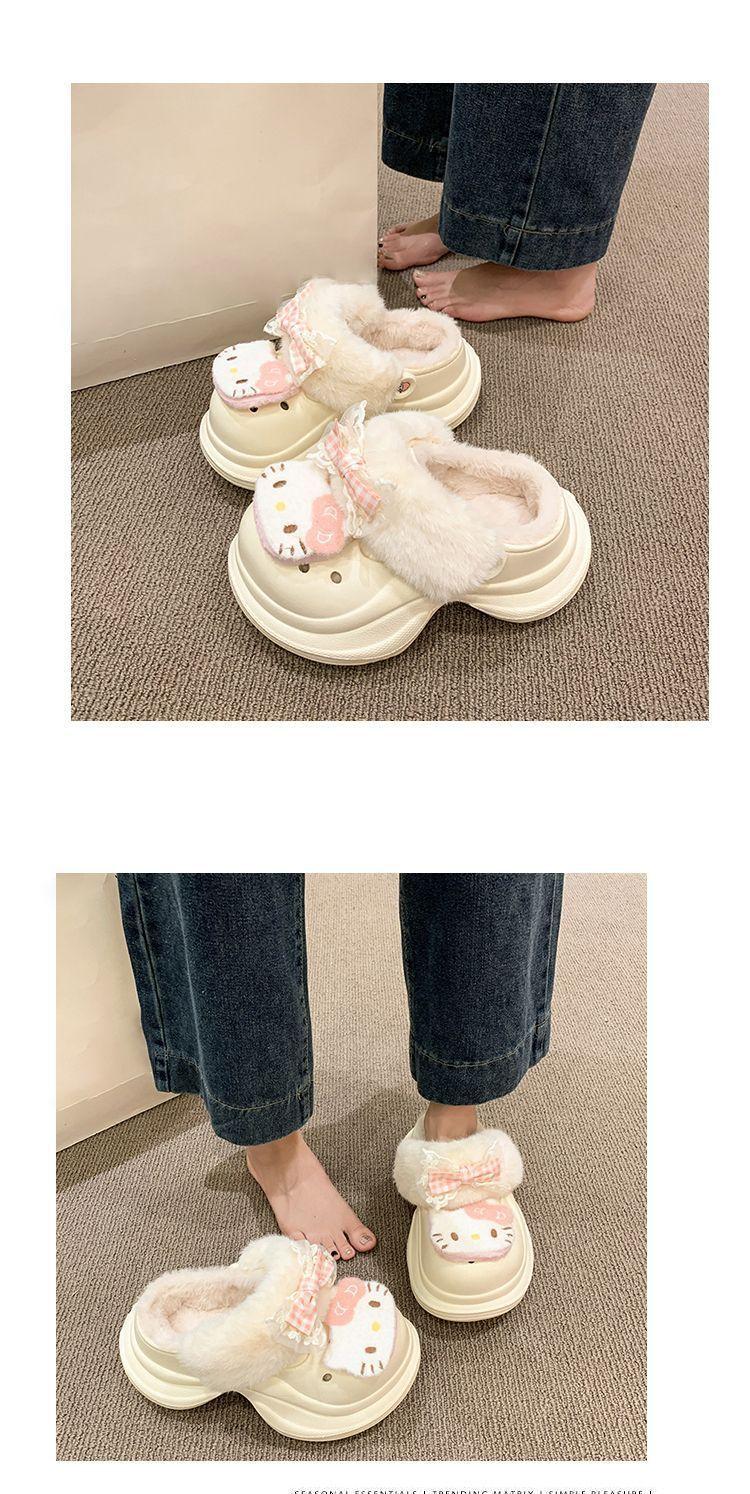 Pantuflas casuales forradas de felpa con sensación de caca de punta cerrada para mujer, de dibujos animados, lindas para exteriores, para mujer, pantuflas de punta cerrada, nuevo otoño e invierno 2025