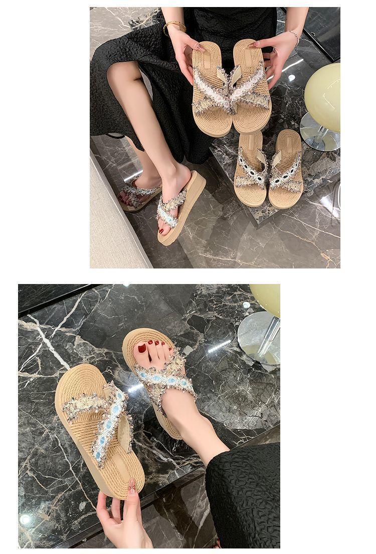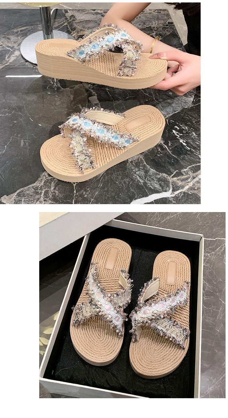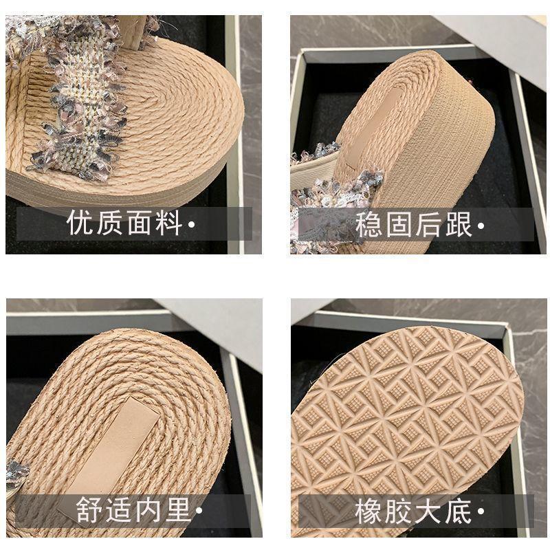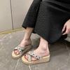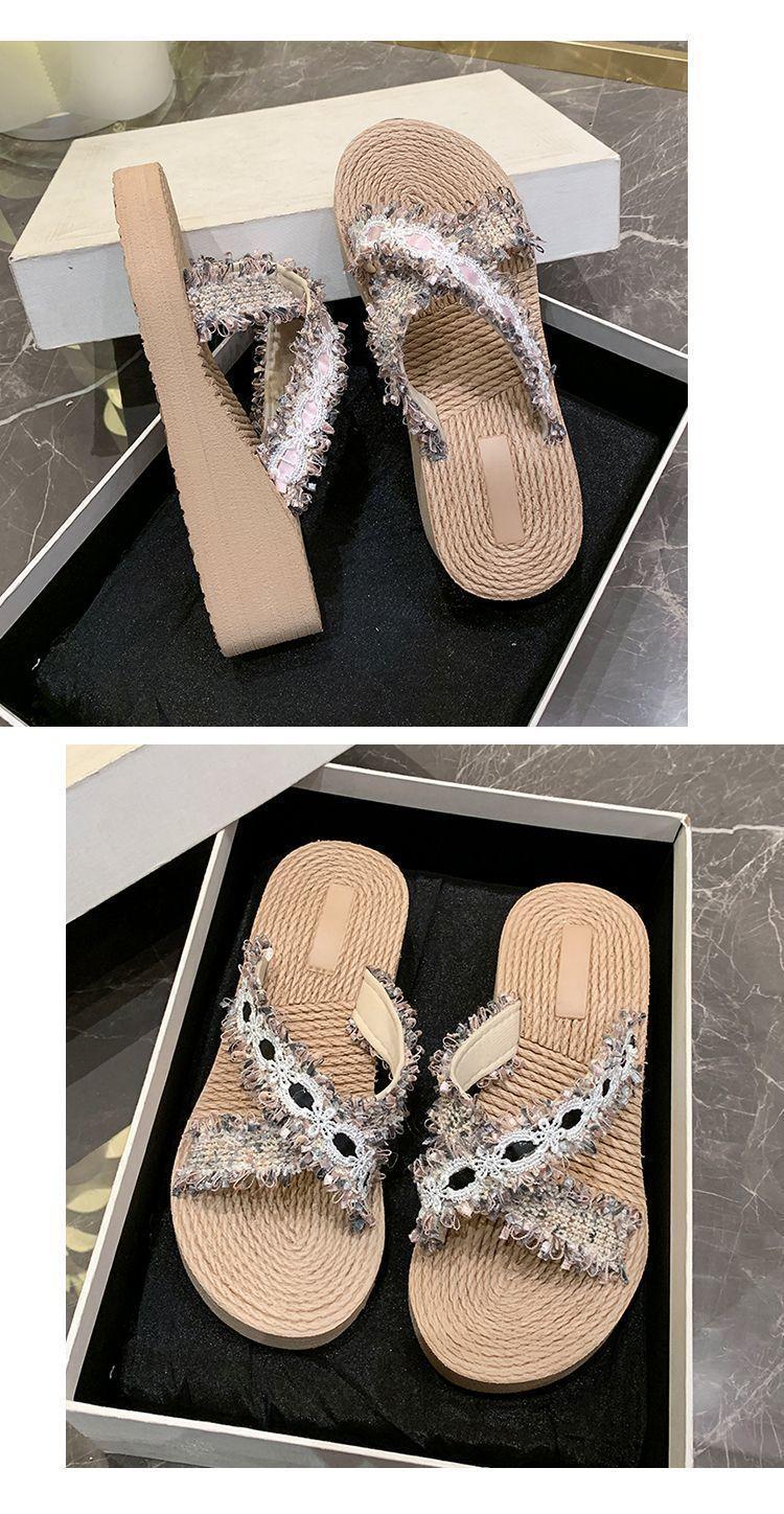 Vacaciones Playa Chanclas Tanga Ropa Exterior de Mujer 2025 Verano Nuevo Retro Sandalias de Tacón de Cuña Zapatillas de Plataforma Gruesa para Mujer