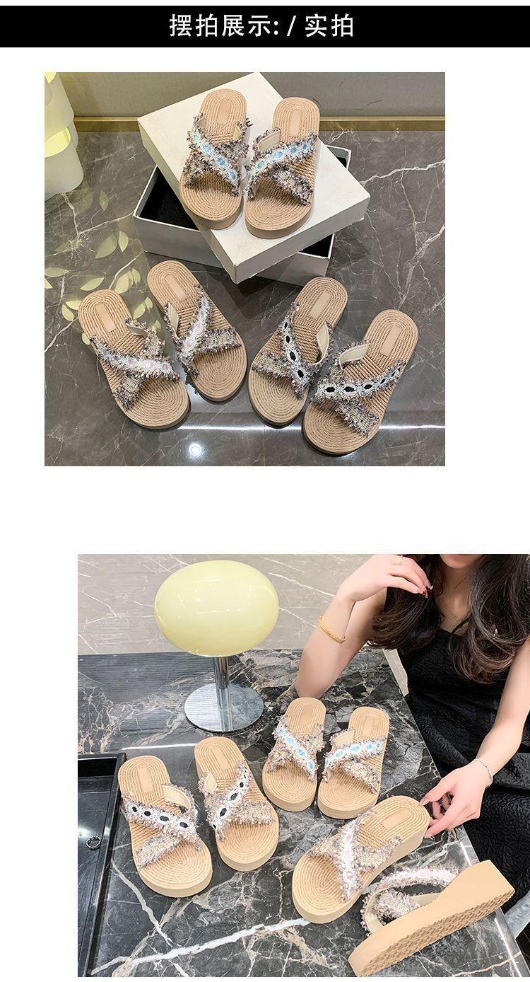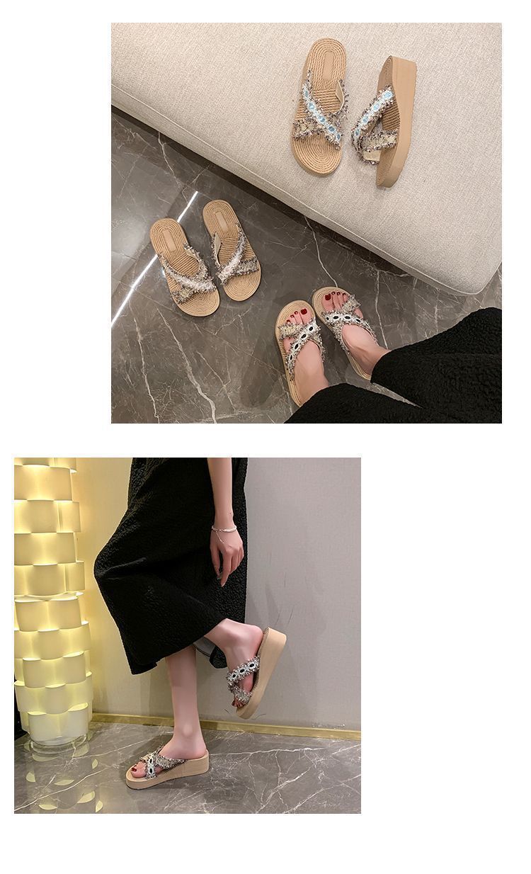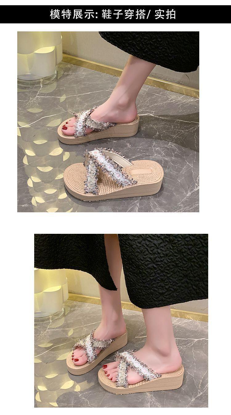 Vacaciones Playa Chanclas Tanga Ropa Exterior de Mujer 2025 Verano Nuevo Retro Sandalias de Tacón de Cuña Zapatillas de Plataforma Gruesa para Mujer
