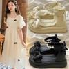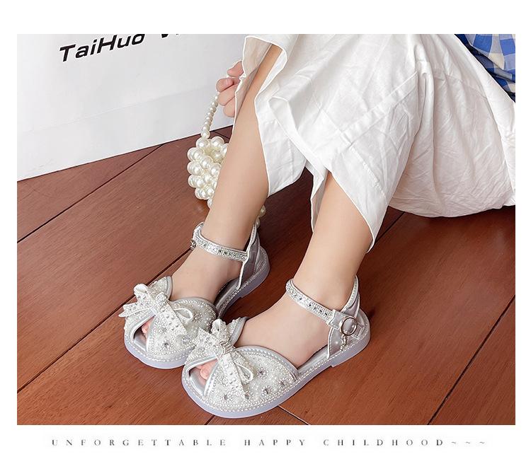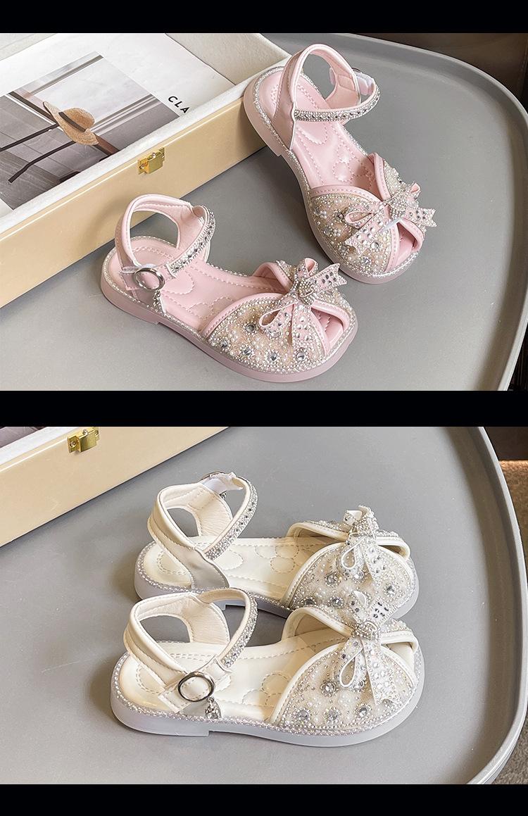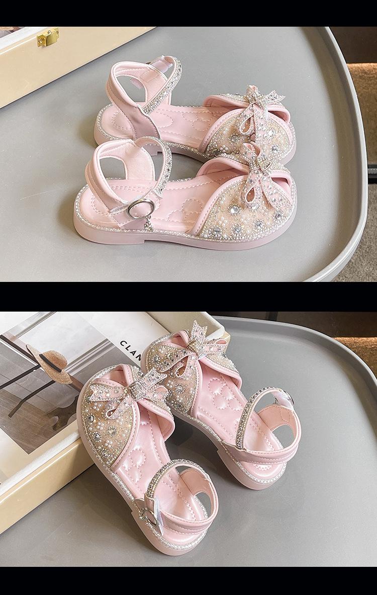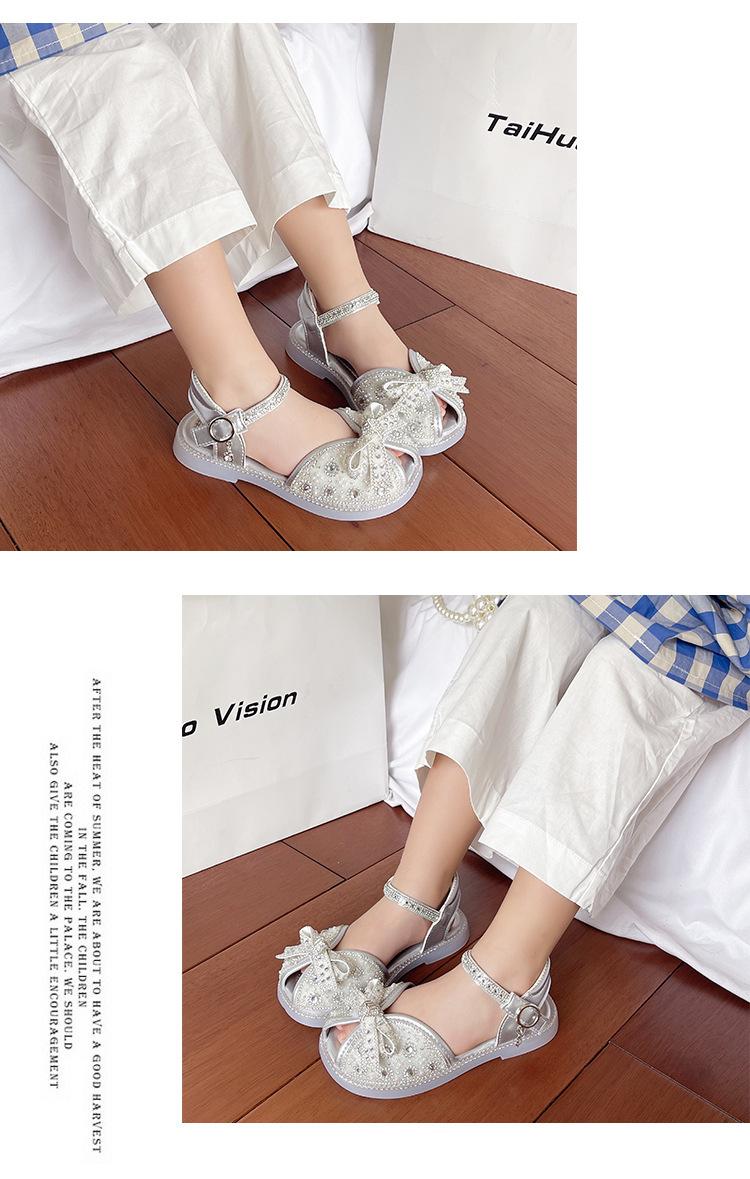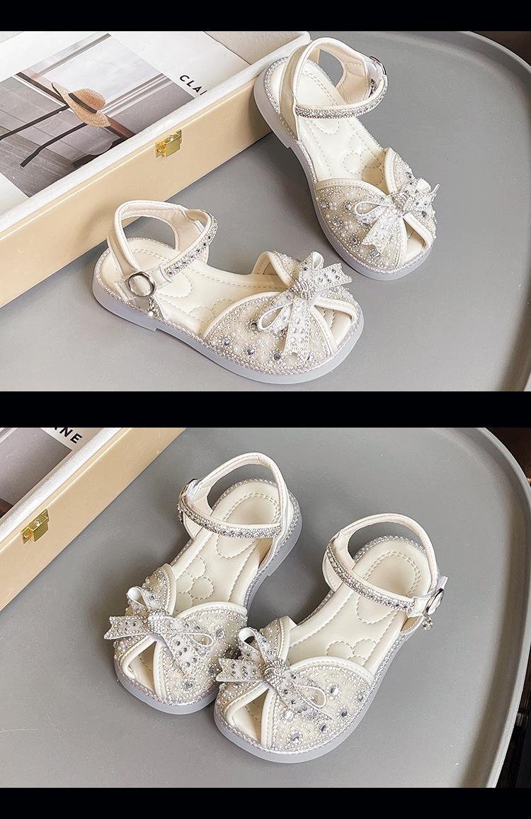 Moda Infantil Sandalias Versátiles de Princesa 2025 Verano Nuevo Estilo Niñas Suela Suave Lazo Zapatos de Playa para Niñita