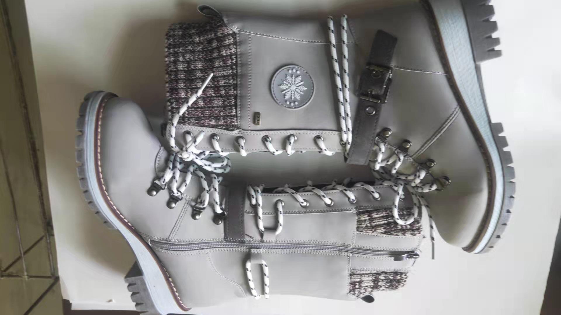 Talla grande transfronteriza Invierno nuevo Europeo y Americano media pantorrilla tacón cuadrado punta redonda botas de algodón botas de lana hebilla frente cordones botas de nieve