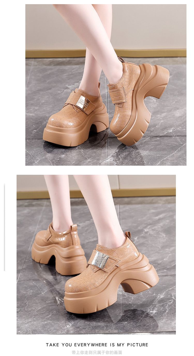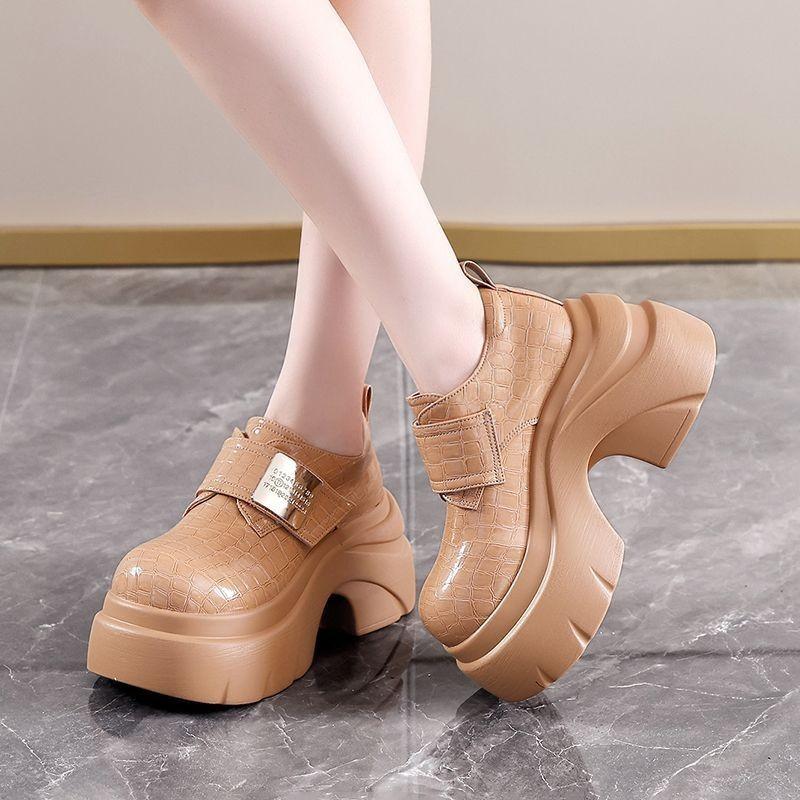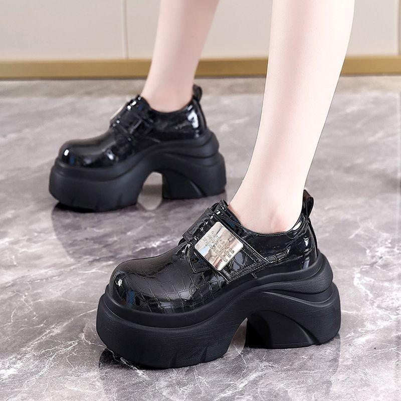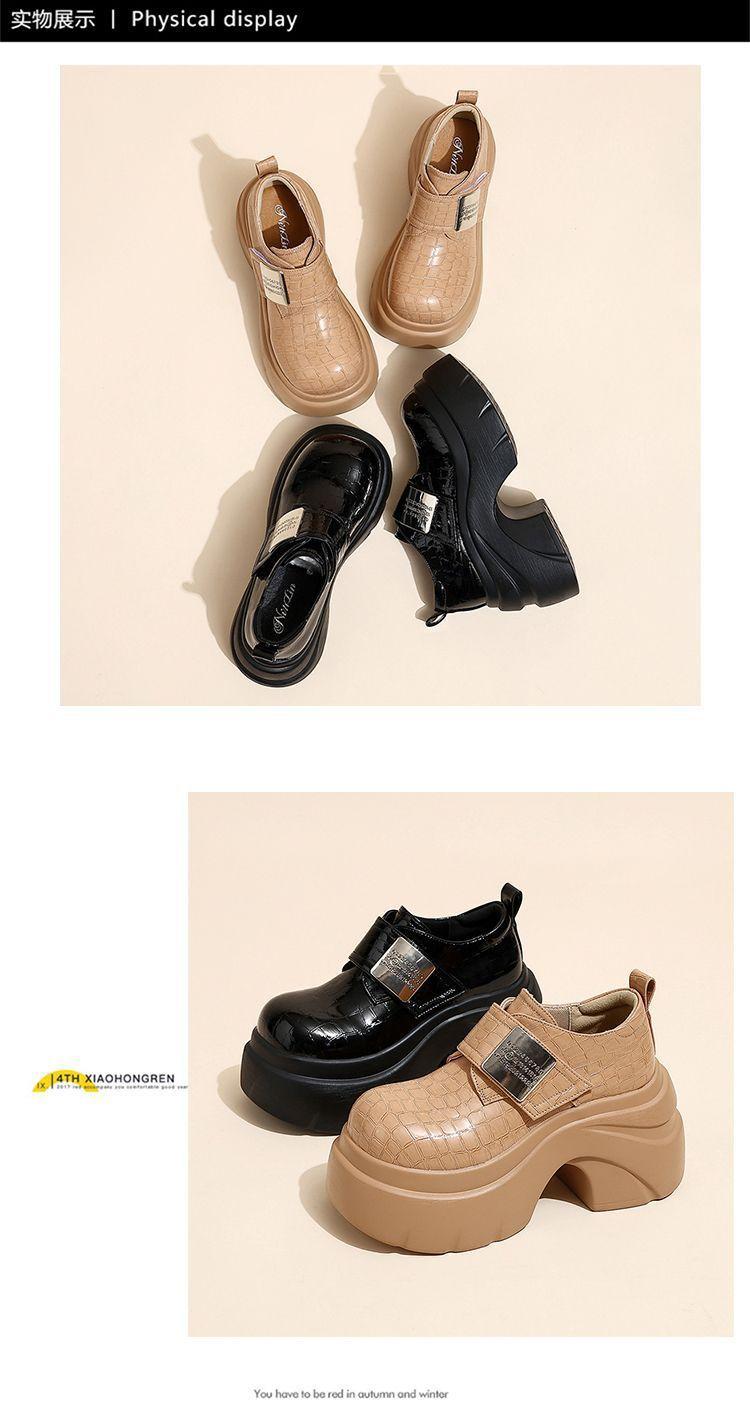Mocasines de estilo retro de pequeña altura con aumento de altura zapatos individuales mujer 2025 otoño nuevos plataforma británica suela gruesa zapatos de piel pequeños mujer