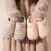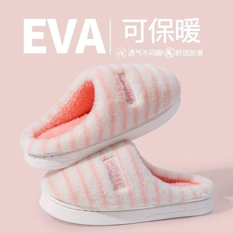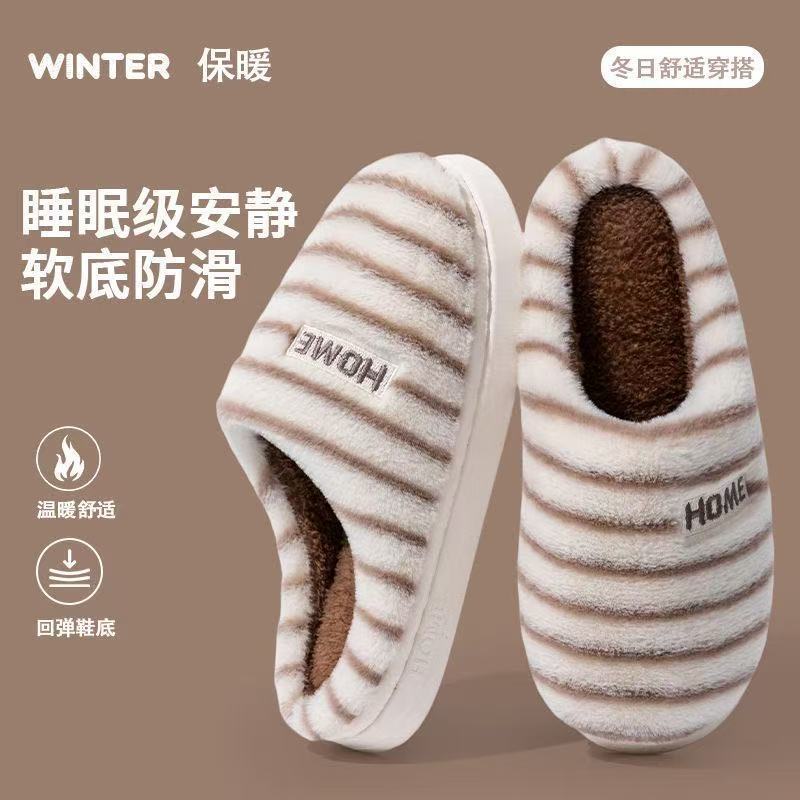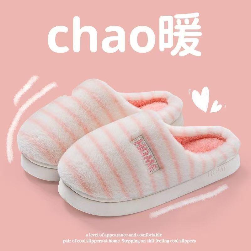 Zapatillas de algodón con sensación de pisar mierda para mujer, otoño e invierno, para interior, para el hogar, cálidas, de felpa, engrosadas, suela suave, antideslizantes, zapatos de algodón a rayas para hombre