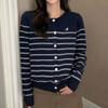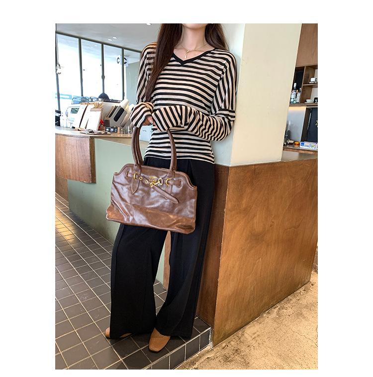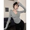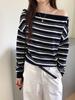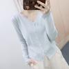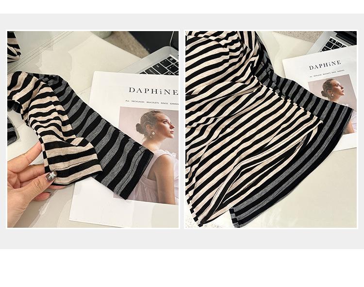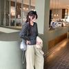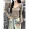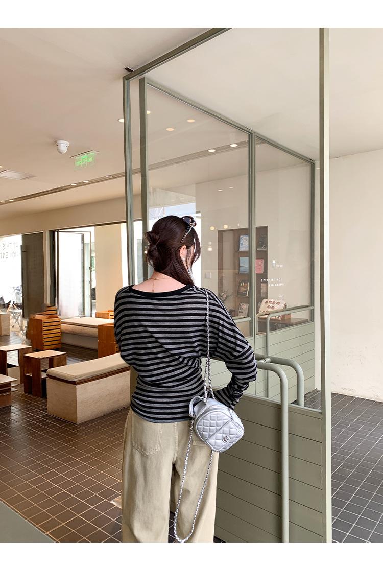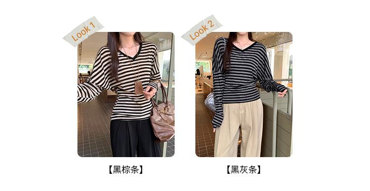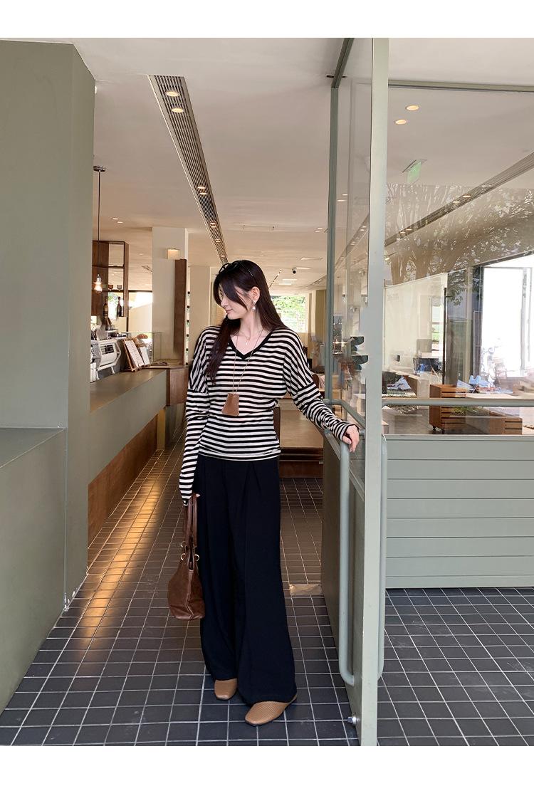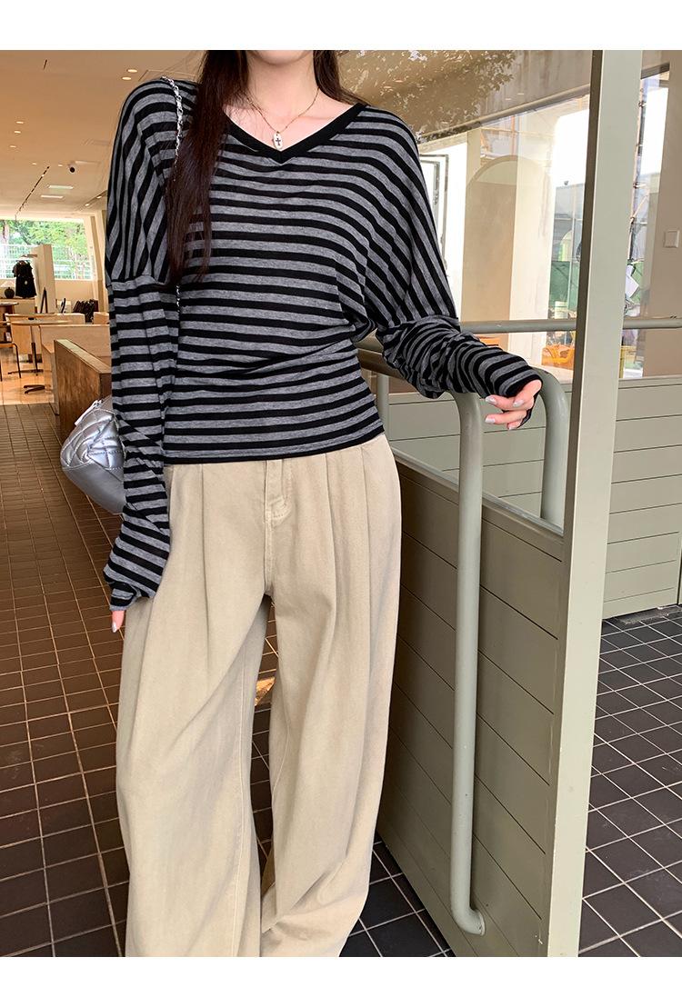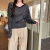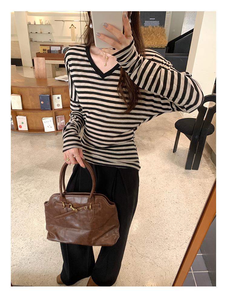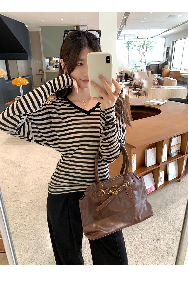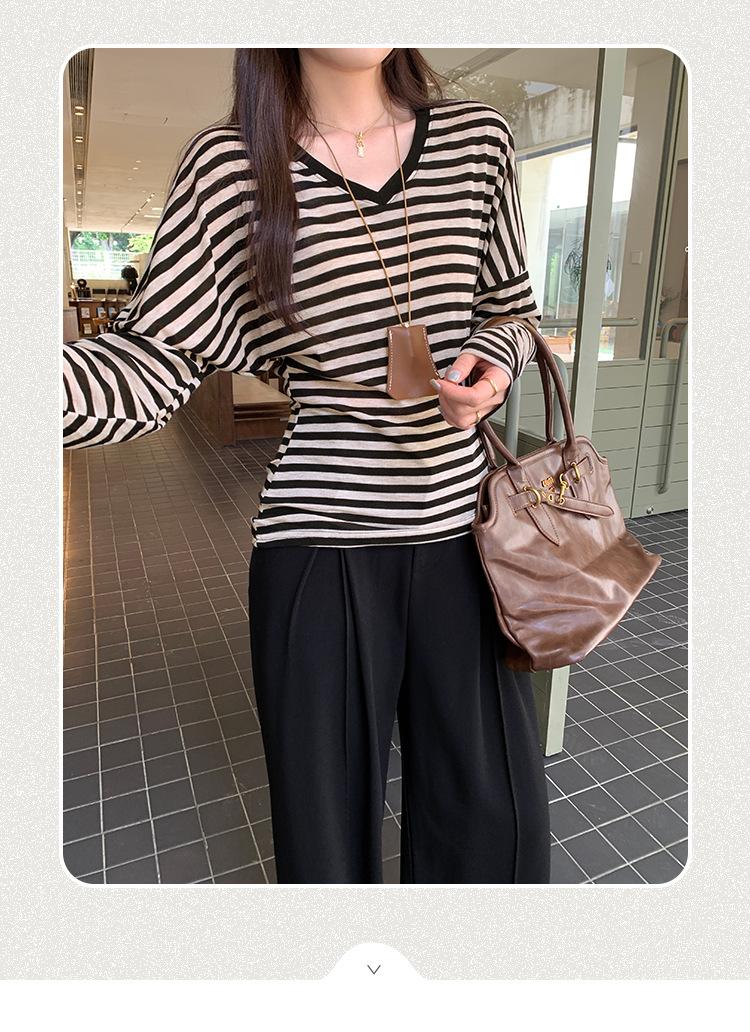 Playera Francesa Hot Girl Cuello en V Manga Larga Mujer Otoño 2025 Nueva Diseño Coreano Sentido Chic Rayada Versátil Top
