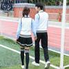 Female B03 + blue long sleeve + black striped skirt + bow tie M