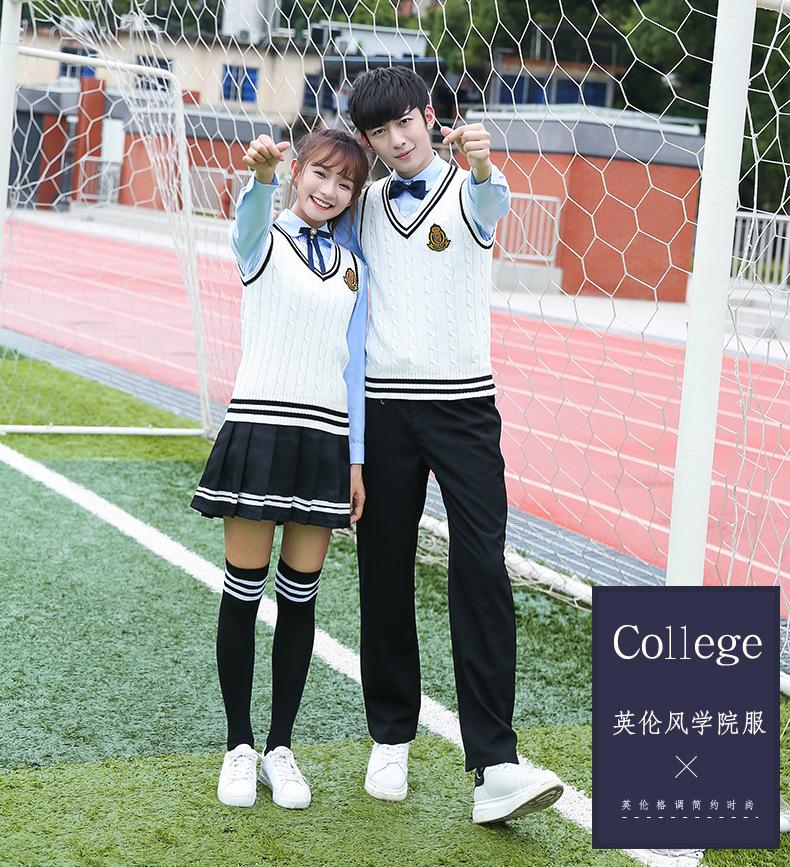Otoño Nuevo Estilo Universitario Británico Uniforme de Estudiante de Secundaria Traje de Clase de Graduación Traje de Pareja Venta al por Mayor