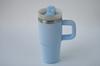 Materiales Seguros: Forro interior: acero inoxidable 304 (grado alimenticio) - resistente a la corrosión, conserva la temperatura de la bebida y no tiene sabor metálico. Carcasa exterior: Acero inoxidable 201 - resistente a impactos, a prueba de óxido. Mango: Plástico PP apto para alimentos con goma suave - antideslizante y fácil de transportar. Tapa: Tapa con pajita giratoria - la pajita es desmontable para facilitar la limpieza y es a prueba de fugas cuando está cerrada. Pulverización Mate: Superficie exterior usa pintura mate - resistente a los arañazos con un aspecto elegante. Está libre de metales pesados y cumple con los estándares de la FDA y EU REACH. Especificaciones clave: Capacidad: 450 ml - versátil para uso diario. Dimensiones: Parte superior 8 cm x Parte inferior 6 cm x Altura 18 cm - cabe en portavasos y es fácil de sostener. Peso: 260 g - ligero y portátil.