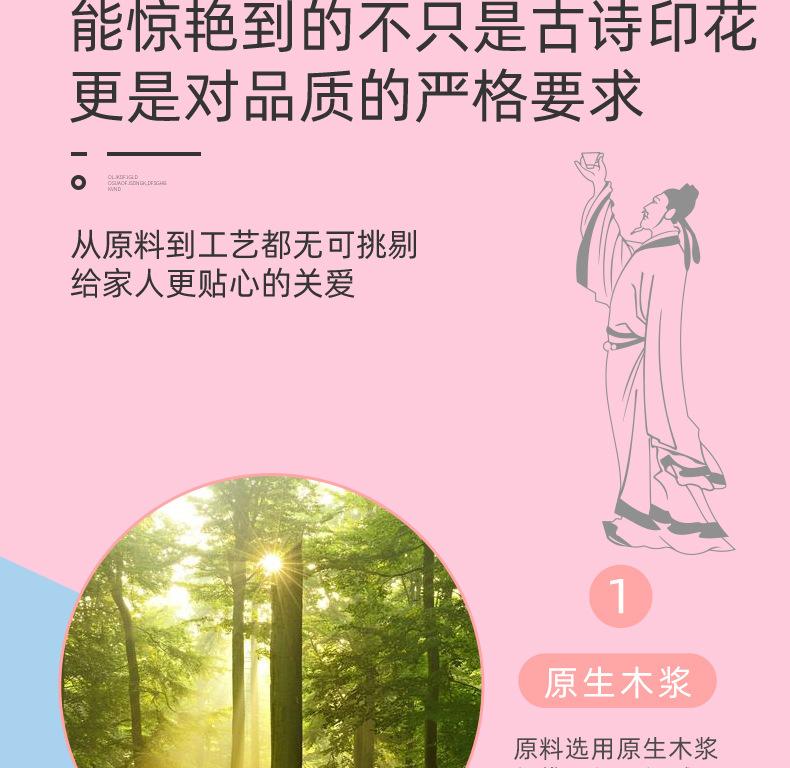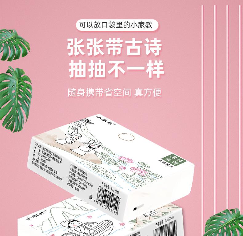 200 paquetes por caja * 120 hojas 4 capas Poesía Tang 300 Poemas impreso paquete pequeño portátil servilletas para estudiantes pañuelos faciales pañuelos extraíbles