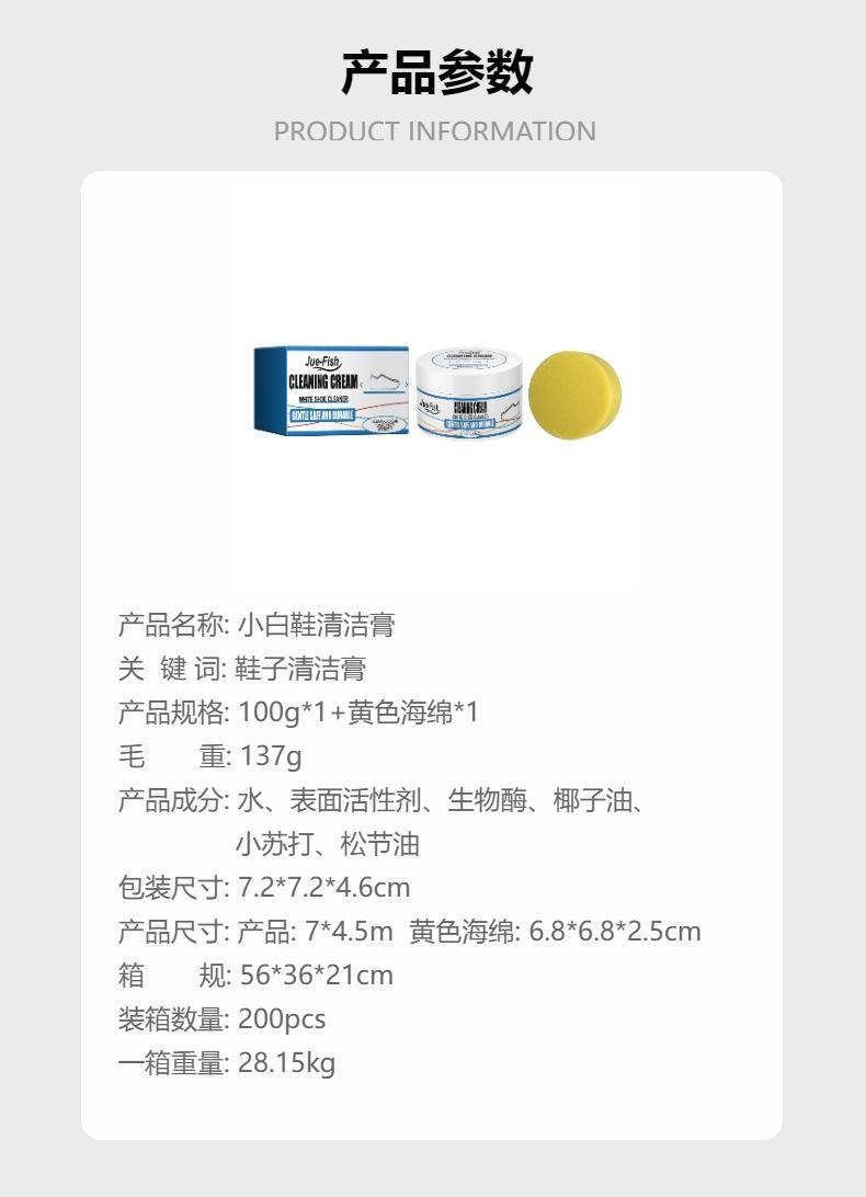 Jue Fish Crema Limpiadora para Zapatos Blancos, Crema Limpiadora Descontaminante, Zapatos Deportivos de Lona que No se Lavan, Limpieza y Eliminación de Manchas para Zapatos Blancos