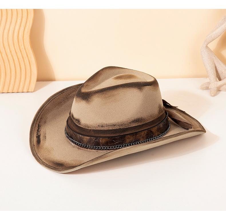 Sombrero de fieltro Amazon transfronterizo sombrero de jazz retro británico para hombres y mujeres sombrero de caballero de ala plana sombrero de vaquero occidental sombrero de copa de copa plana