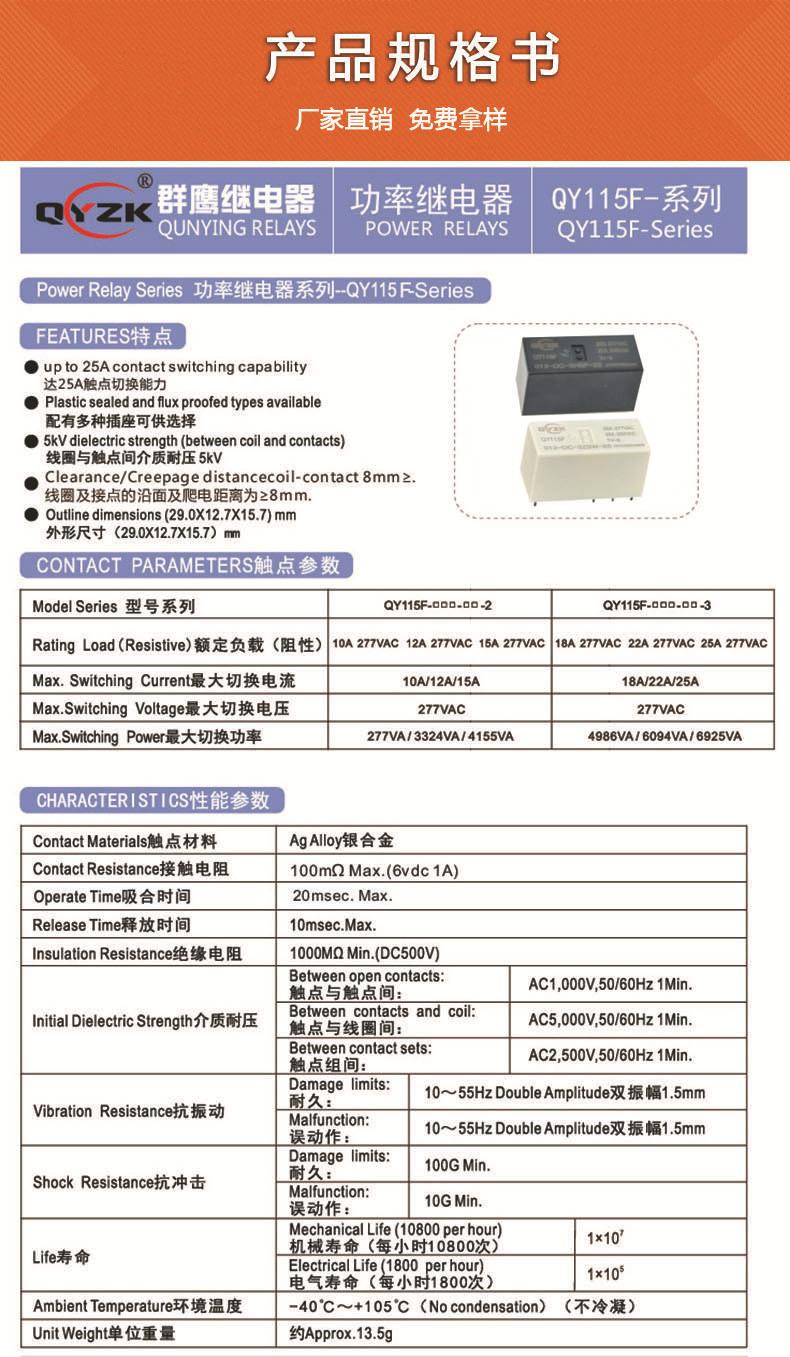 Dongguan Qunying Intelligent Control Electronics Co., Ltd., ubicada en la ciudad de Tangxia, Dongguan, es una empresa que integra investigación y desarrollo, producción y ventas de relés. La empresa cuenta actualmente con más de 120 empleados, 12 líneas de producción automatizadas, 8 máquinas bobinadoras automáticas y 9 conjuntos de plataformas de pruebas experimentales de alta precisión. Su capacidad de producción anual alcanza los 90 millones de relés. La línea de productos de la empresa cubre cuatro categorías principales: relés de señal, relés electromagnéticos, relés automotrices y relés industriales, sumando más de 100 series y 10,000 especificaciones. Los productos se utilizan ampliamente en diversos campos como equipos de comunicación, equipos de energía, electrodomésticos y electrónica automotriz. Desde 2018, los productos de la empresa han obtenido varias certificaciones autorizadas como TÜV, UL y RoHS. La empresa Qunying se adhiere al principio de calidad de "el cliente primero, excelencia" e insiste en la filosofía empresarial de "servir con el corazón, construir una marca". Estamos comprometidos con la construcción de marca, mejorando el conocimiento y la reputación, y nos esforzamos por convertirnos en una marca reconocida en la industria de relés de China.