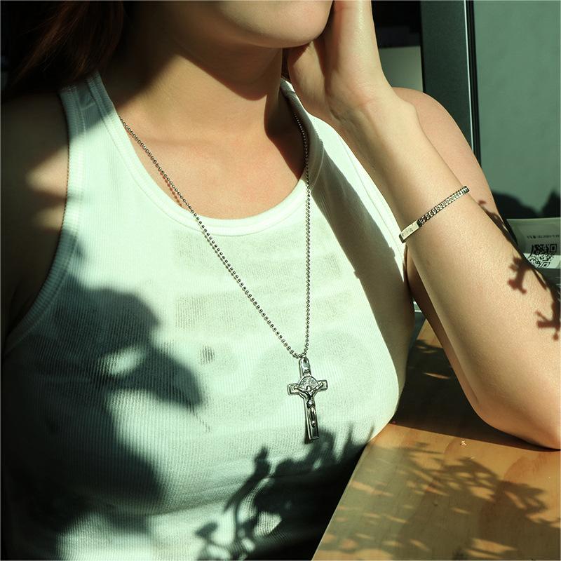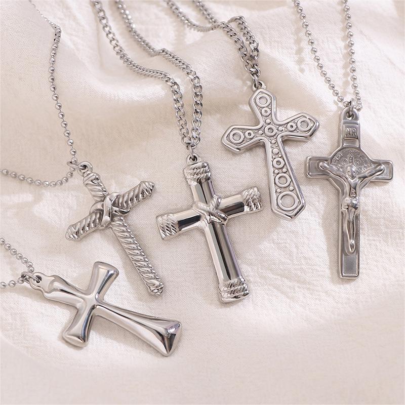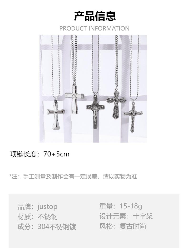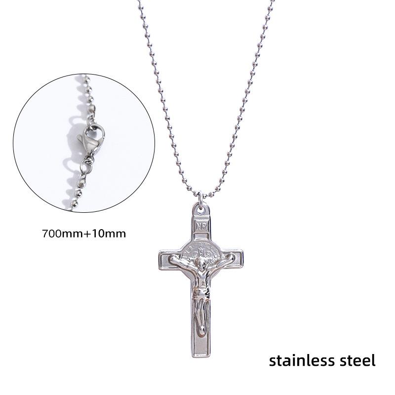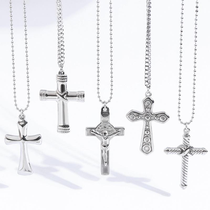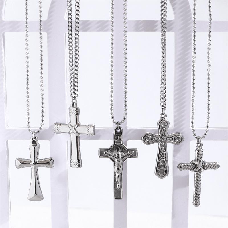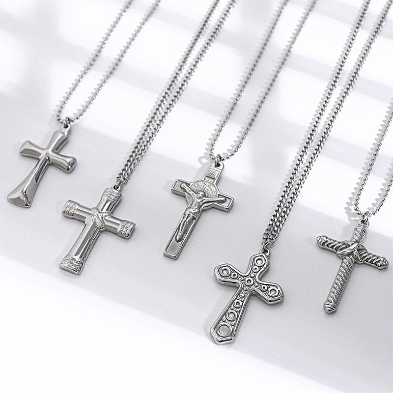 Collar de Cruz de Acero Inoxidable de Moda Retro de Venta Caliente Transfronterizo, Cadena Larga de Suéter de Acero al Titanio para Hombre Trendy Europeo y Americano
