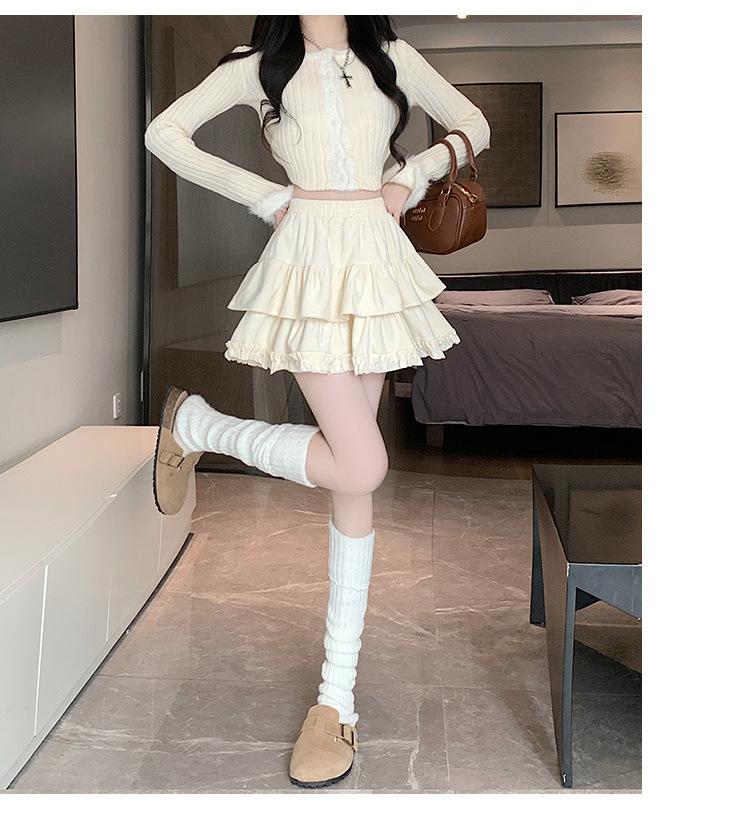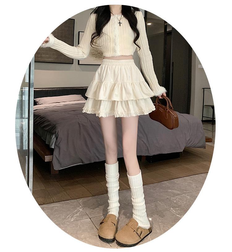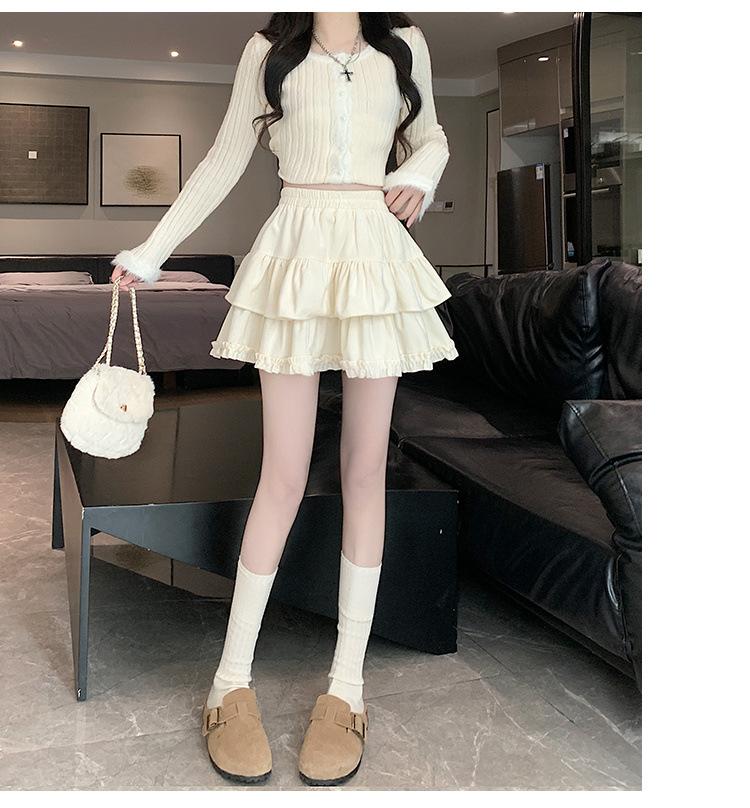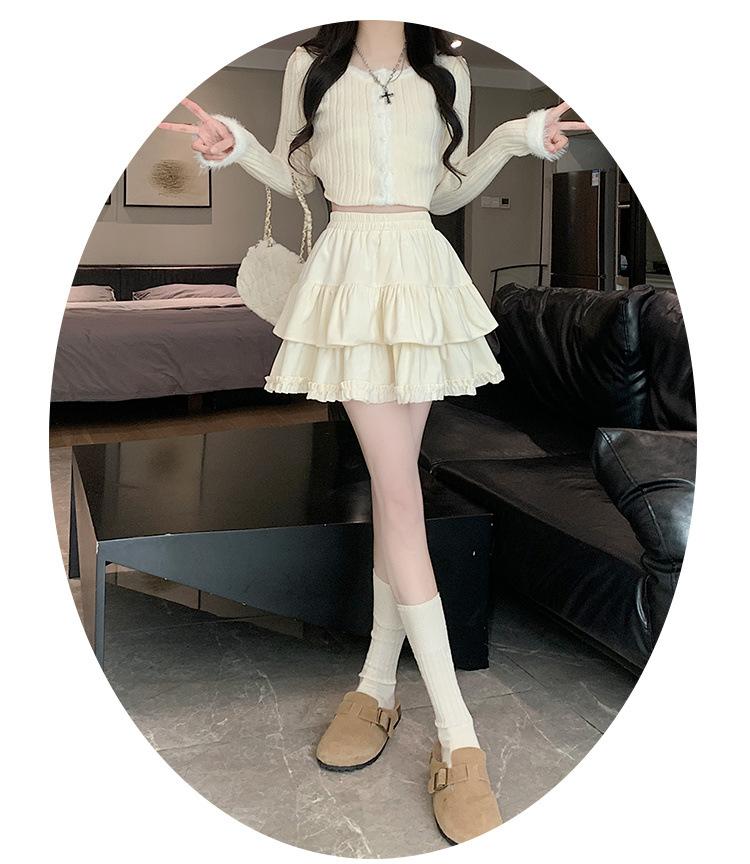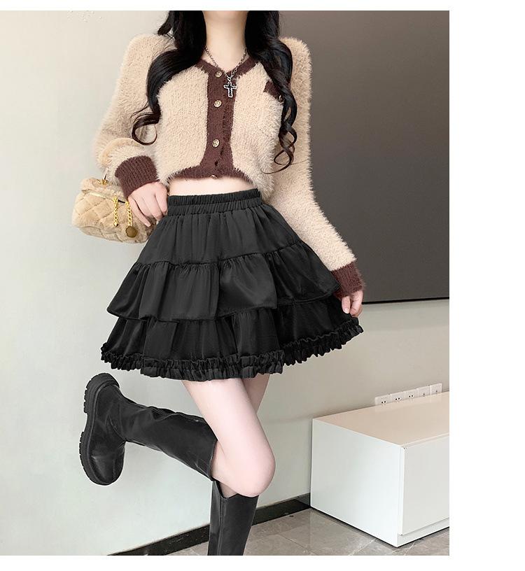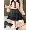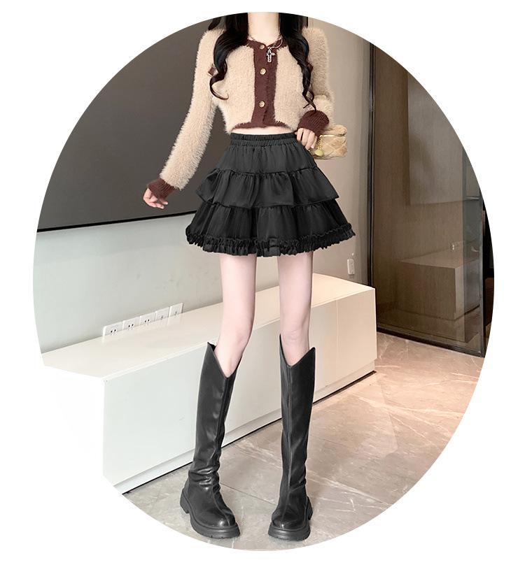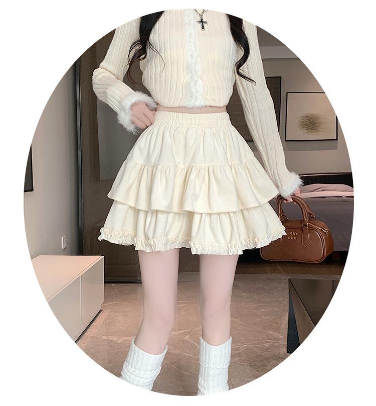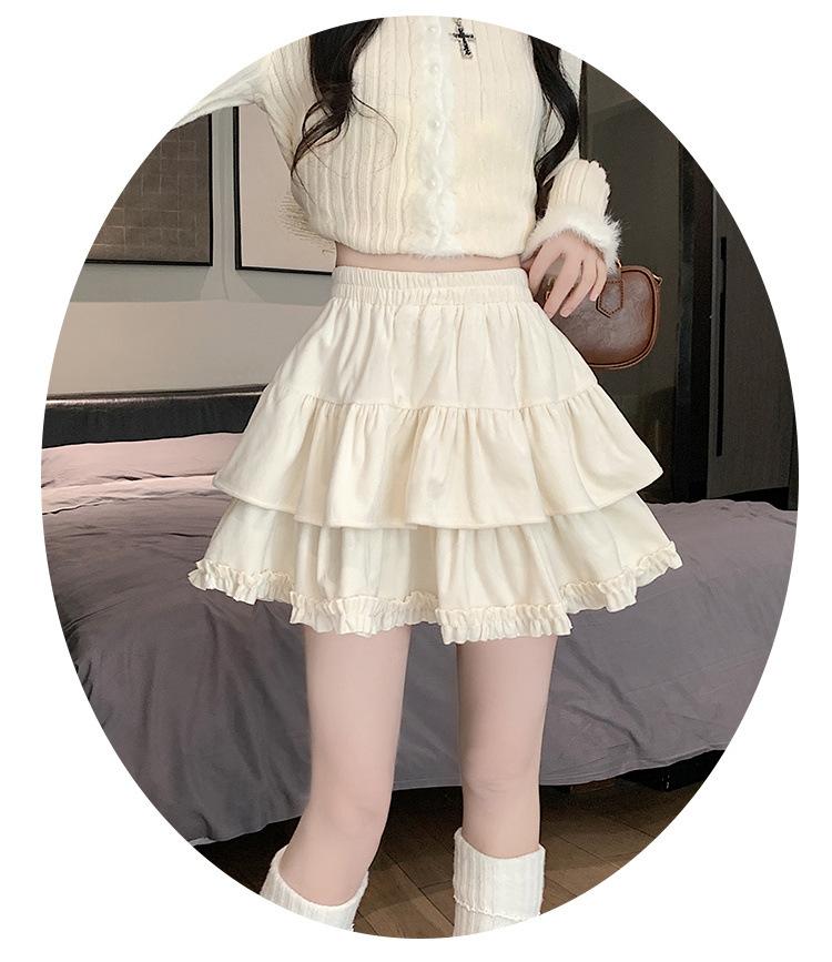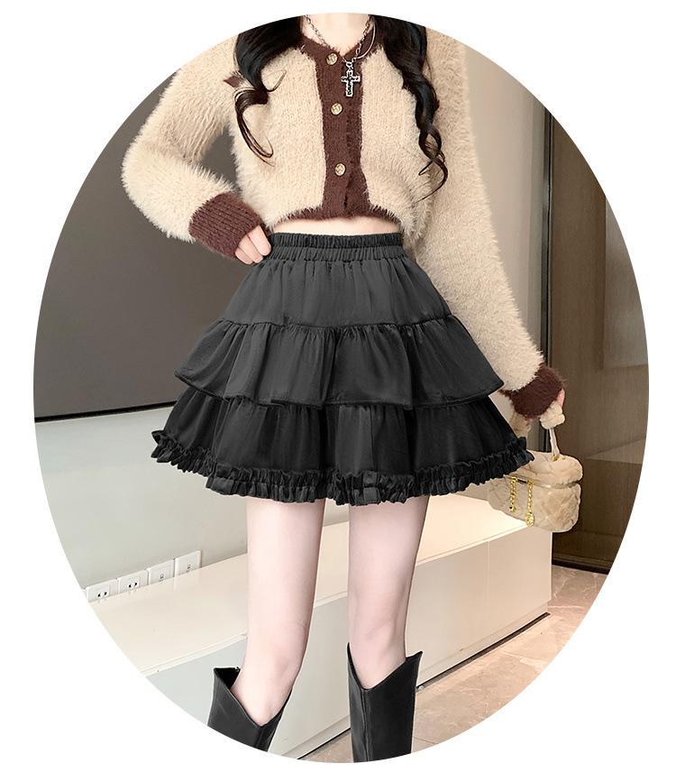 Falda Abullonada para Mujer Primavera Pequeña Cintura Alta Adelgazante con Volantes Falda Pastel Falda Corta Antitransparente Falda Línea A