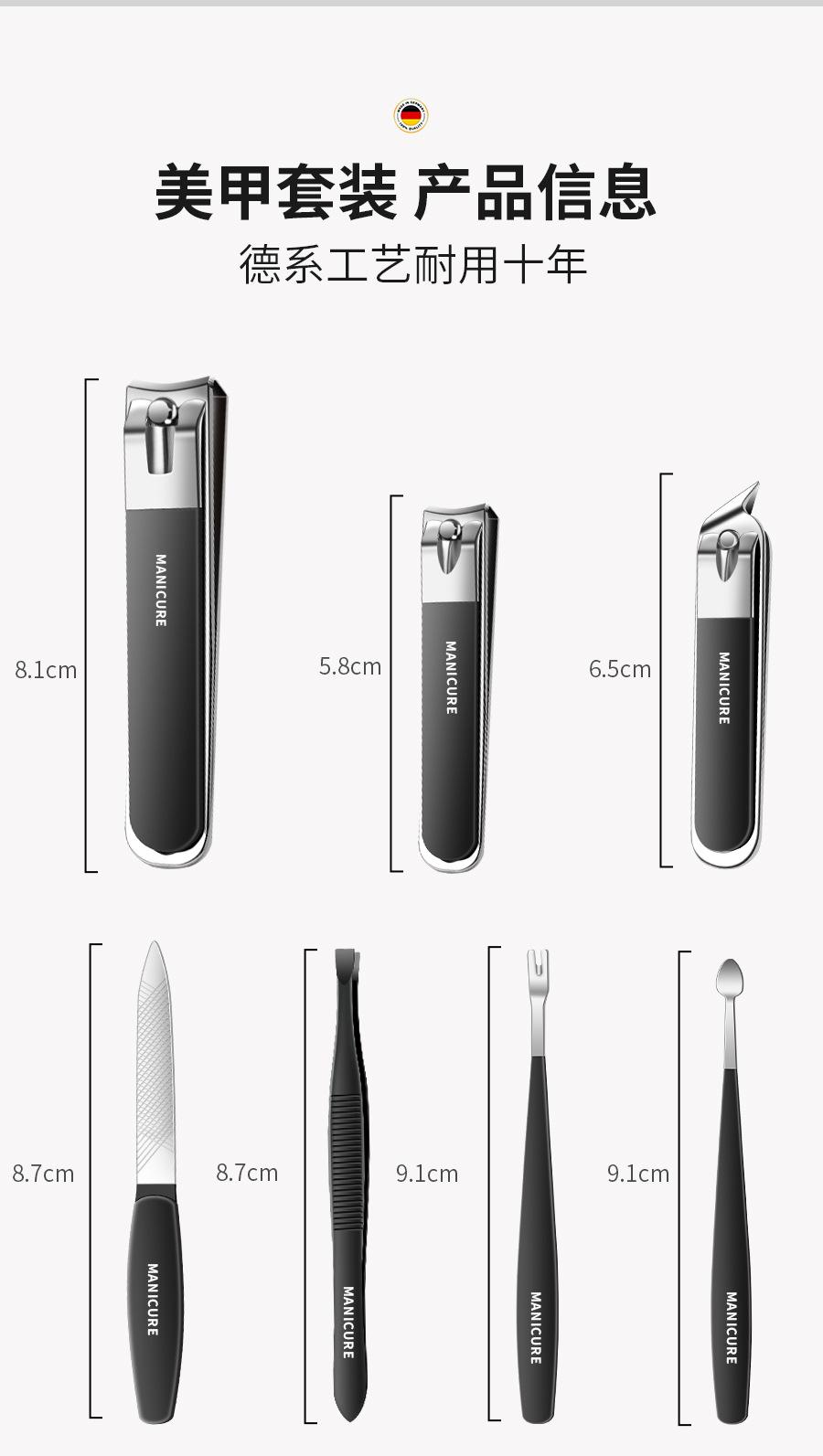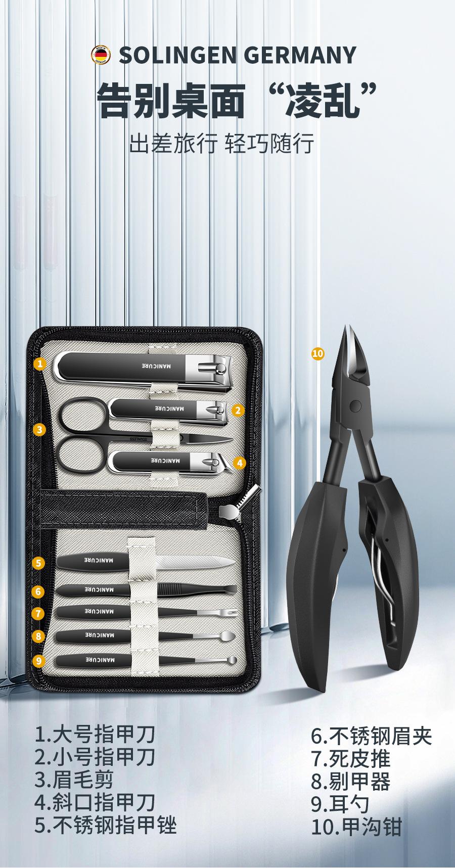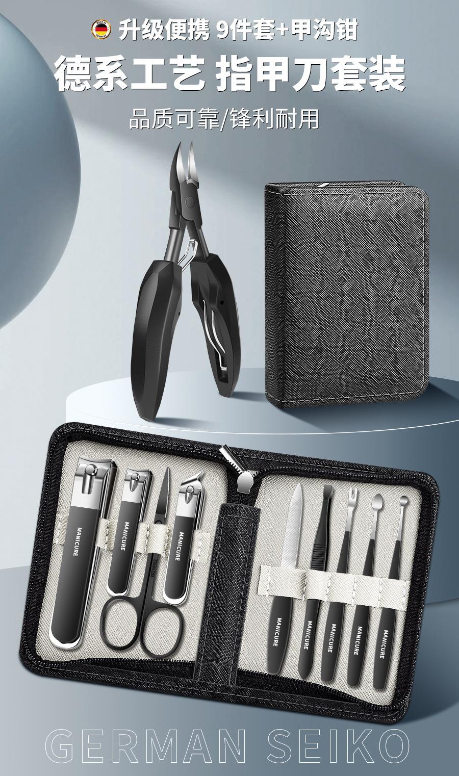 Set de Cortauñas de Acero Inoxidable Negro de 9 Piezas Herramientas de Manicura y Belleza Set Completo de Cuchillo para Pedicura y Cortauñas Venta al por Mayor