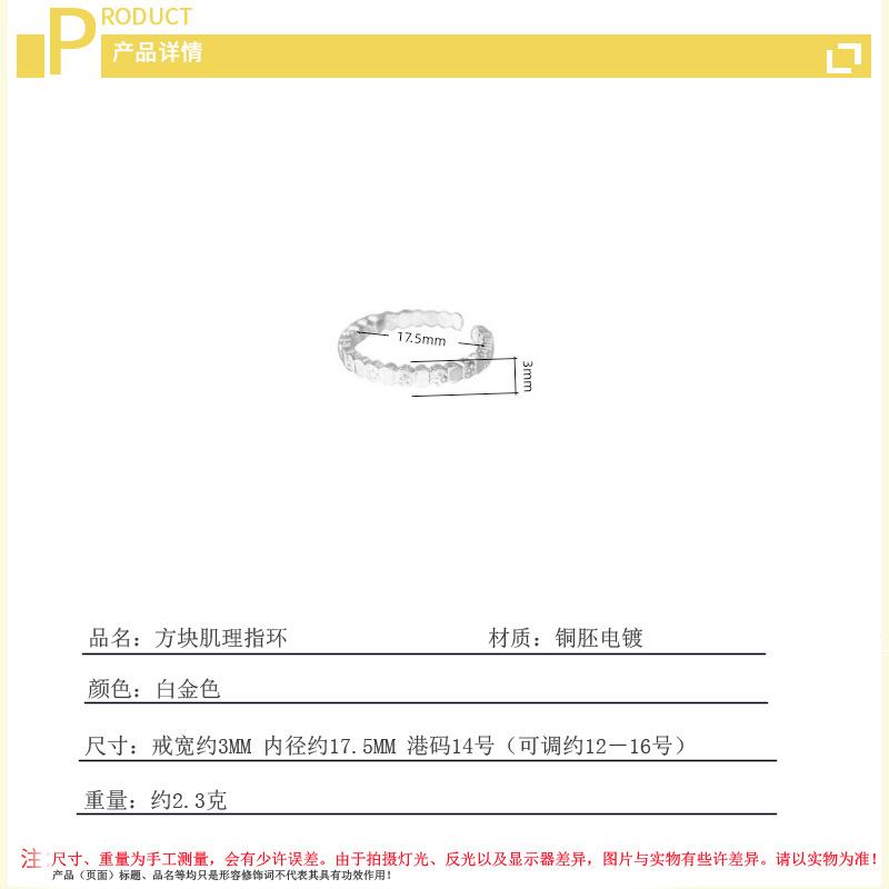 Patrón de Textura Anillo Cuadrado Diseño Nicho Ins Geométrico Irregular Anillo Principal Anillo Abierto Combinable Joyería Elegante