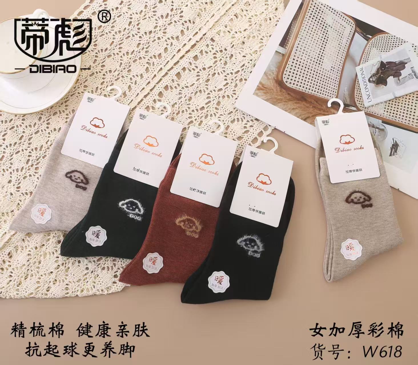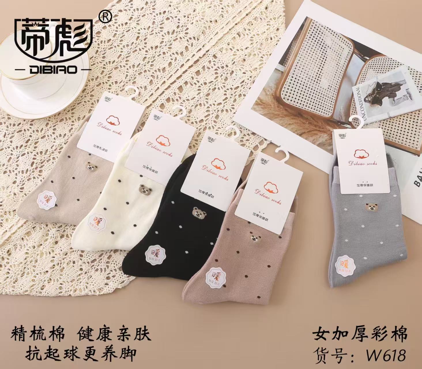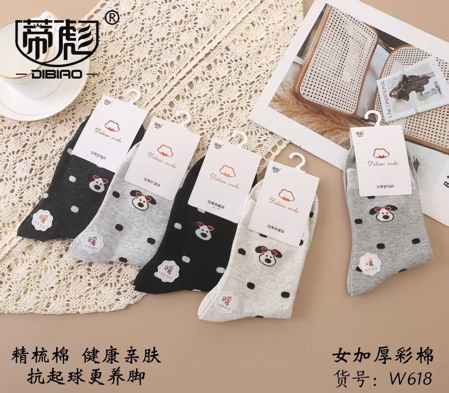 Calcetines de Algodón de Color para Mujer de Otoño e Invierno, Calcetines de Algodón hasta la Media Pantorrilla, Casuales, Gruesos, Cálidos, Calcetines de Cintura Media-Alta para Mujer, Calcetines de Mujer con Lunares de Dibujos Animados