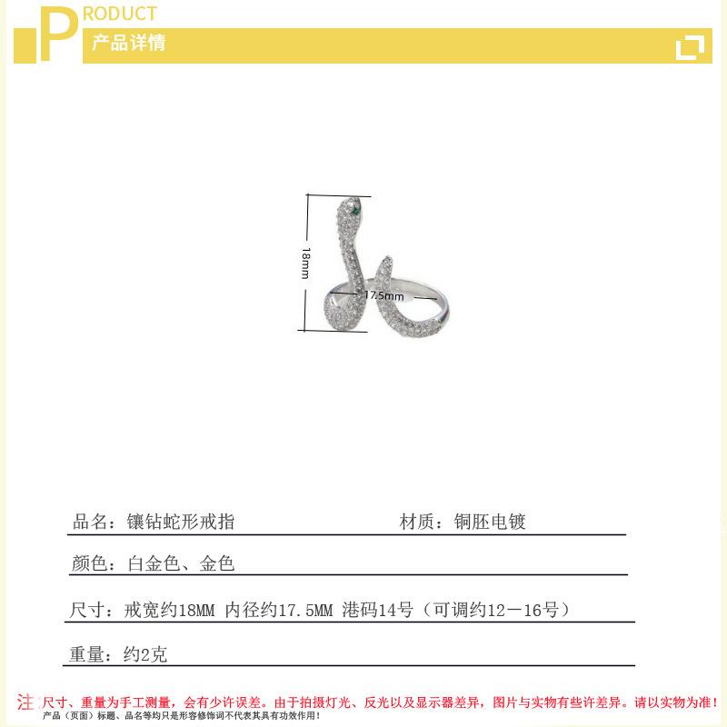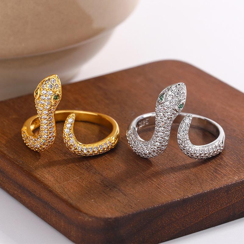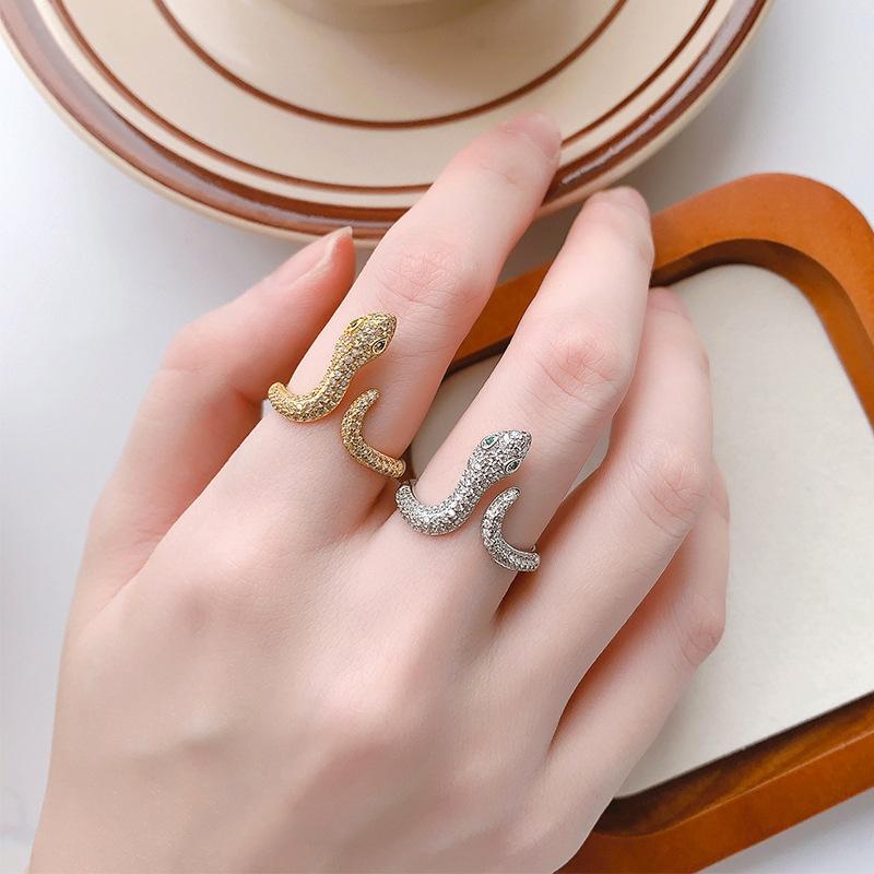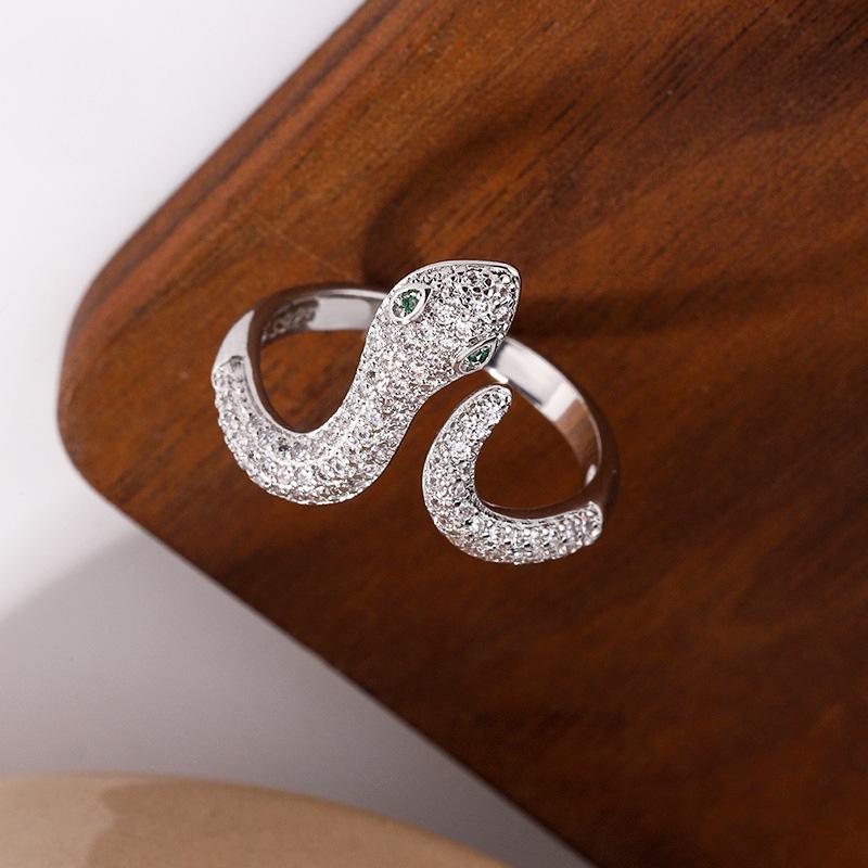 Anillo de Mujer de Lujo Ligero Exquisito Nuevo Anillo Abierto con Forma de Serpiente Incrustado de Diamantes Diseño de Celebridad Cibernética Ins para Mujer Circonio Completo Super Brillante Anillo de Comida