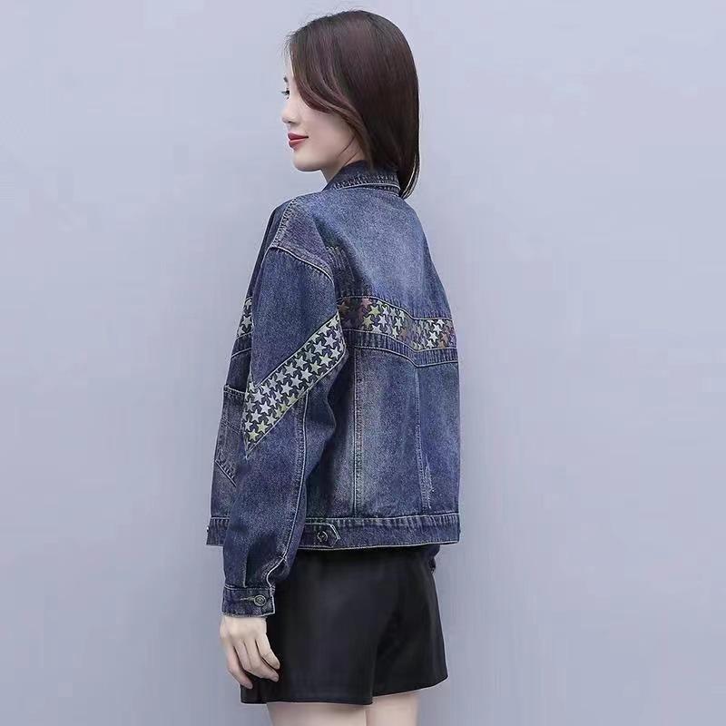 Chaqueta de mezclilla de talla grande para mujer Primavera Otoño Nueva Moda Estilo Coreano Suelta Estilo Hong Kong Patchwork Versátil Abrigo de mezclilla Azul Europeo y Americano