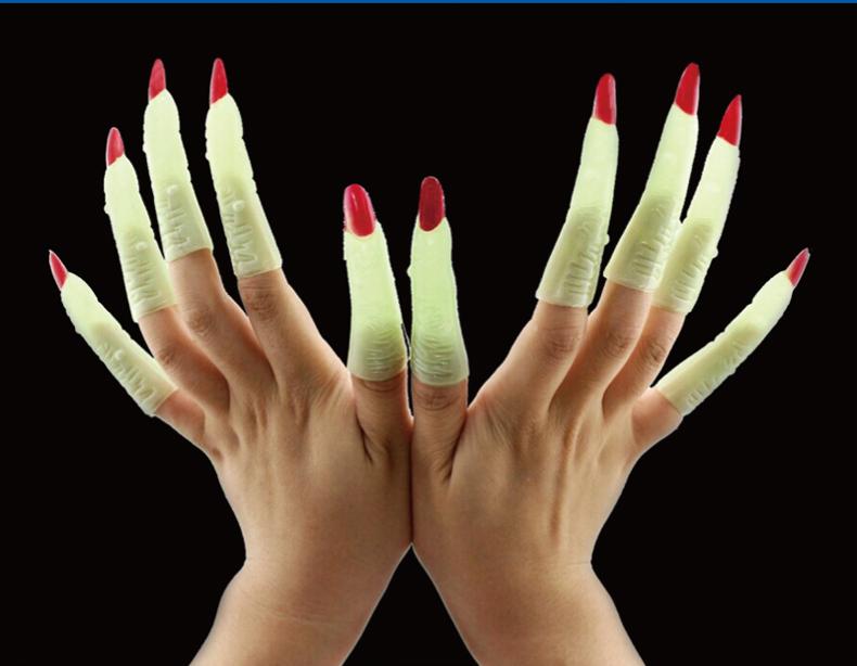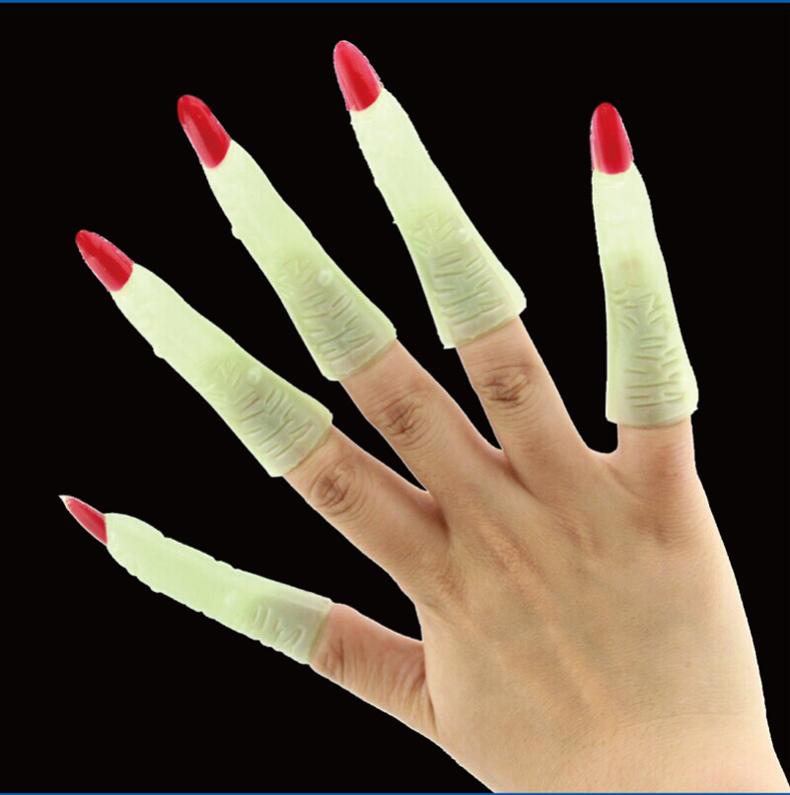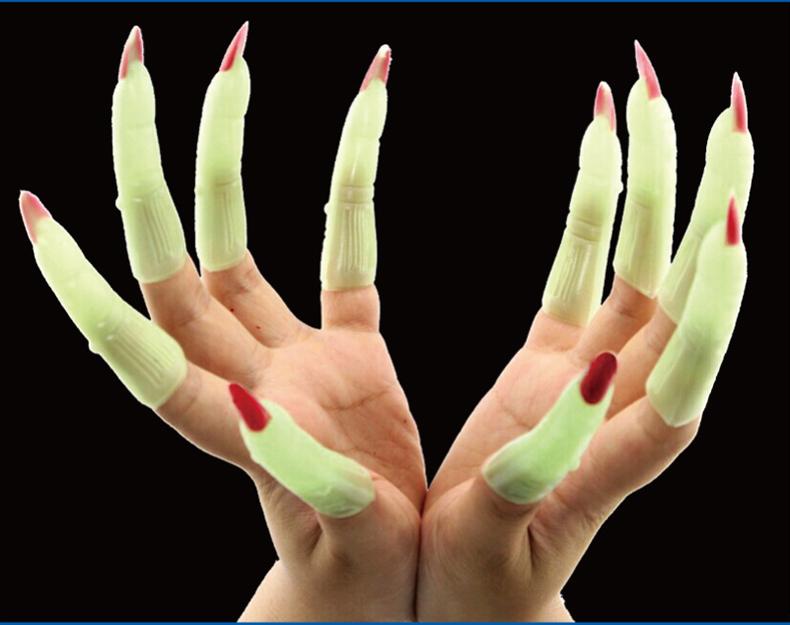Suministros para Fiesta de Disfraces de Halloween Mangas para Dedos de Bruja Zombie Uñas de Bruja Accesorios Cubiertas de Uñas Falsas Uñas Luminosas