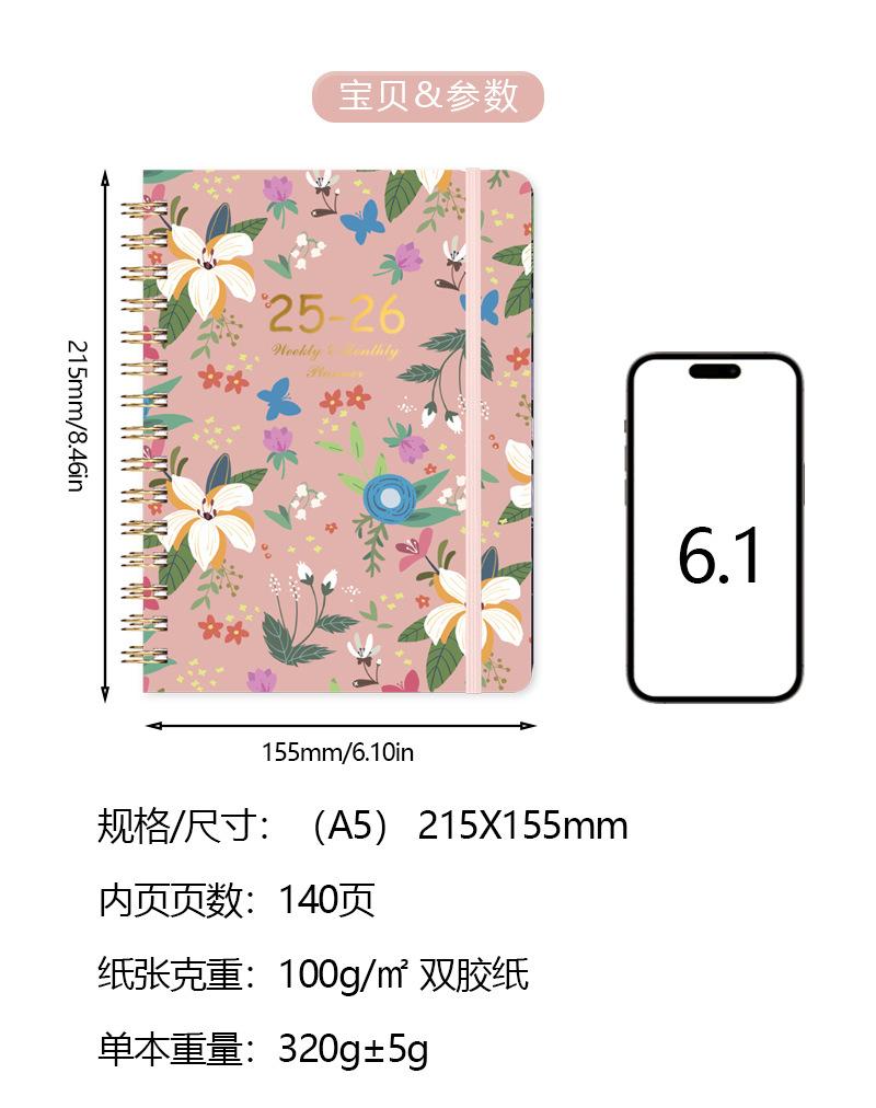 Agenda Planificador 2025 Transfronterizo Libro de Tarjetas Perforadas Cuaderno A5 Planificador Semanal Encuadernación de Bobina Cuaderno