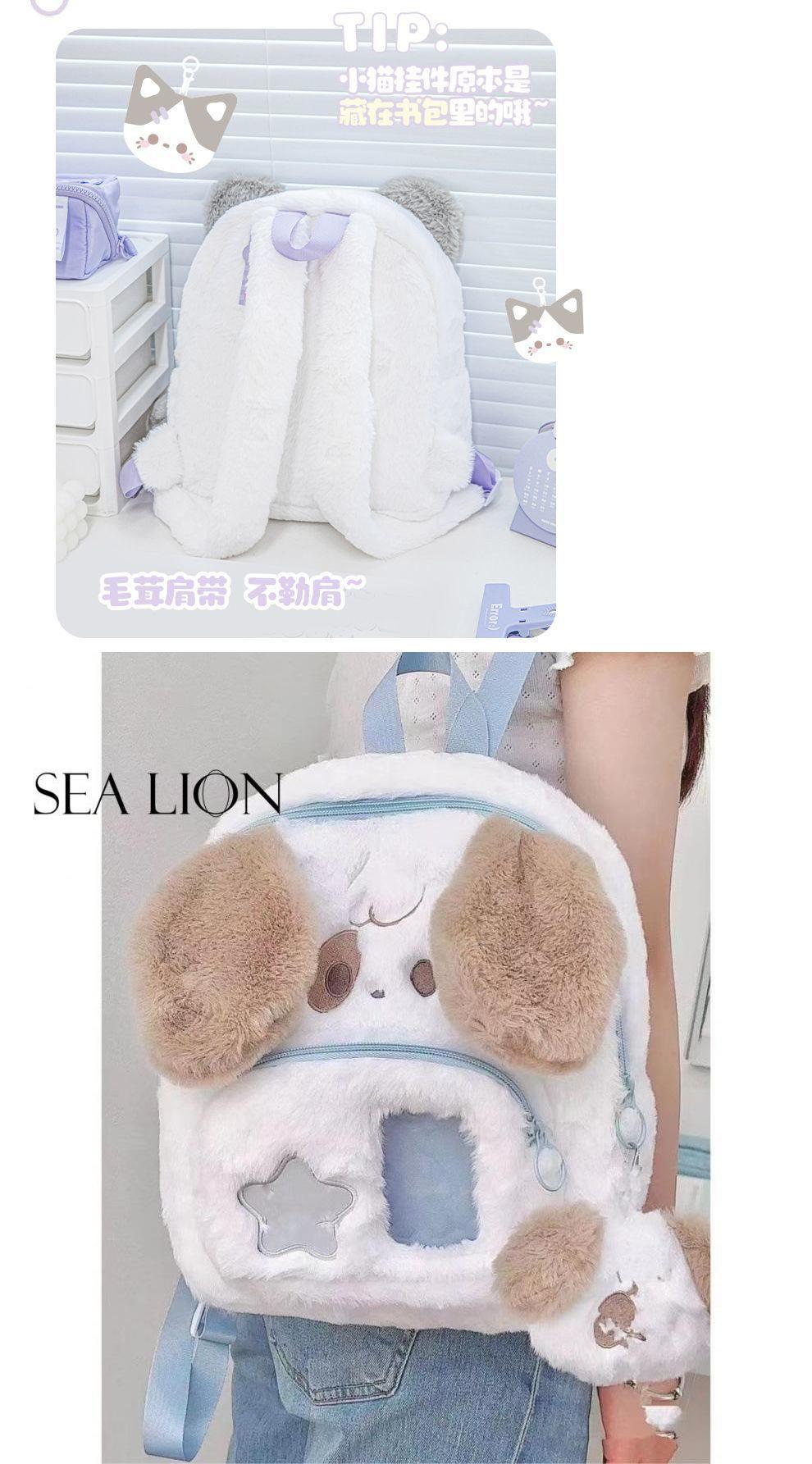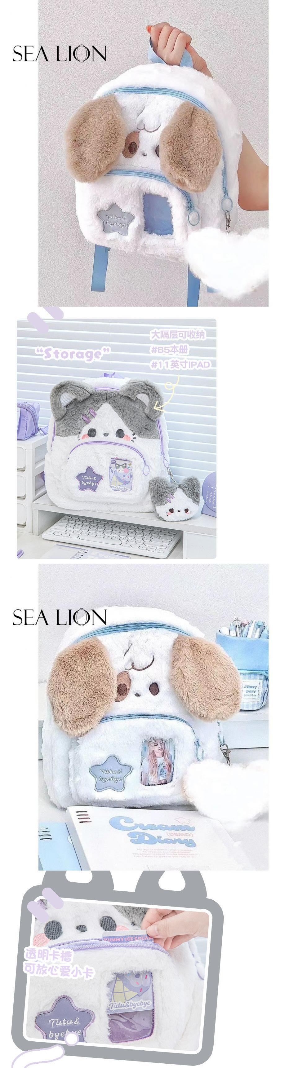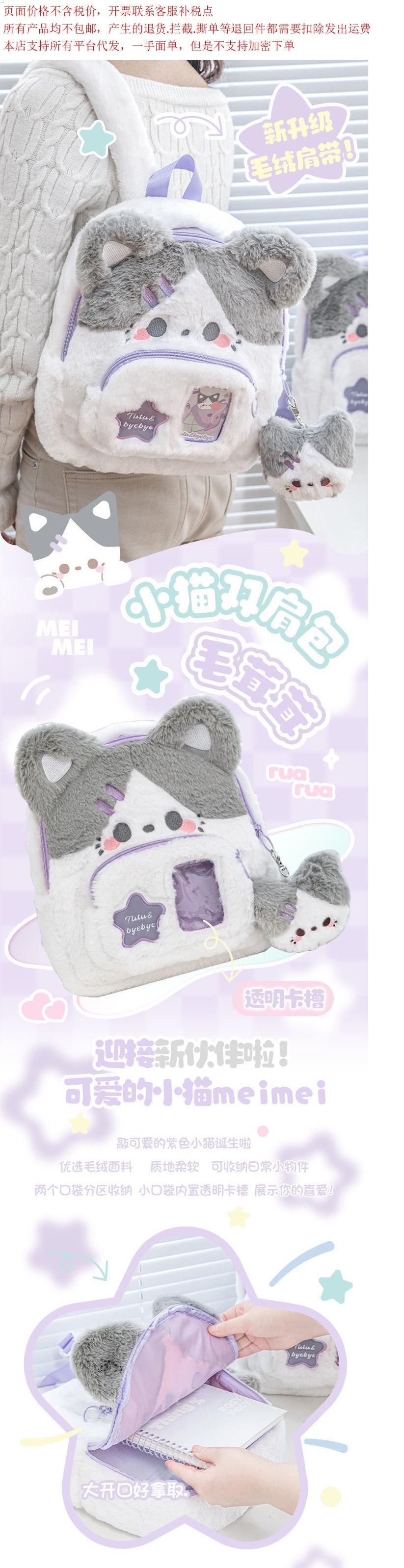 Mochila Suave para Niñas, Gran Capacidad, Linda Mochila Escolar de Peluche de Gato Morado, Nueva Mochila Pequeña de Dibujos Animados