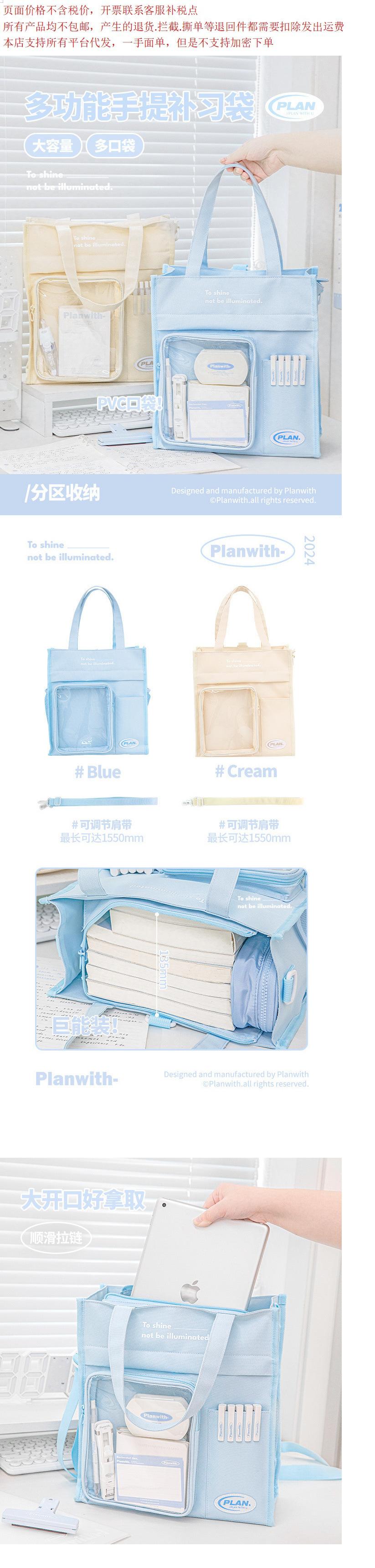 Blue-blue, Beige-cream, Blue tutoring bag + stationery set, Beige tutoring bag + stationery set