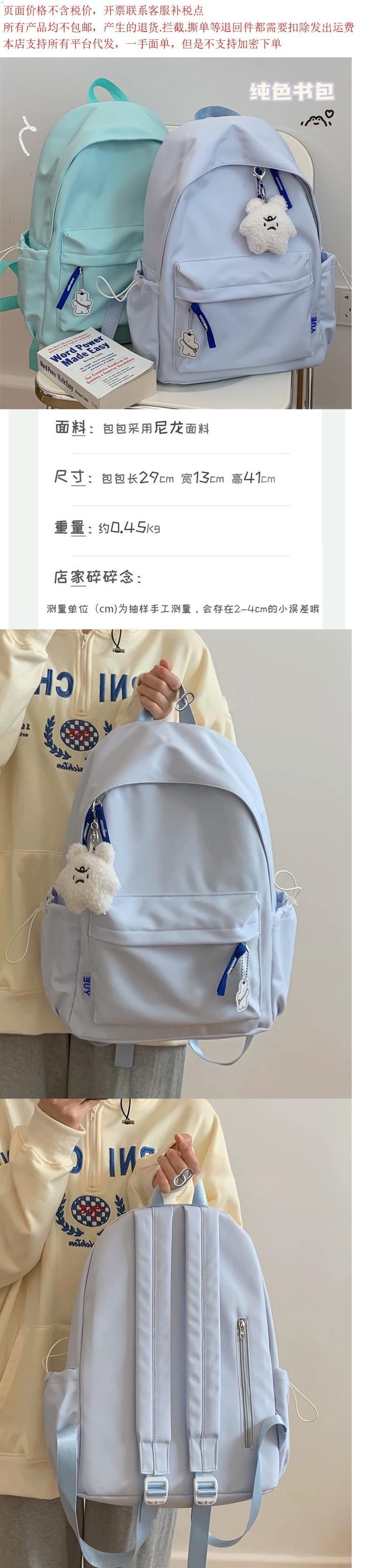 Estilo Ins Estilo Japonés Mochila de Niña Suave Estilo K Color Puro Versátil Mochila de Niña Estudiante de Secundaria Estudiante de Preparatoria Mochila