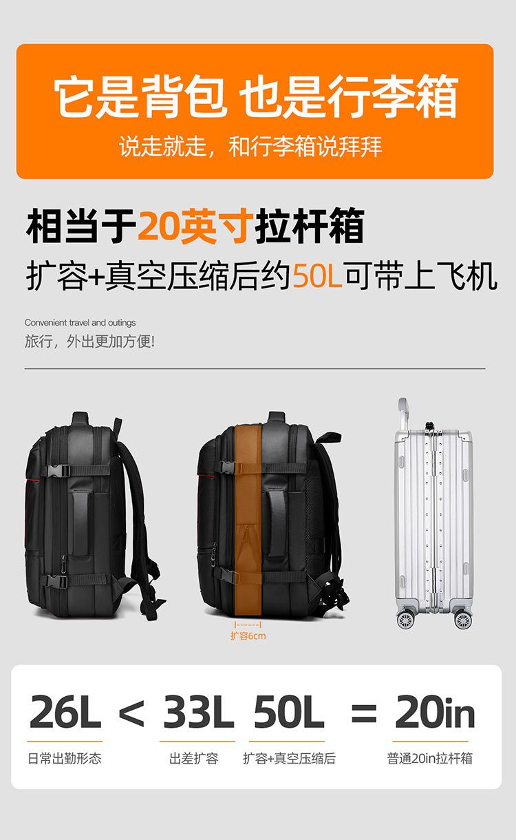 Mochila para Hombre Mochila para Viaje de Negocios Gran Capacidad Expansión Multifuncional Compresión al Vacío Mochila de Viaje para Hombre