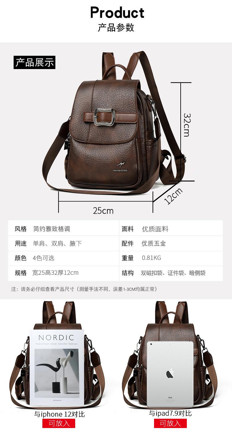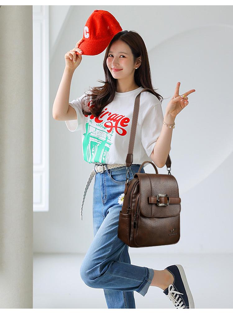 Mochila para Mujer Versátil Gran Capacidad Viaje Bolsa de Mamá Bolso de Cuero Suave Mochila Simple Mochila Diaria Diseño de Bolso