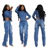 Suministro Transfronterizo Nuevo Traje Casual de Mezclilla Lavada para Mujer Europeo y Americano