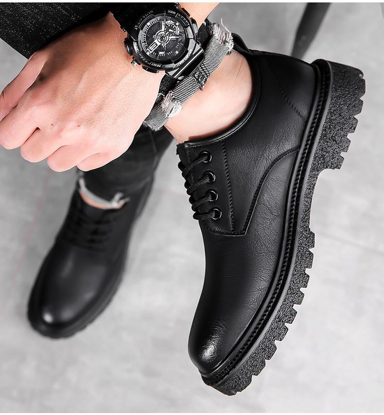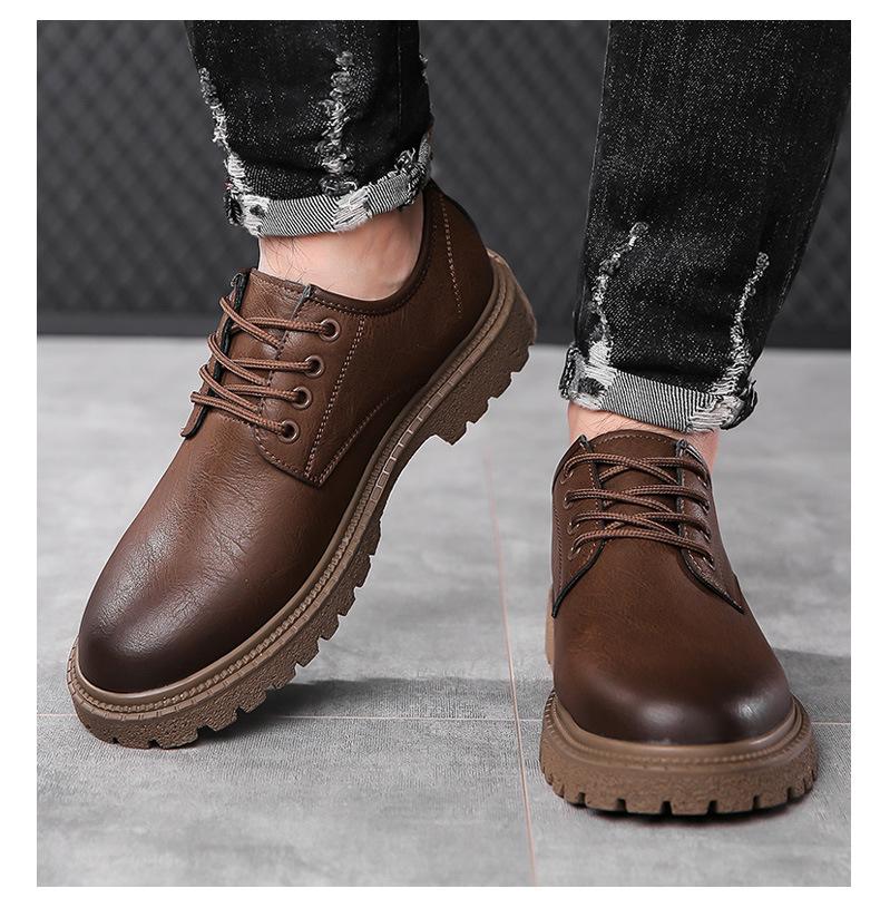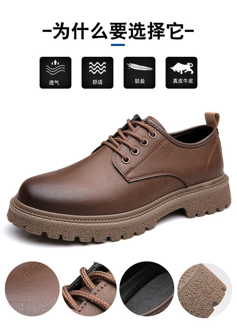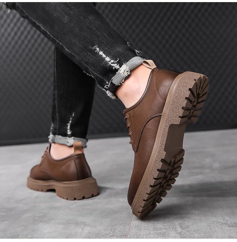 Moda Alta Calidad Cuero Genuino Suela Gruesa Ropa de Trabajo Dedo Gordo Zapatos Casuales de Cuero para Hombre Versátiles Zapatos Casuales de Hombre Zapatos de Cuero