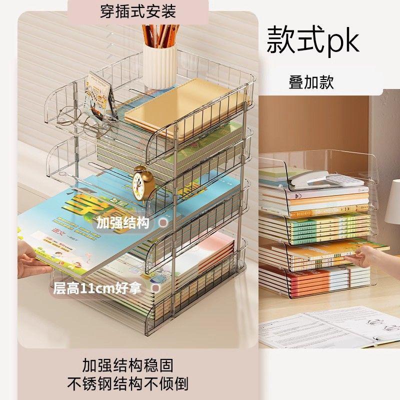 Estante de almacenamiento de archivos de escritorio transparente, estantería, estante para libros, escritorio, acrílico de oficina, caja de almacenamiento de papel A4