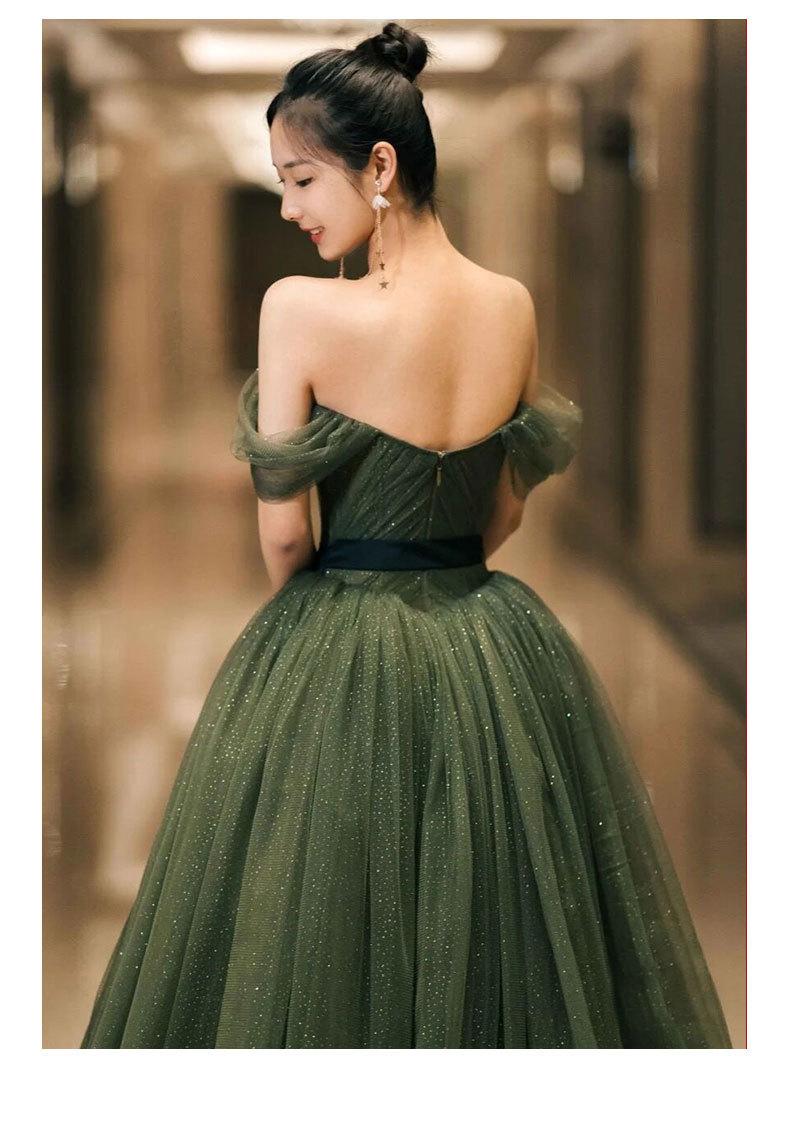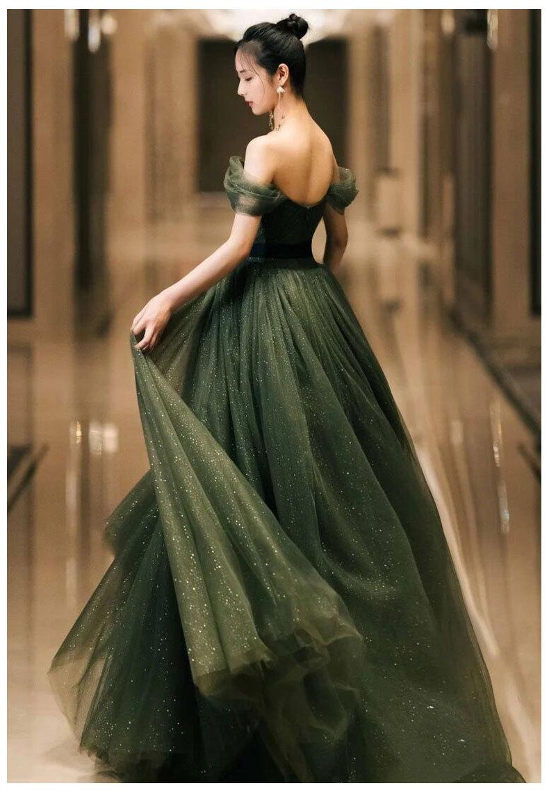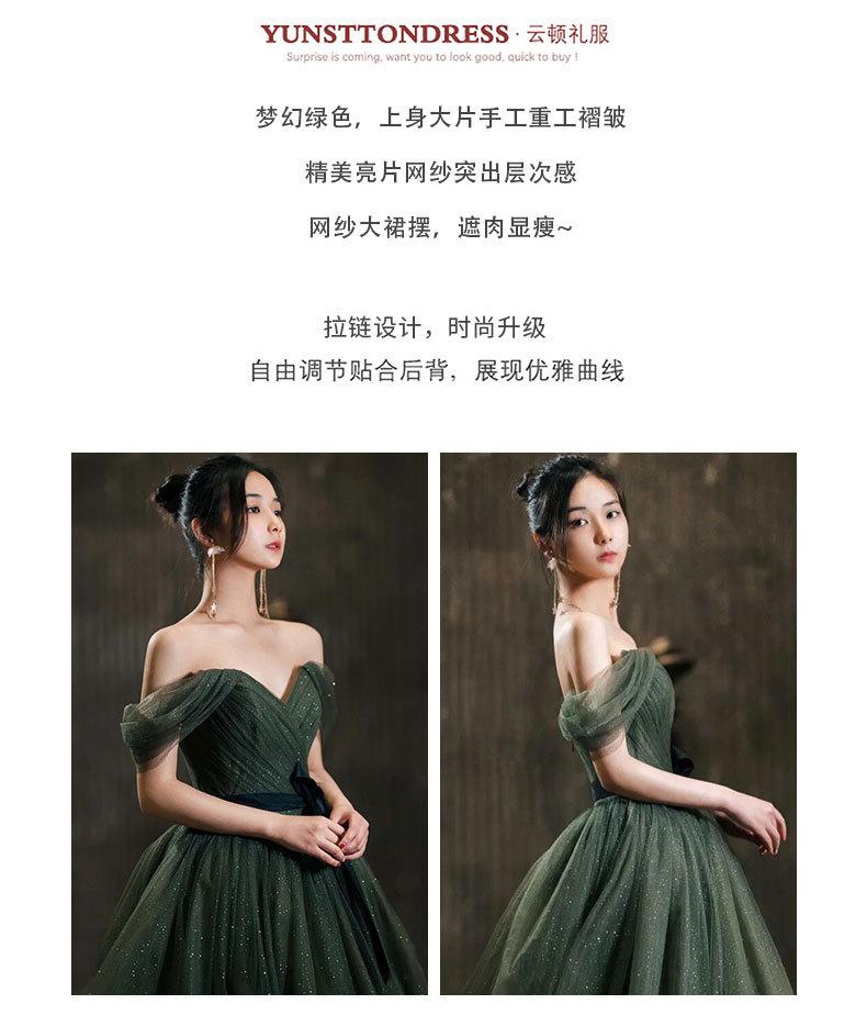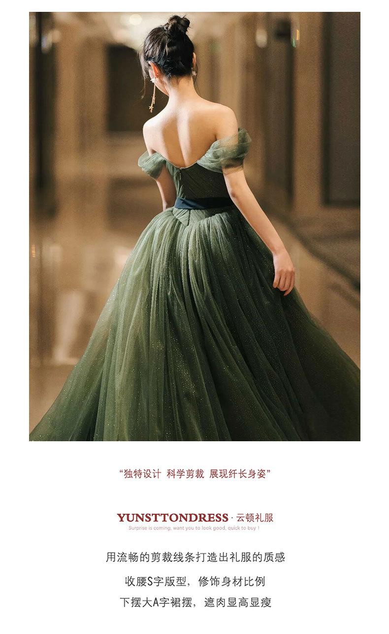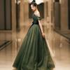 Vestido de Noche de Banquete 2025 Otoño Nuevo Estilo Verde Hombros Descubiertos Como de Hada Ajustado Elegante Vestido de Anfitriona