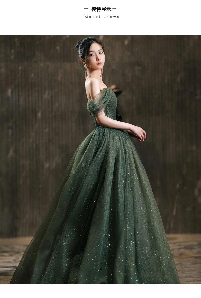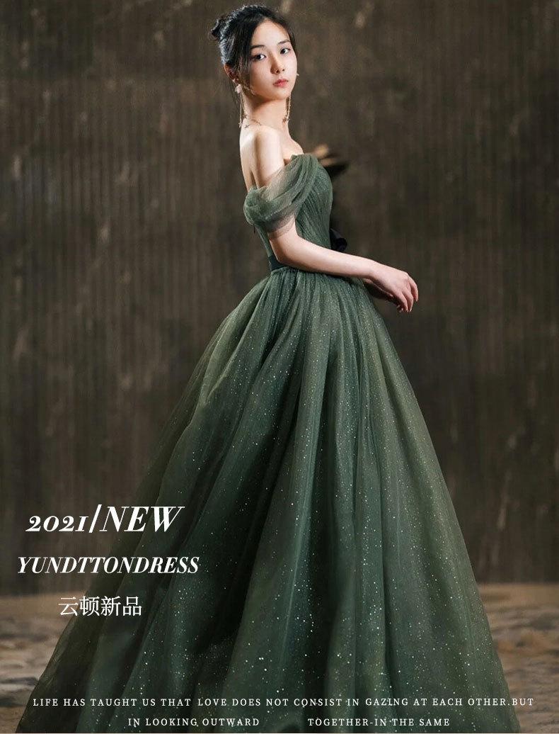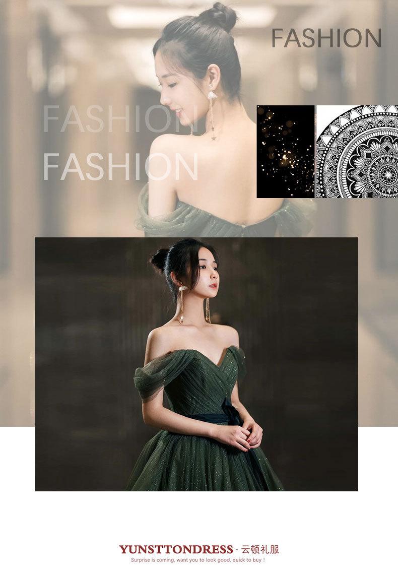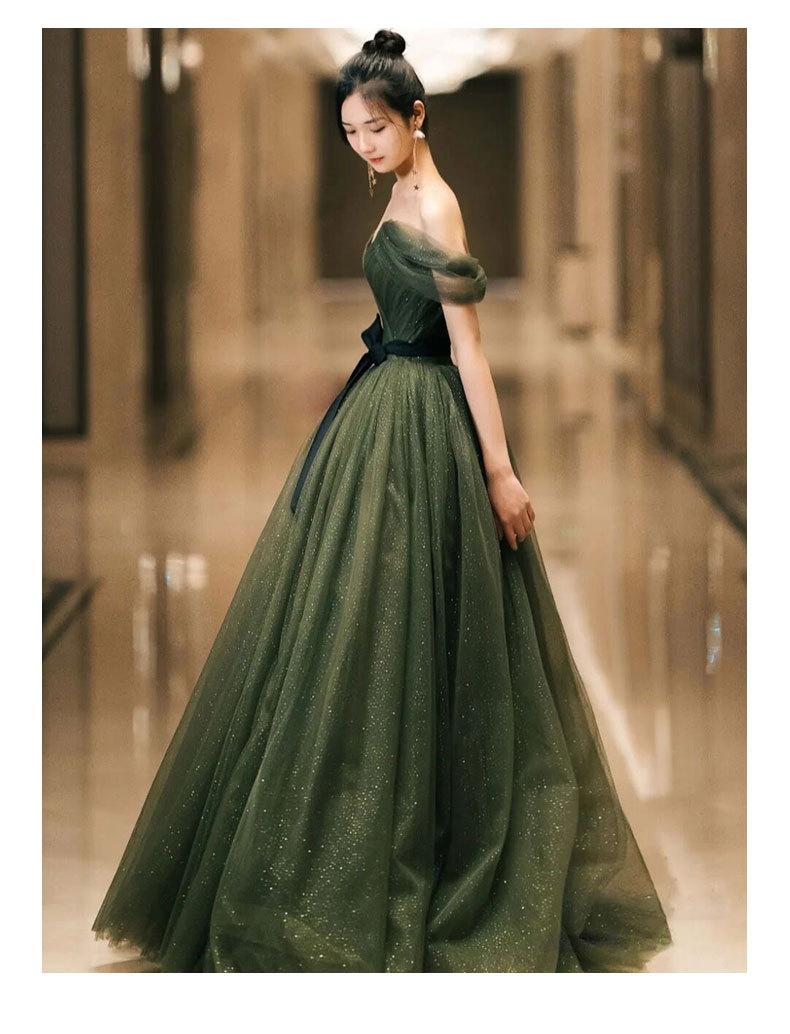 Vestido de Noche de Banquete 2025 Otoño Nuevo Estilo Verde Hombros Descubiertos Como de Hada Ajustado Elegante Vestido de Anfitriona