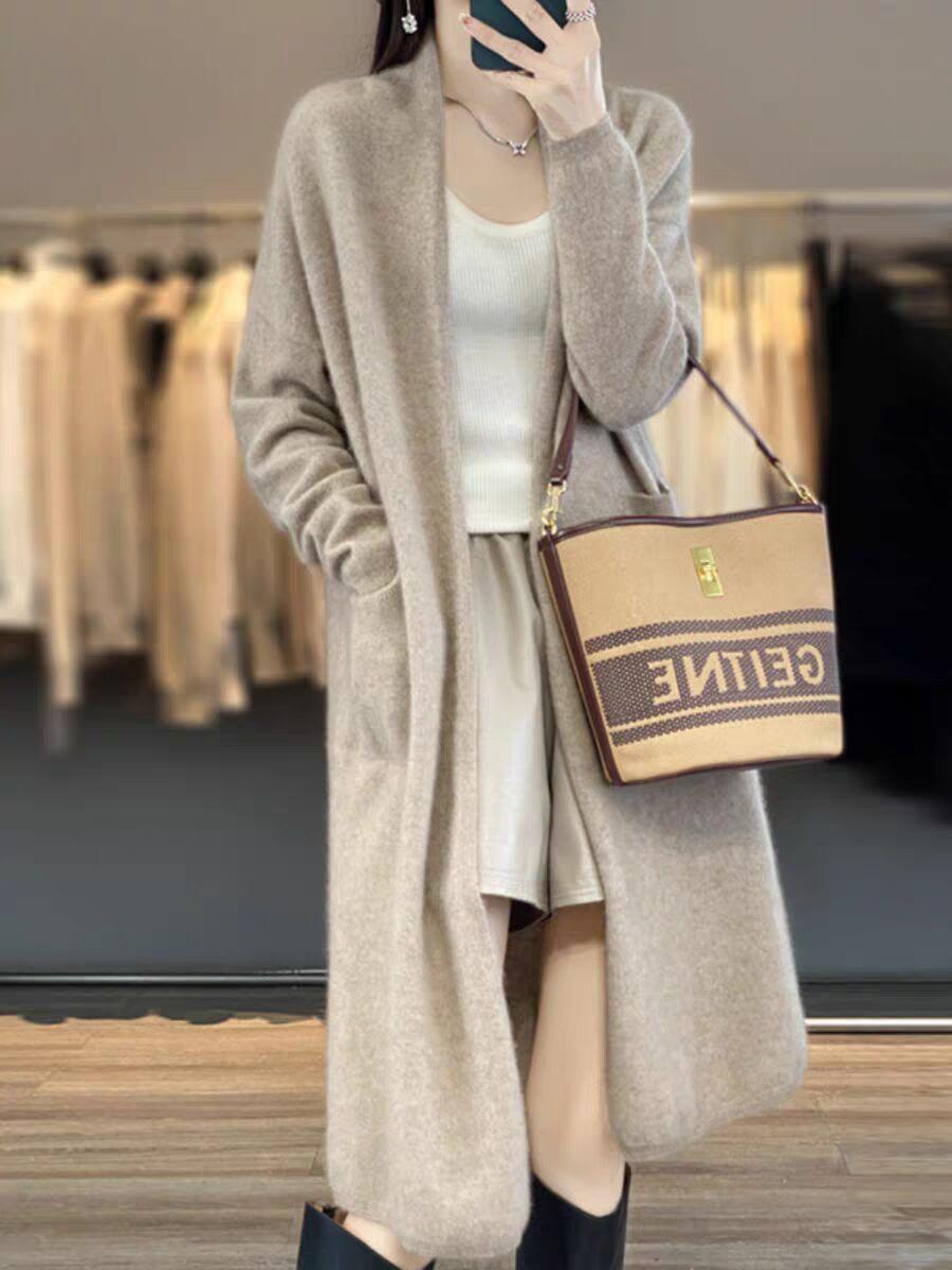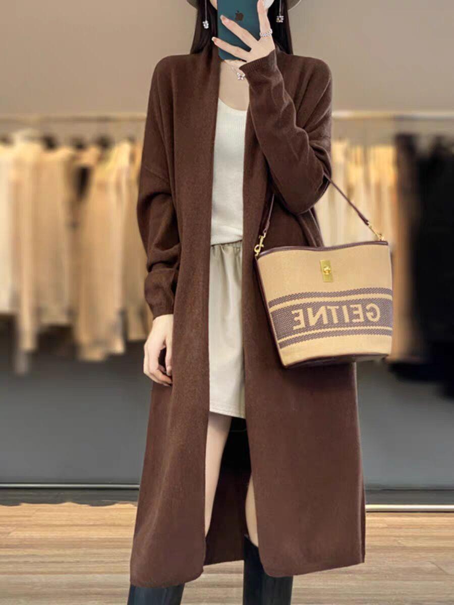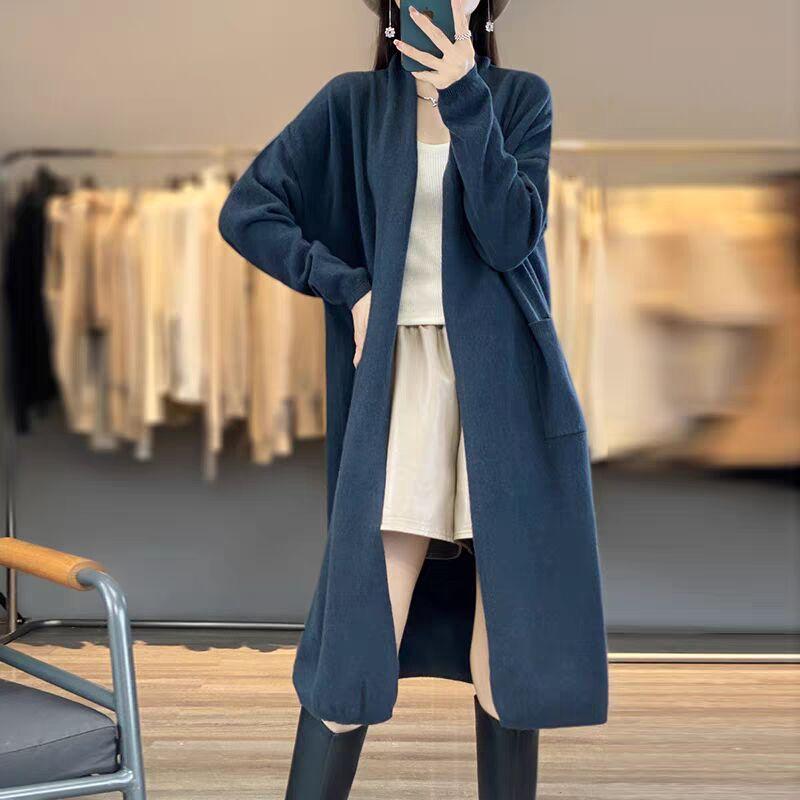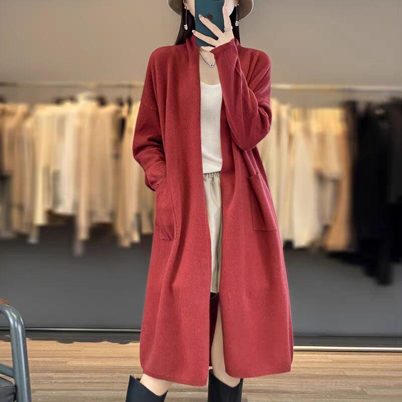 Cárdigan Japonés y Coreano de Largo Medio para Mujer Color Sólido Estilo Holgado Lazy Ropa Exterior 2025 Nuevo Abrigo de Punto Más Vendido