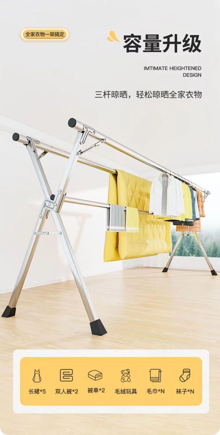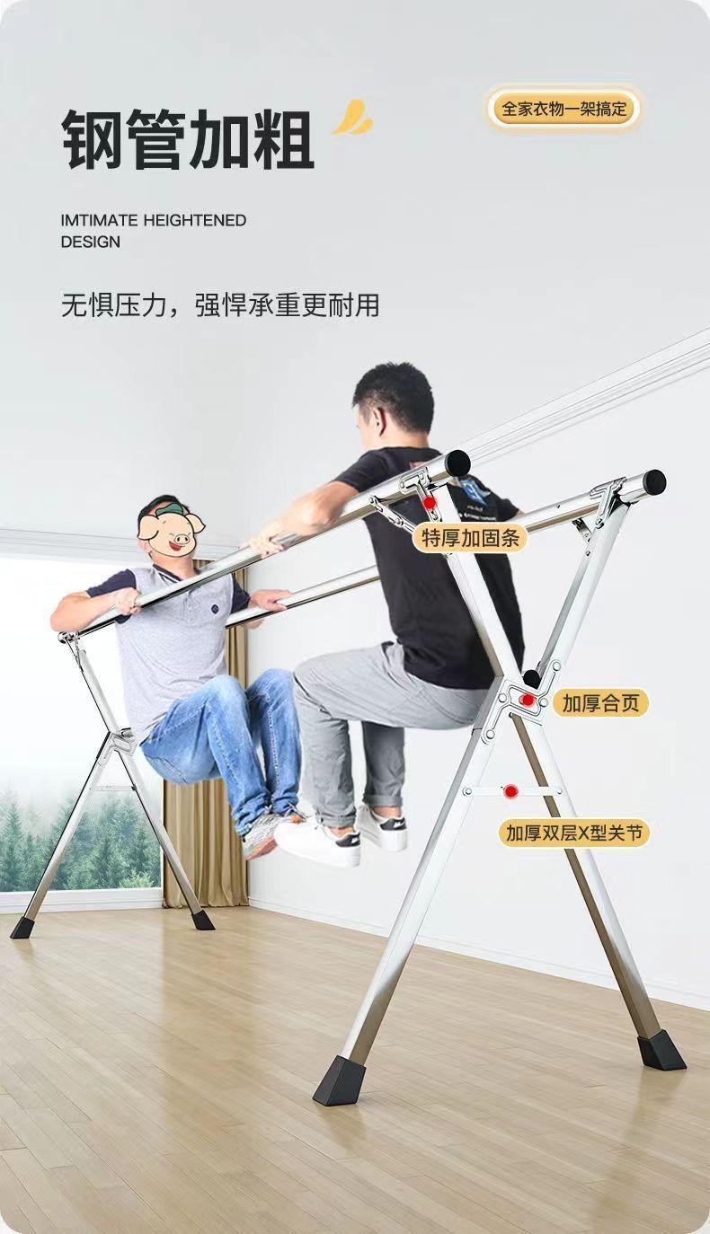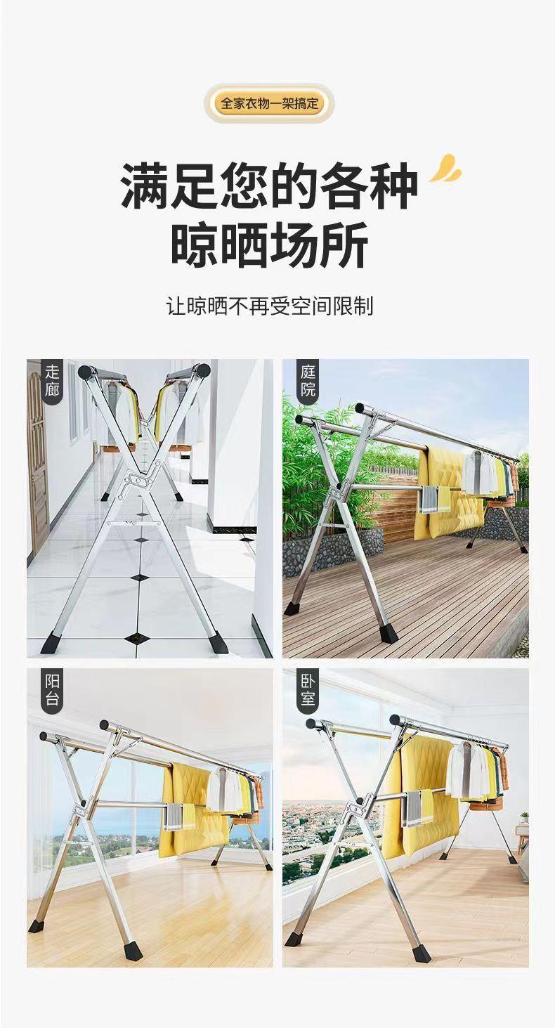 Tendedero de Ropa Engrosado de Piso Plegable para Balcón Doméstico de Interior Retráctil de Acero Inoxidable Tendedero de Ropa