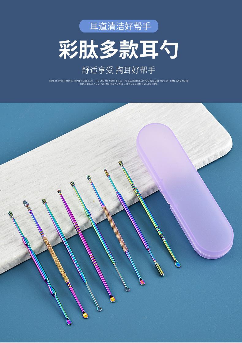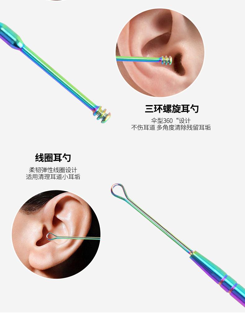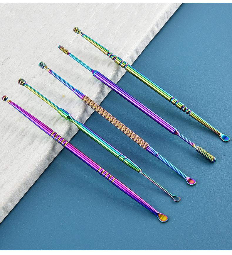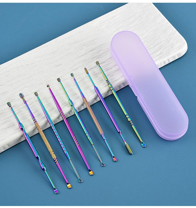 Set de Limpiapiedras de Oído de Color con Cuchara para Remover Cera de Oído para Bebés y Niños con Luz, Pinzas, Herramienta Espiral para Limpieza de Oídos