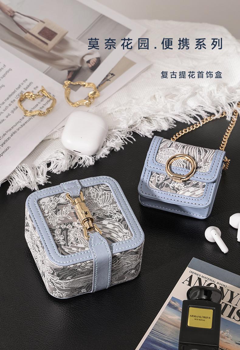 Caja de Joyería Portátil de Alta Gama Vintage Exquisita Collar Anillo Aretes de Botón Caja de Almacenamiento de Joyería Pequeña de Alta Calidad Regalo de Vacaciones