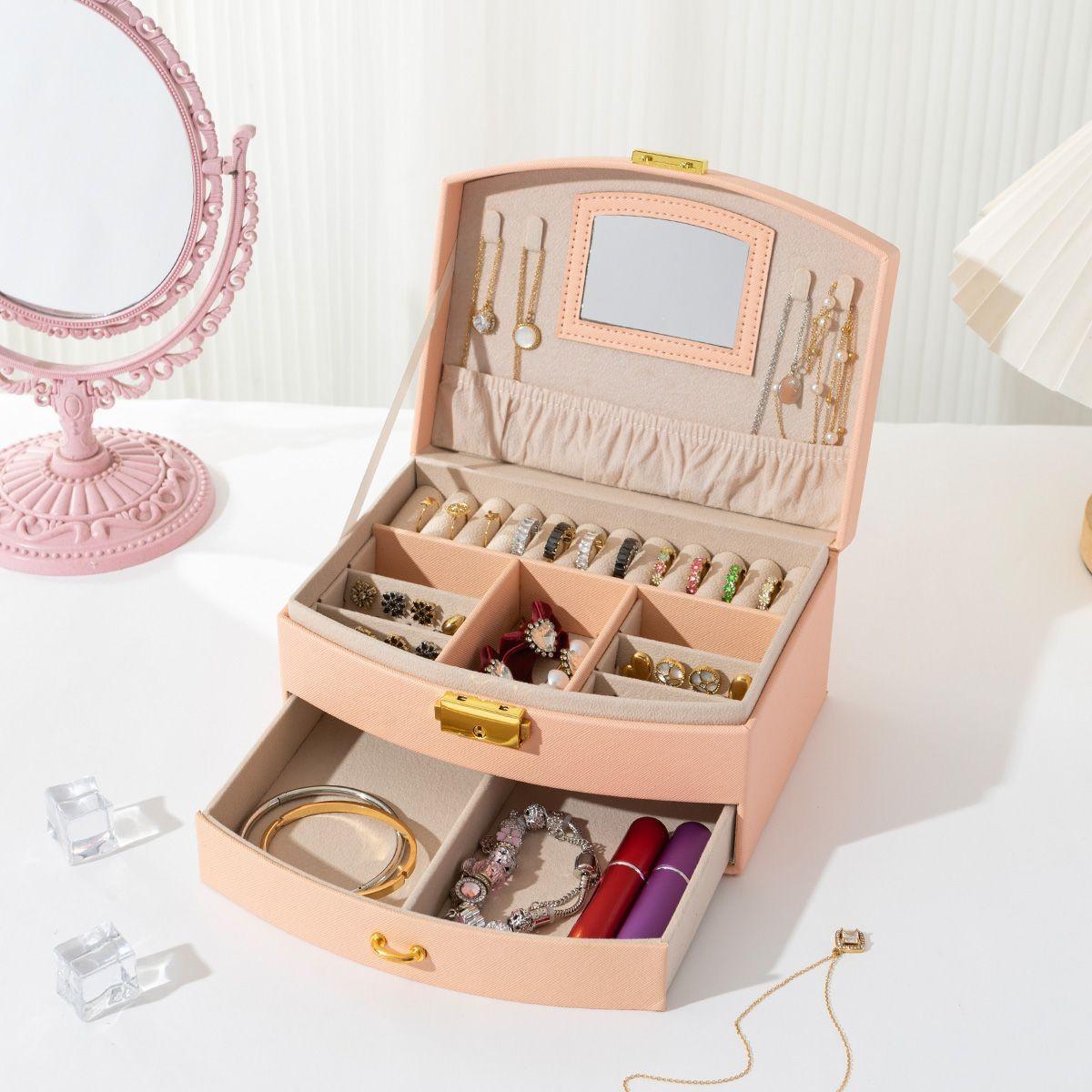 Caja de Joyería de Princesa para Niños de Doble Capa y Gran Capacidad, Caja de Almacenamiento de Joyería para Anillos, Horquillas para el Cabello, Aretes